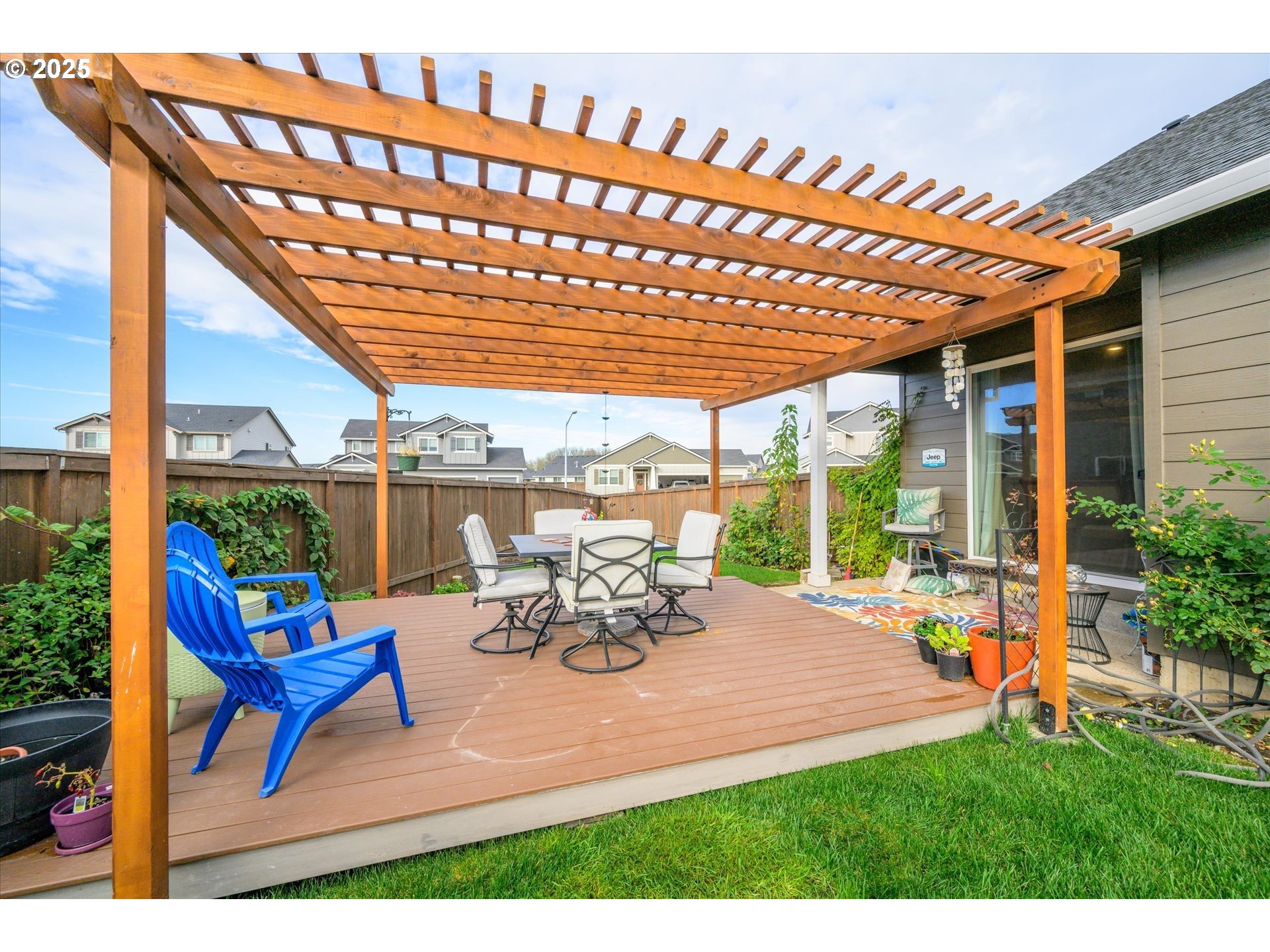 This charming single-level home sits on a spacious corner lot in the second phase of The Reserve. It’s thoughtfully laid out, with secondary bedrooms and a full bath up front, and the elegant primary suite tucked away in the back for privacy. One bedroom features French doors and a transom window, making it perfect as an office or guest room. Standout features include laminate flooring, granite countertops, stainless steel gas appliances, a full tile backsplash, and a cozy gas fireplace with a wood mantle. The property is fully fenced, move-in ready, and comes with a brand-new deck and pergola. Lovingly maintained by a gardener, it’s nestled in a beautiful neighborhood of newer homes near peaceful farmland. Plus, don’t miss the handy tech-niche off the great room!