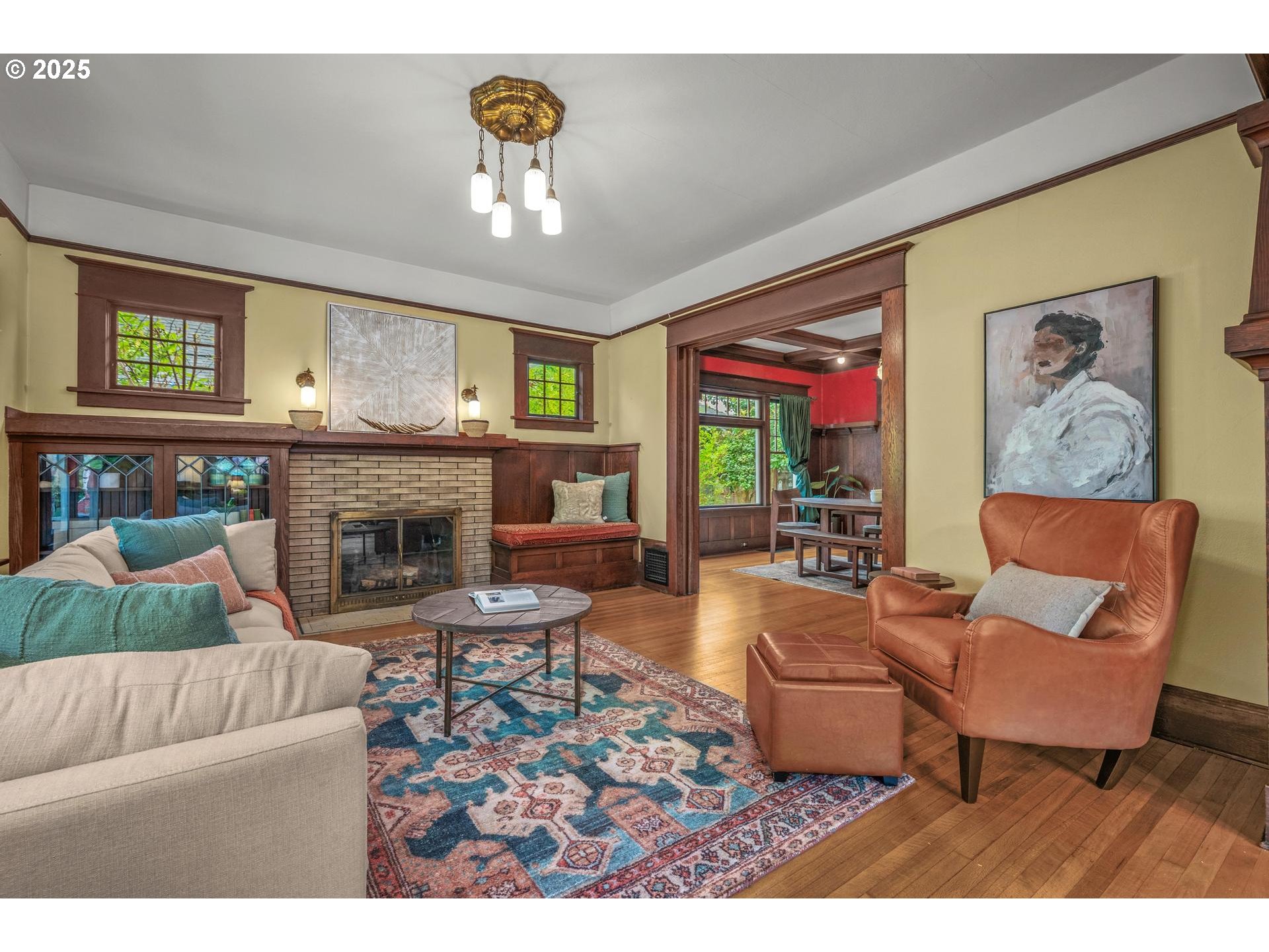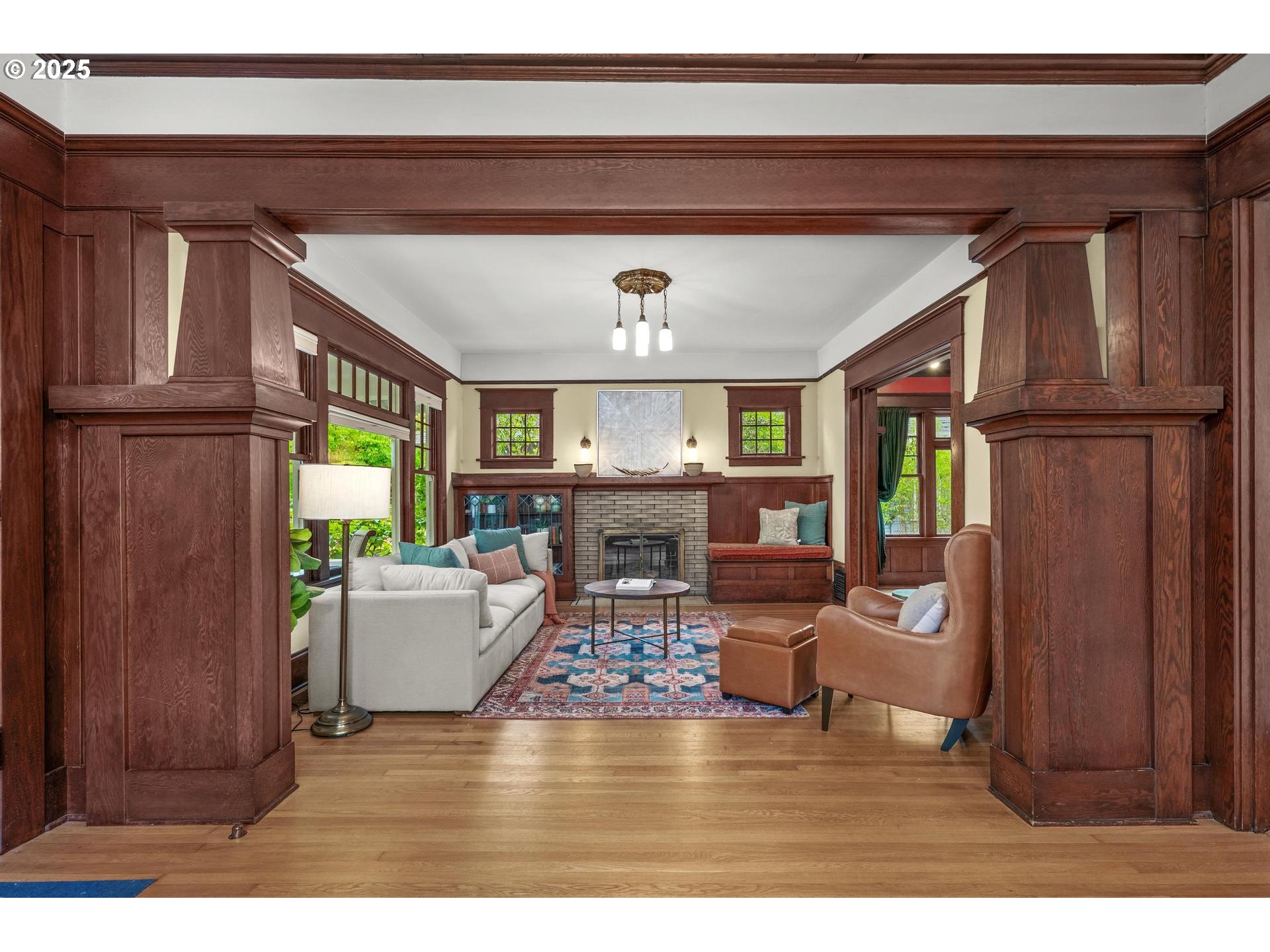 1913 Craftsman Old Portland with ALL the Charm! Fall in love with this timeless classic—full front porch, rich hardwoods, pocket doors, built-ins, and stunning leaded glass details. Grand main-floor spaces flow effortlessly, creating the perfect mix of elegance and comfort. The kitchen is a true showstopper—big, bright, and open with plenty of workspace, a large island for cooking and gathering, and built-in seating overlooking the backyard.Upstairs features three bedrooms and a full bath, while the spacious basement adds versatility with a full bath, den, and nonconforming bedroom. Step outside to a private fenced backyard with a patio perfect for entertaining, plus a long driveway and detached garage/studio for parking, hobbies, or creative projects.All in a highly walkable urban location close to parks, dining, and shopping—this is Portland charm at its finest! [Home Energy Score = 1. HES Report at https://rpt.greenbuildingregistry.com/hes/OR10204162]