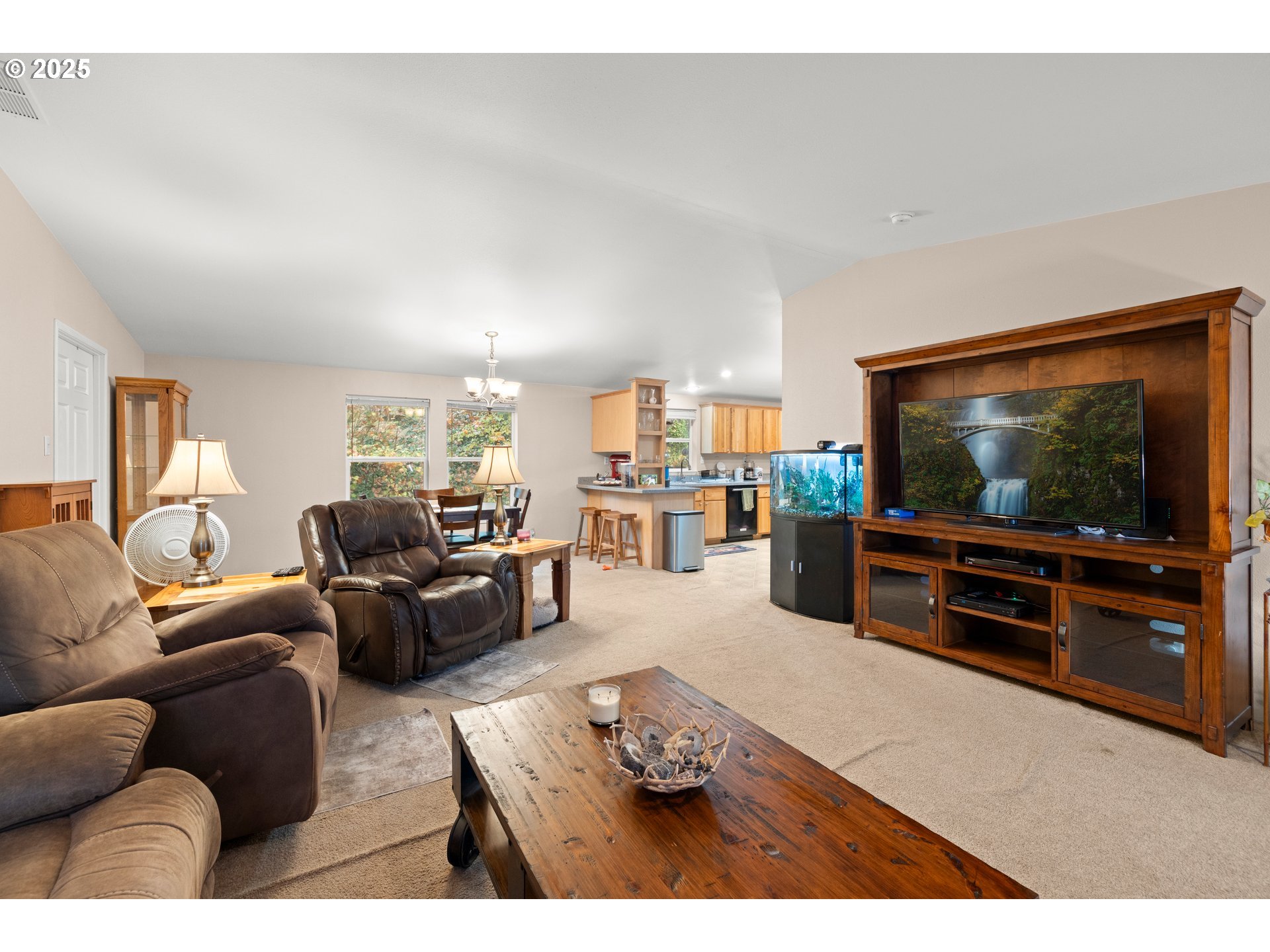 Peaceful Woodland Retreat with Quality Craftsmanship and Modern Comforts. Get away from it all and enjoy the serenity of nature in this beautifully crafted 2009 Palm Harbor home, nestled among the trees. Experience peace and quiet, abundant wildlife, and scenic wooded trails for leisurely strolls past ponds or a visit to the community dog park. Inside, you’ll find a chef’s kitchen designed for both beauty and function — featuring quartz countertops, honey-colored alder cabinetry, a built-in oven and microwave, freestanding stove, and an abundance of counter space. Enjoy your morning coffee in the breakfast nook or step out onto the new Trex deck with updated railings to listen to the birds. The spacious living room welcomes gatherings large and small with its wood-burning fireplace and open flow to the formal dining area. Your spa-like primary suite offers a true retreat — with a large dual-sink vanity, deep soaking tub, luxurious tiled shower with bench seat, walk-in closet, and private deck for unwinding outdoors. The oversized three-car garage includes a shop for creative projects, while the community offers a clubhouse, fitness room, and planned social events, fostering a friendly neighborhood feel. Well-built, well-cared-for, and perfectly situated, this property offers the best of both worlds: a private woodland sanctuary with a warm, welcoming community. Space rent is 1295 per month and includes water, sewer and garbage. Pro-photos to follow.