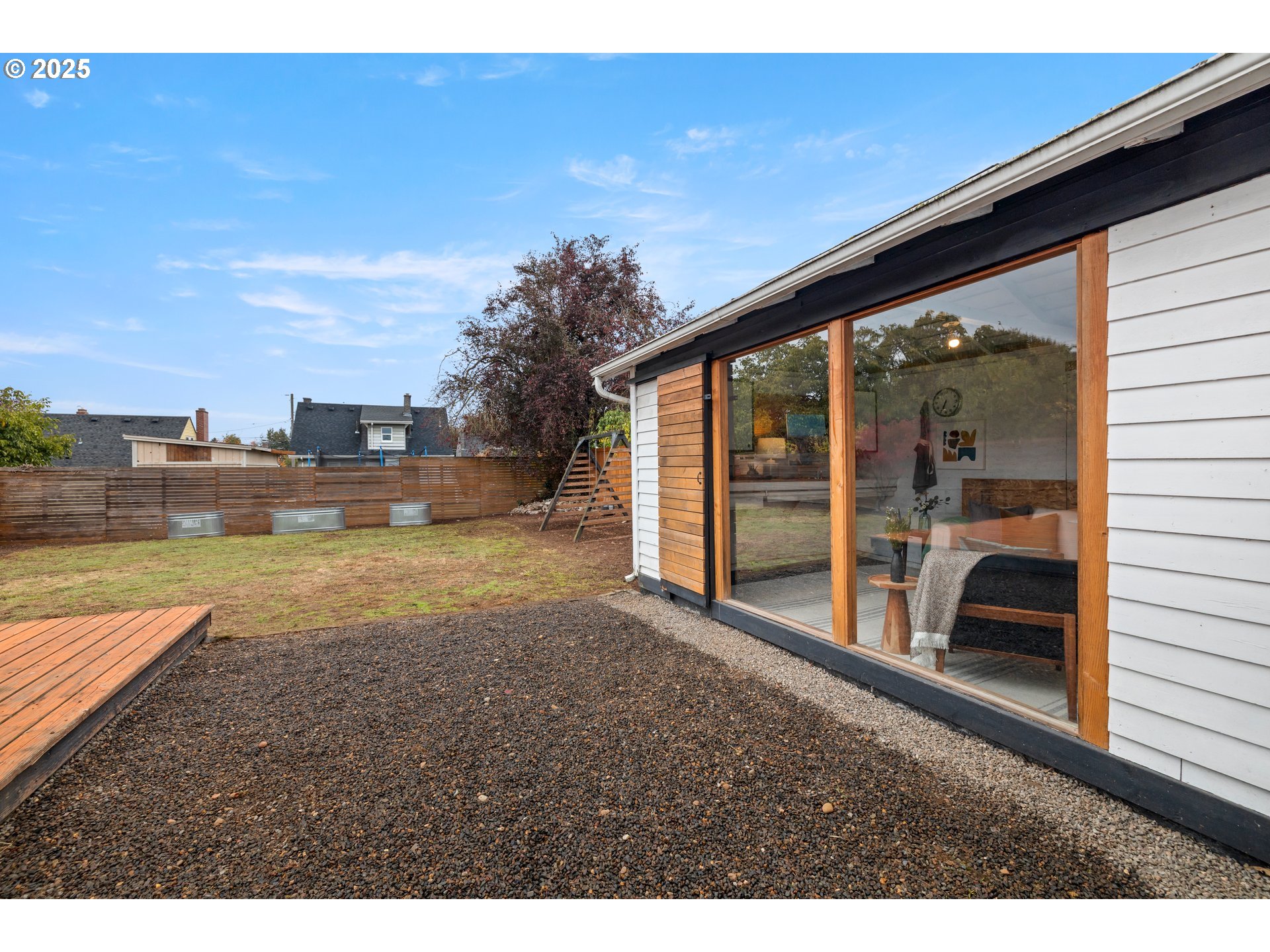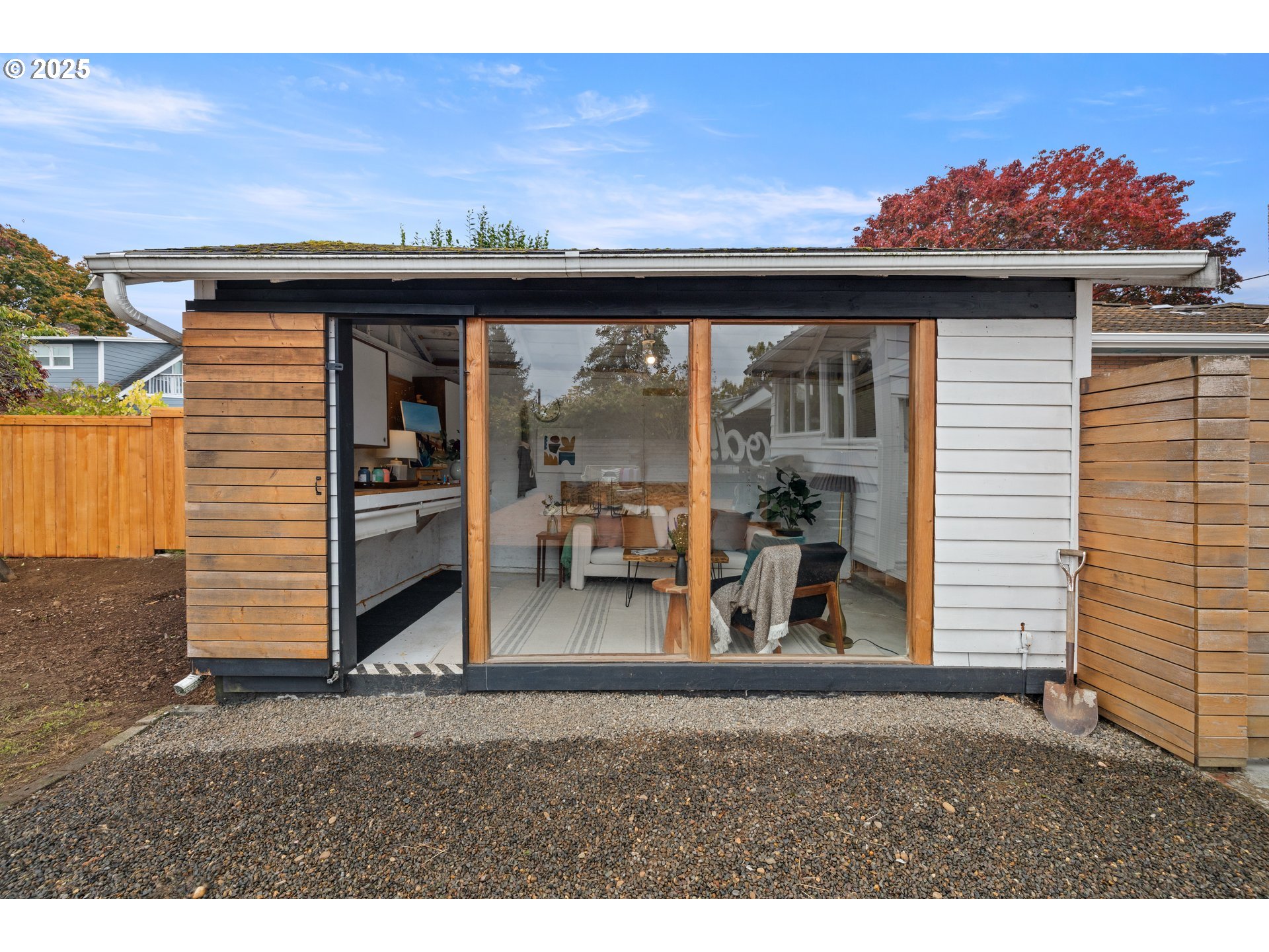 Charming updated bungalow with an A+ outdoor space. This light-filled North Portland home blends timeless character with thoughtful updates inside and out.The cheerful kitchen featuring granite countertops and a sleek tile backsplash, opens to a sunny eating nook with lovely views of the backyard — a perfect spot for morning coffee or casual meals. Enjoy the best of outdoor living with a spacious deck and large lawn area — ideal for gatherings, play, and everyday enjoyment, truly a gardener's open canvas. The main floor bedroom with its high ceilings and custom closet built ins is awaiting your wardrobe and decorating touches!Downstairs, a bright finished lower level offers flexible living—perfect for a media space, home office, or guest space—with a bonus room and laundry area.The converted garage offers even more square footage and flexible space , ideal for a workshop, studio, or outdoor lounge. All of this plus quick and easy access to parks (Penninsula Park and all its glory is just a few blocks away!), convenient shopping, and the Portland foodie scene make this home a 10 out of 10!