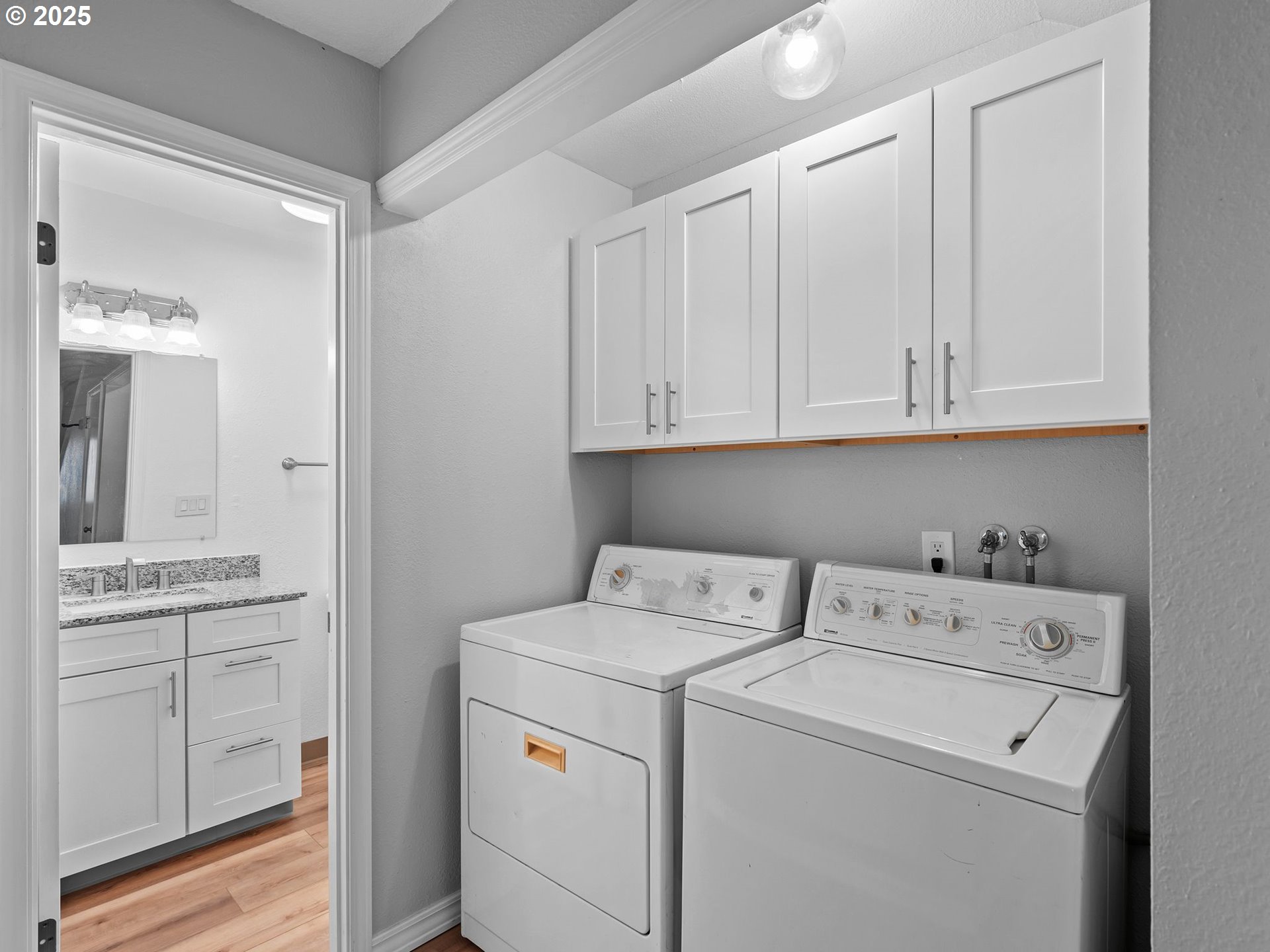 East County's hottest home is this spectacular renovated Wood Village condo! It's got everything: vinyl plank floors, quartz countertops, stainless steel appliances, indoor plumbing. The home was totally refreshed in 2020 with new cabinets, bathroom vanities + sinks, toilets, windows, front door, fence + gate, and fixtures. The vaulted ceiling lets light pour into the living room, which seamlessly connects to the dining area and open kitchen that's nicely appointed with a peninsula dining bar. Do all your chores simultaneously with the laundry just around the corner, plus a half bathroom, convenient for guests. Upstairs are two generously-sized bedrooms and a bathroom with a marble countertop. Enjoy your morning witch's brew on the private patio, which is privately fenced with a gate to the shared lawn. Assigned carport parking with additional storage closet. The low HOA dues pay for water, sewer, and garbage. Plus the county taxes are low too. Close to Fairview Food Plaza “The Fork,” Wood Village Town Center shopping including Fred Meyer, Salish Ponds Wetland Park with the Salish Pond City Trail, and Ki Coffee. Definitely not haunted by the ghost of David S. Pumpkins, this is the peaceful home you've been dreaming of!