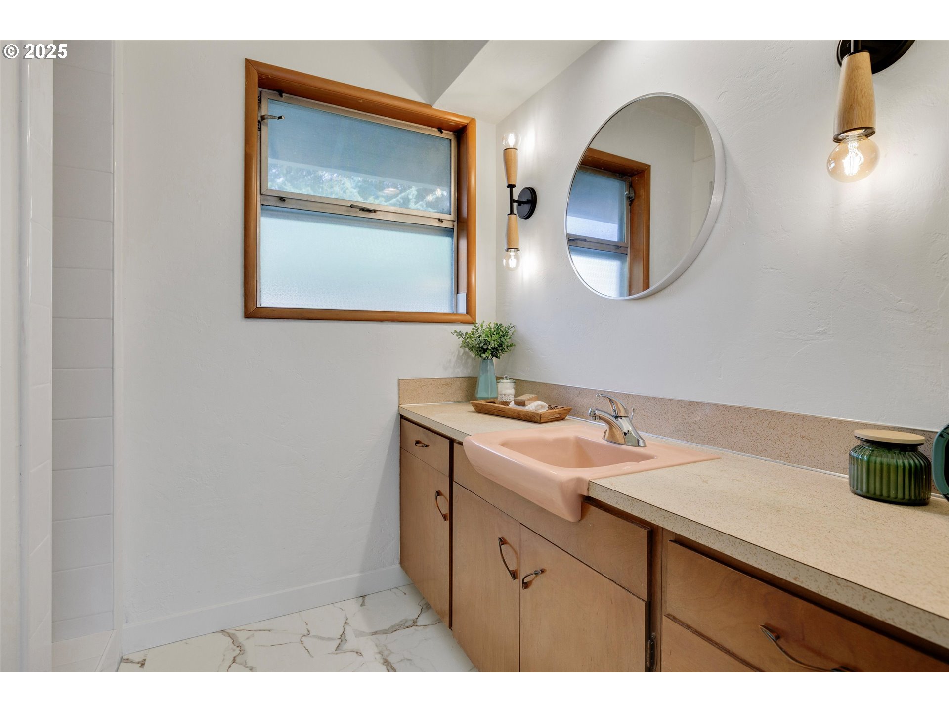 OPEN HOUSE Sunday 12-2PM.You will love all that this one level, 3 bedroom/2 bath, mid century home has to offer. Come see an inviting floor plan, huge shop, covered RV parking and more. Practical updates have been made, while preserving the endearing mid century characteristics, including hardwood floors in the bedrooms, classic buff brick fireplace, and playful pink bathroom fixtures. Some updates include a brand new roof, interior and exterior paint, and new flooring. A primary bedroom with private bath and walk-in closet; vaulted ceilings in the living room; and a versatile living space are just some of the features you will love. At almost 1/3 of an acre, the large fenced yard has plenty of room for play, gardening, BBQ, and outdoor gatherings under the covered patio. A 22’ x 20’ shop with electricity; and a 26’ x 12’ metal carport to protect your RV, vehicles and “toys” gives you versatility and options. Convenient access to Hwy 26, Intel, Downtown Hillsboro, Hare Field and so much more. Schedule a tour today! You don't want to miss this one!https://rpt.greenbuildingregistry.com/hes/OR10242676 [Home Energy Score = 3. HES Report at https://rpt.greenbuildingregistry.com/hes/OR10242676]