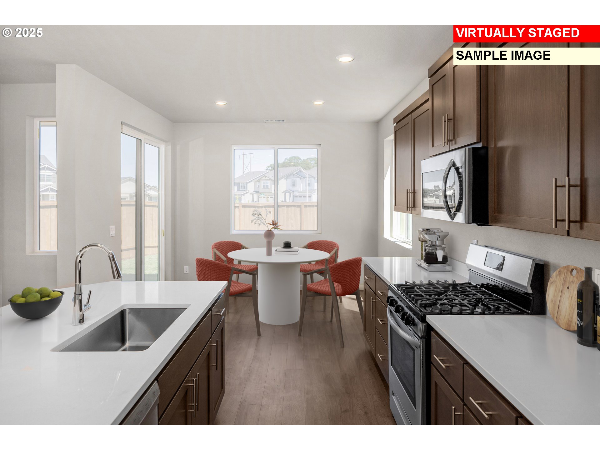 Welcome to Dutch Canyon by Lennar in charming Scappoose. The new-construction Aubrey plan showcases a modern two-story layout where the first level combines the great room with fireplace, kitchen, and dining nook in an open design with sliding glass doors that extend living space outdoors. Upstairs are four bedrooms, including a spacious primary suite with an en-suite spa-inspired bathroom featuring a soaking tub and separate shower, dual vanities, and walk-in closet. A secondary bedroom includes a private bath, while the other two bedrooms share a Jack-and-Jill style bathroom layout. Interior finishes feature quartz countertops, Shaker-style cabinets, LVP (luxury vinyl plank) flooring in the kitchen and entry way, LVT (luxury vinyl tile) flooring in bathrooms and two-tone interior paint. This home also includes central air conditioning, a refrigerator, washer and dryer, and blinds—all at no extra cost! Dutch Canyon provides easy access to Sauvie Island, hiking and more outdoor adventure. Minutes away from local food trucks, parks, a marina, and shopping, Scappoose offers small-town charm with proximity to nearby Portland and Vancouver. Rendering is artist conception only. Photos are of a similar home, features and finishes will vary. Estimated completion: January 2026. Homesite 135.
