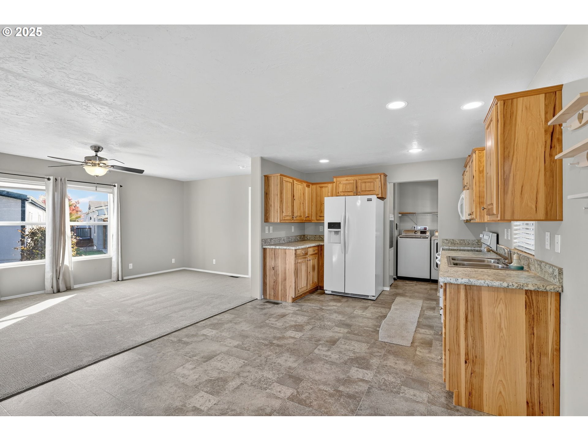 Beautifully Maintained 2017 Home – Move-In Ready!Like new and freshly updated, this one-owner 3-bedroom, 2-bath home (1,152 sq. ft.) has been refreshed with brand-new carpet, fresh trim paint, and professional cleaning—truly move-in ready!Enjoy an open great room layout featuring a gourmet kitchen with hickory cabinets, quality appliances, and a convenient washer and dryer included. The primary suite offers a spacious bath with a walk-in shower (complete with safety bars), a generous walk-in closet, and direct access through sliding doors to a private balcony overlooking the beautifully landscaped backyard.At the opposite end of the home, you’ll find two additional bedrooms and a full bath with a tub/shower combination—ideal for family or guests.Situated on one of the best lots in Mt. Pleasant Mobile Home Park, this property offers a large fenced backyard with mature trees, a garden shed, and a long driveway with full carport parking. A side access ramp provides easy entry for wheelchairs or walkers. Mt. Pleasant Mobile Home Park is a well-maintained, family-friendly community featuring wide, clean streets, a central park area with open green space, and a covered pavilion and recreation room available for resident gatherings. Conveniently located in Oregon City with easy access to Hwy 213 and I-205 for a smooth commute. School bus stops right at the front of the park.All offer subject to park approval.
