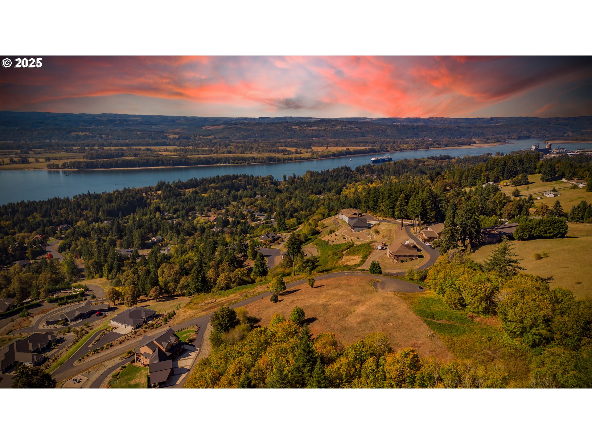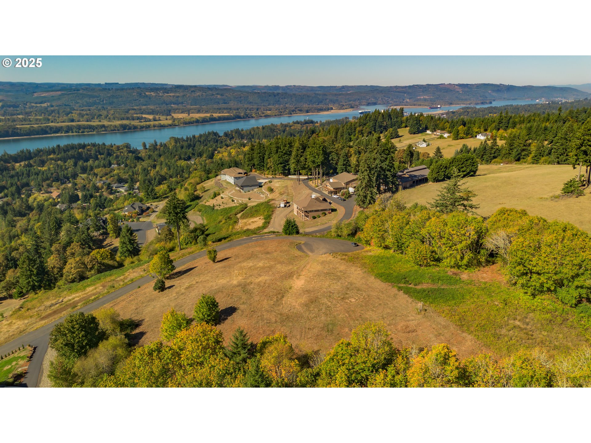 Once in a Lifetime Opportunity — Sweeping Columbia River Views! Discover an extraordinary 3.69-acre estate lot in Kalama’s premier gated neighborhood, where luxury, privacy, and nature converge. Perfectly positioned at the top of a private cul-de-sac on a paved road, this parcel offers unobstructed 180° panoramic views of the Columbia River, Portland city skyline, and surrounding valleys — the kind of view that truly takes your breath away. The buildable area is flat and ready, ideal for a daylight basement custom luxury home. The remaining acreage slopes for privacy and a stunning natural backdrop. This property is fully prepared for your dream build — with public water and utilities available, county-approved septic design and perc holes, geotech report with no red flags and planning clearance already complete. The seller is including a custom home design plan stamped by a structural engineer, tailored specifically to this homesite, available upon request — a huge value for the discerning buyer. Surrounded by upscale custom homes, this setting promises both tranquility and long-term value. Located just 5 minutes (2.5 miles) from the freeway entrance, it’s a perfect balance of convenience and exclusivity. This is more than land — it’s a legacy homesite with commanding views rarely available in Southwest Washington.