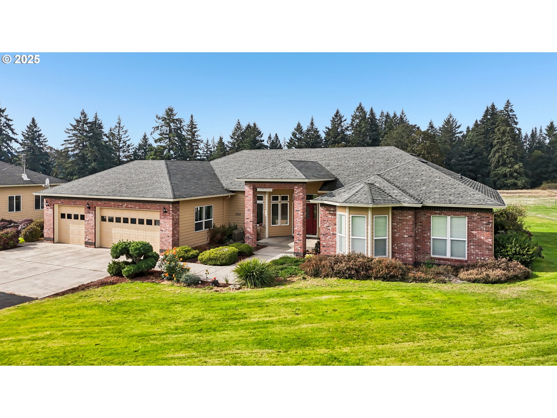 Discover the perfect blend of comfort and country living in this beautiful single-level home set on 5.66 peaceful acres. This spacious property features a 3-car attached garage, a large detached shop/garage, and a barn with 2 12x12 stalls—ideal for horses or hobby farming. The land is cross-fenced, with electric Horse fencing. The home welcomes you with tall ceilings and expansive rooms designed for both everyday living and entertaining. Enjoy the open layout, abundant natural light, and seamless flow to the covered deck—perfect for relaxing or taking in the serene views of the property. With an RV hookup and plenty of room to spread out, this property offers exceptional versatility for equestrian enthusiasts, hobbyists, or anyone seeking space and tranquility just minutes from town.