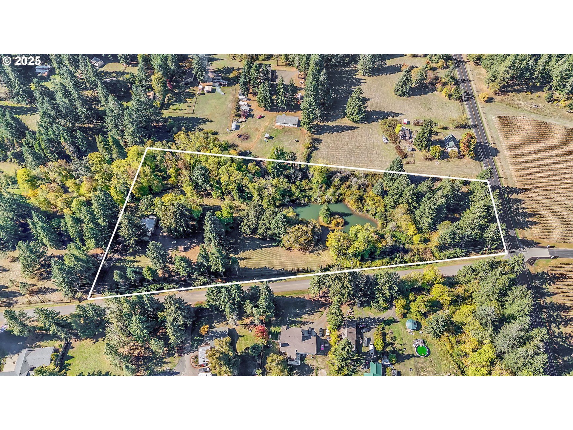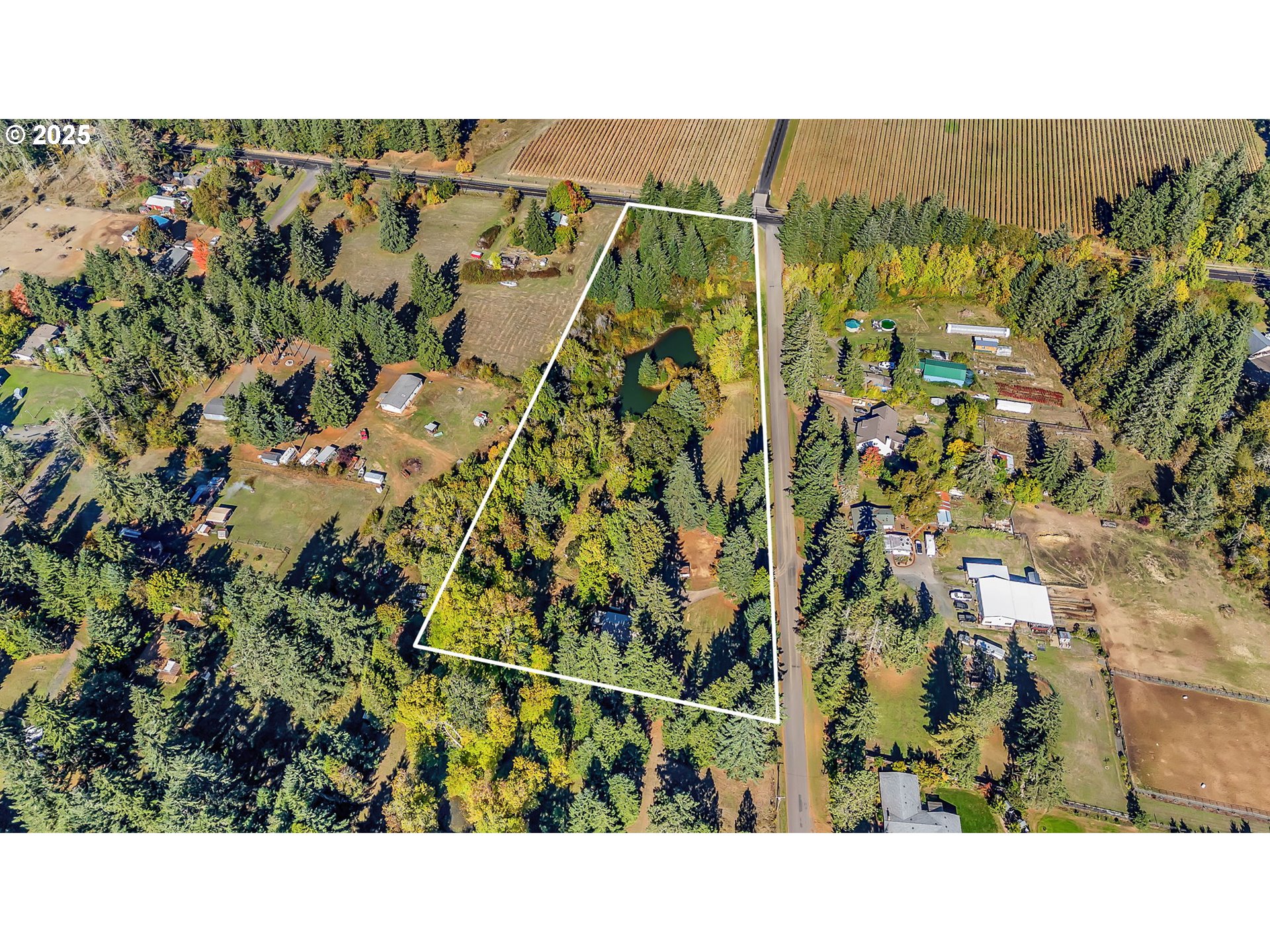 Western paradise just minutes to Eugene or Veneta! Excellent shop, year round pond all on mostly level acreage. Develop your dream home in this idyllic setting. Spring fed stream, mature trees and whisper quiet. Relax on the dock or from the gazebo. Tall 3 bay shop with concrete floor, attic storage and hydraulic hoist. Fix up and use the unpermitted apartment. Paved circular driveway right up to an excellent, level homesite. Just across the street is Apona Vineyard and Tasting Room. A once in a lifetime location!