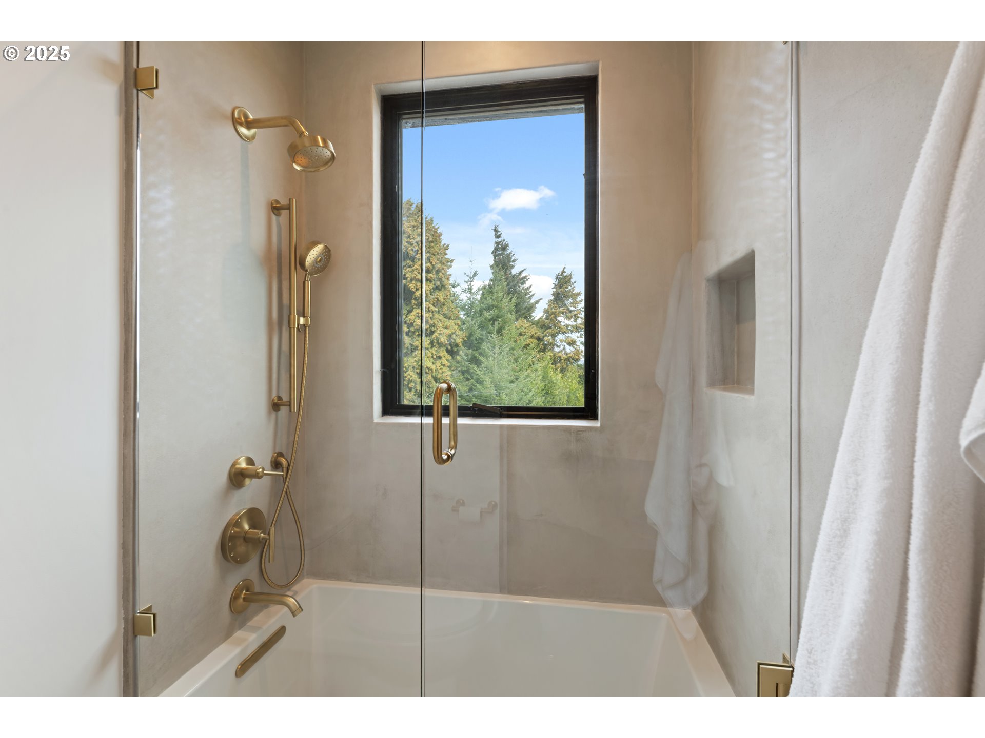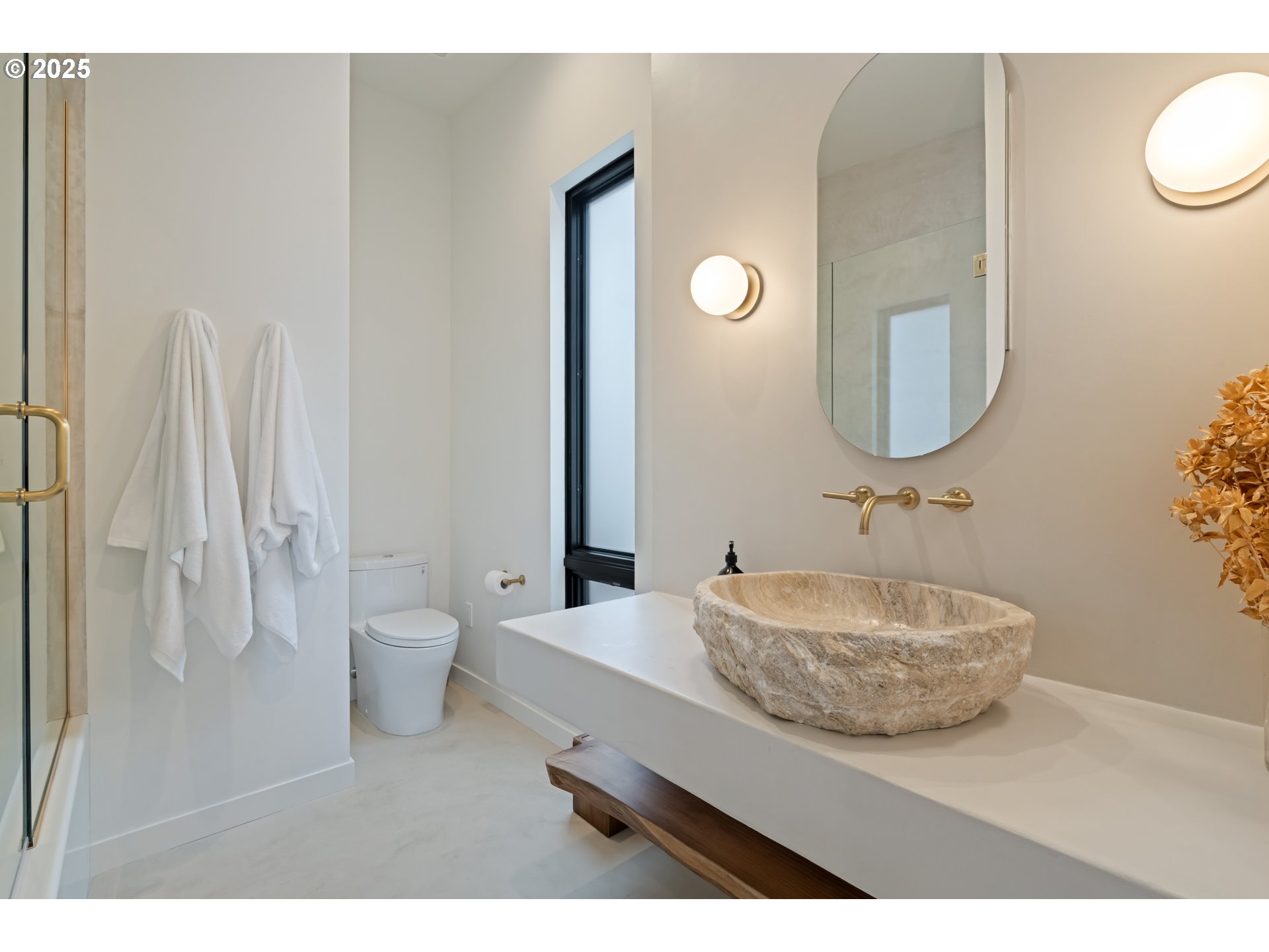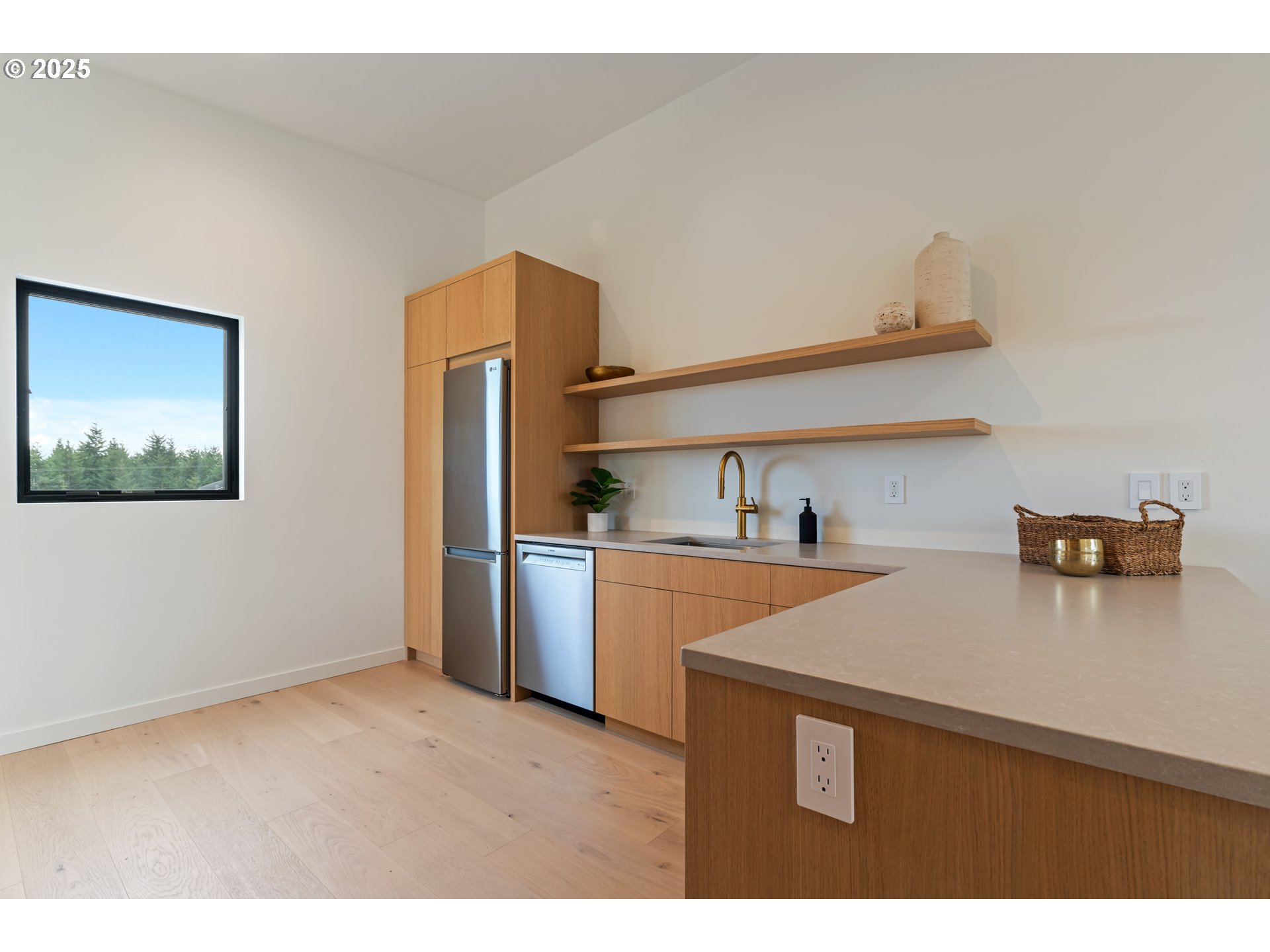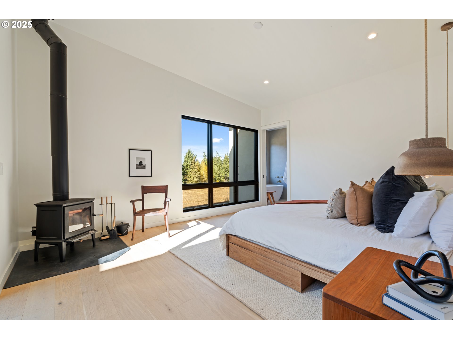 Modern Refinement Meets Timeless Luxury. A work of architectural art, this newly built 2024 residence is nestled on 5 private acres just 15 minutes from White Salmon — where design, technology, and craftsmanship unite in flawless harmony. Every detail in this home was chosen with intention, from the hand-sourced Moroccan Zia tile in the entryway to the exquisite onyx sinks from Turkey and one-of-a-kind pendant lights from Ukraine. Step through the 8-foot glass pivot door into a space bathed in natural light, courtesy of the home’s south-facing orientation and 10-foot sliders that open to a future courtyard oasis. The touch-latch, white oak grain-match cabinetry flows seamlessly through the custom kitchen, butler’s pantry, and closets — complemented by Brazilian and Laguna Bay quartzite surfaces, a Bertazzoni 36” gas range, and a panel-ready 48” JennAir refrigerator. The living room centers around a Mezzo Glo double-view gas fireplace, while the primary suite offers a retreat of warmth and sophistication with a wood-burning fireplace, Roman clay finishes, a freestanding soaking tub, rain shower, and brass Kohler fixtures throughout. A spacious upstairs ADU offers flexibility for guests or extended family, complete with a full kitchen, luxury appliances, and wraparound windows. Function and technology meet beauty here: a heated driveway and garage apron, 4-car insulated drive-through garage with glass doors, dual EV chargers, Starlink internet with T-Mobile backup, built-in surround sound, dimmable lighting, Unifi security system, and even a Roborock S8 Max with auto-fill and drain. Wide 5-foot hallways, 7-inch Allwood champagne flooring, and premium Pella windows with a lifetime warranty enhance both comfort and elegance. This home isn’t just designed to be lived in — it’s meant to be experienced.