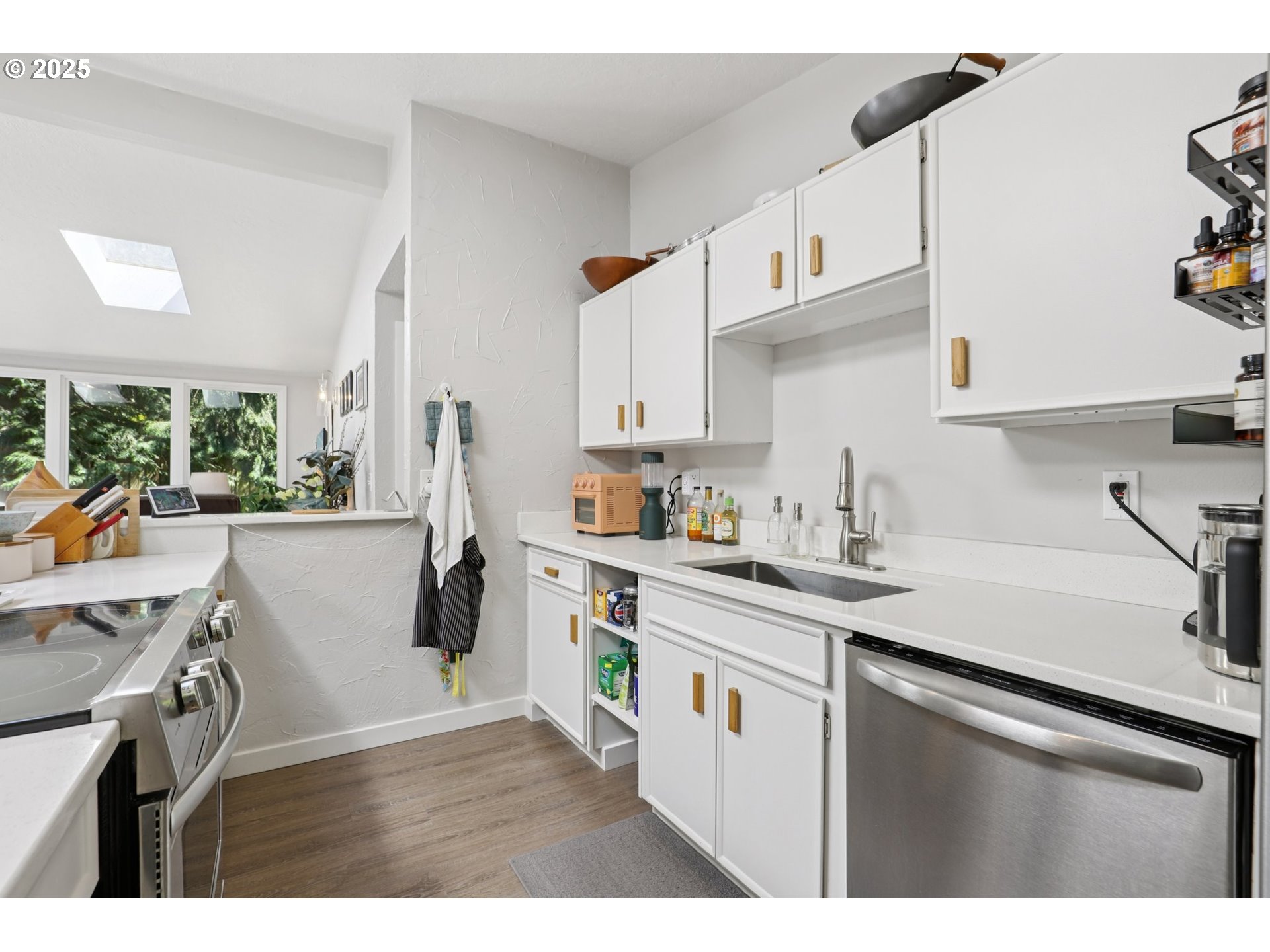 Welcome to 5767 Baleine St., a residence that perfectly blends comfort, style, and convenience in a sought-after neighborhood. From the moment you arrive, you’ll be greeted by impressive curb appeal with a classic mid century modern carport, a renovated office space and a sense of warmth that invites you to step inside and make this house your forever home. Featuring an open-concept layout that seamlessly connects the living and dining areas, this home is ideal for relaxing evenings or entertaining guests. Natural light pours through generous windows and skylights throughout, highlighting well-appointed West Elm finishes and touches that create a bright, cheerful environment. The kitchen is tailored for both daily routines and special occasions, featuring Quartz counter space, stainless steel appliances and modern cabinetry. Whether you’re preparing quick meals or hosting get-togethers, this functional space makes cooking a pleasure rather than a chore, helping spark culinary creativity. Retreat to the bedrooms, each offering a comfortable oasis for restful nights. The primary suite provides a perfect escape with space to relax, while additional bedrooms are versatile enough to suit guests, growing family needs, or a dedicated home office. The beautifully newly updated bathroom has heated black Japanese hexagon tile floors, marble counter and brushed gold accents and fixtures. Outdoor living is just as appealing with a private, LARGE lot, fenced backyard offering room to play, garden, sit by the fire pit or simply soak up the sun on the patio. A shed provides storage or possibly a future "she" shed workspace for hobbies! Location is key, and this home truly delivers! Enjoy the convenience of being so close to Lake Oswego amenities, I-5 and highly rated schools. Don’t miss your chance to experience this exceptional property firsthand—reach out to your favorite realtor for a private showing today!
