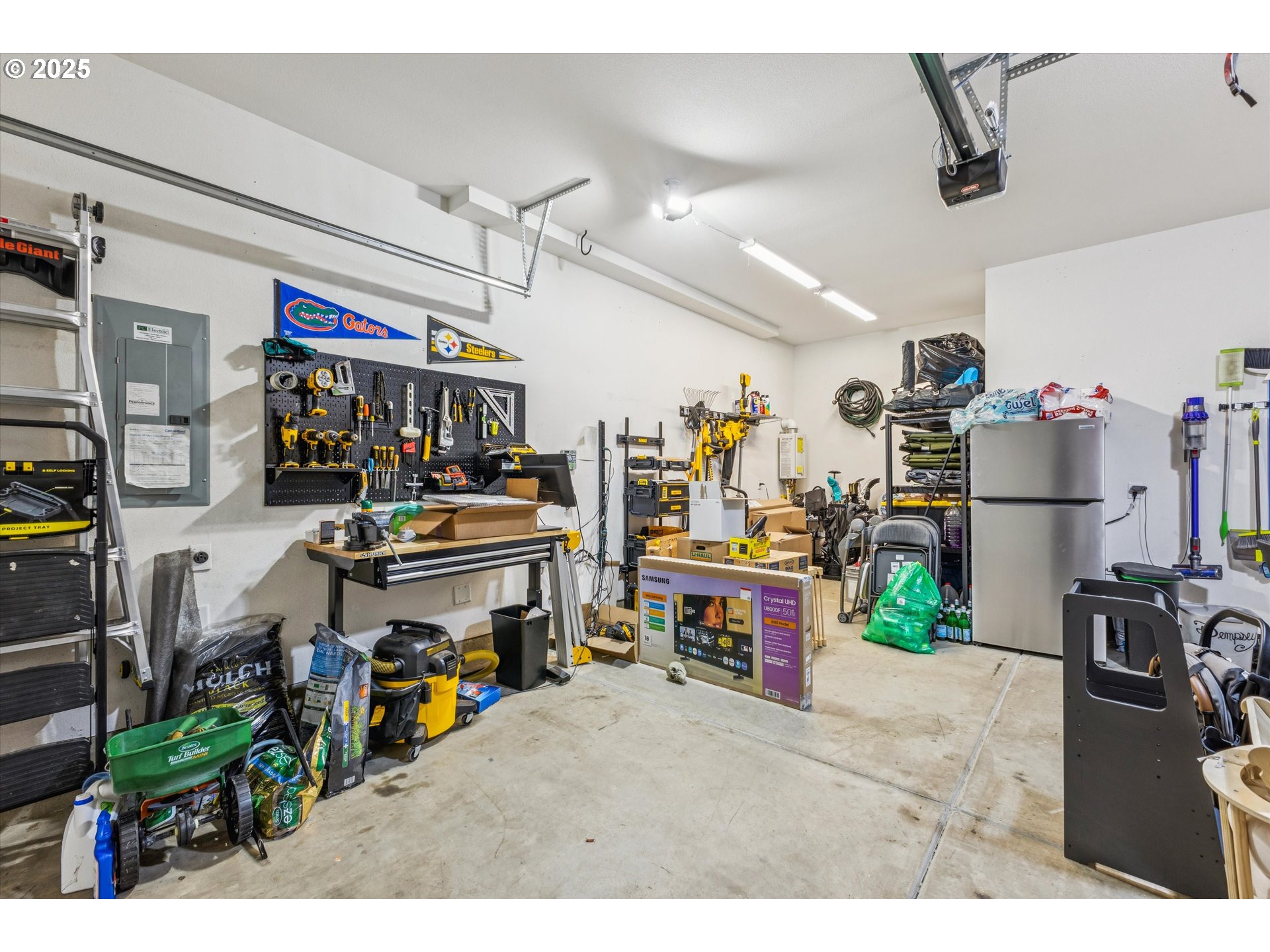 Welcome to this beautiful 3-bedroom, 2.5-bath home perfectly situated on a desirable corner lot with a flat, fully usable backyard — ideal for entertaining, relaxing, or play. Built in 2018, this thoughtfully designed home blends modern comfort with functional living.The main level features an open-concept layout with a spacious kitchen boasting granite countertops, a large island, and a walk-in pantry. All stainless-steel appliances are included, along with a washer, dryer, and even the garage refrigerator — making this home truly move-in ready. Enjoy year-round comfort with central air conditioning and efficiency from the tankless water heater.Upstairs, you’ll find all three bedrooms, a convenient laundry room, and a flexible loft space perfect for an office, media area, or playroom. The guest bedroom offers versatility, easily serving as a second primary suite with its own walk-in closet and private access to the guest bathroom.Step outside to the covered patio and built-in fire pit — perfect for cozy evenings or summer gatherings. The oversized garage offers abundant storage, a 220V outlet for EV charging, and plenty of space for projects or hobbies.This home combines style, comfort, and practicality in one exceptional package. Don’t miss the opportunity to make it yours!