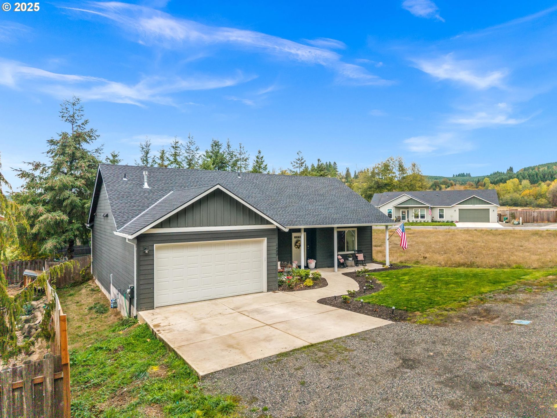 ***OPEN HOUSE SUNDAY, NOVEMEBER 2ND 1-4PM**** Step into this beautifully crafted one level residence, where traditional architectural elegance blends seamlessly with contemporary design. Boasting three spacious bedrooms and two luxurious bathrooms, the thoughtfully designed layout offers both style and functionality in every corner. At the heart of the home, a generous living room flows effortlessly into a gourmet kitchen featuring a center island, gleaming granite countertops, and premium stainless-steel appliances—perfect for entertaining or everyday living. High-quality laminate wood floors, vaulted ceilings, and an open floor plan create a bright, airy atmosphere that feels both expansive and welcoming. Outside you will find a landscaped front yard and patio, a fenced back yard and covered deck to relax and enjoy. Located in a newly developed subdivision in Vernonia, this home sits peacefully on a quiet dead-end street and is safely positioned outside the floodplain—offering privacy and peace of mind. Enjoy easy access to the Scappoose Vernonia Linear Trail, Vernonia Lake, and the Nehalem River. Come experience small-town living at its finest!