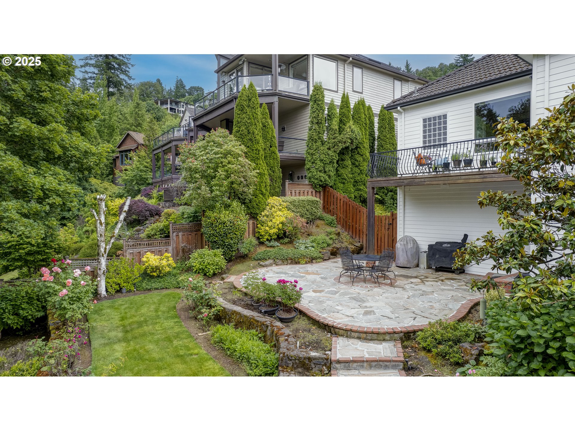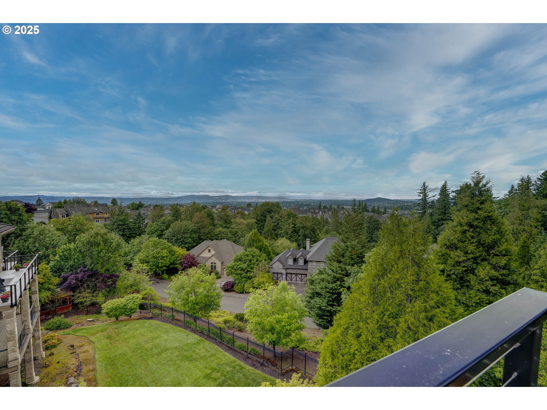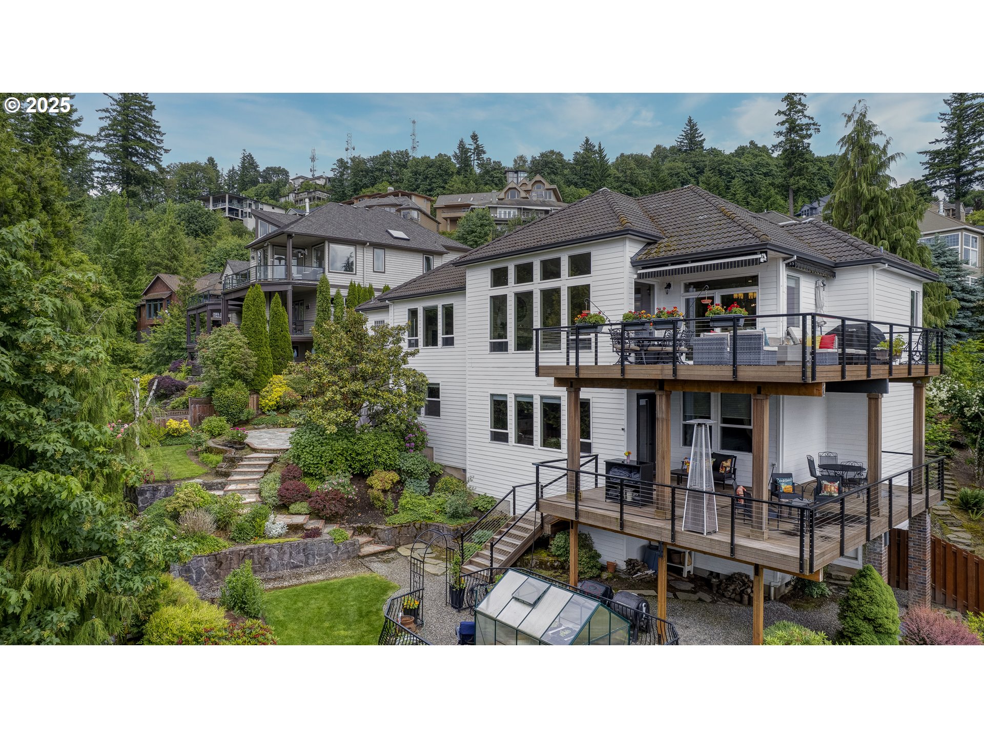 Welcome to a home that doesn’t just check boxes—it speaks to the heart. Nestled in the sought-after Happy Valley neighborhood, this 2000 Street of Dreams beauty offers over 5,650 sq ft of thoughtfully crafted luxury, designed for those who crave connection—to nature, to comfort, and to elevated everyday living. Wake each morning in the main-level primary suite, wrapped in peaceful views and soft light. Sip coffee by the fireplace, then step into a spa-like bath with marble finishes, dual vanities, and walk-in closets that feel like a boutique. Life here flows with ease—from a chef’s kitchen with double ovens and a butler’s pantry to airy, open living spaces that invite laughter, conversation, and celebration. Outside, the experience deepens. Take in the breathtaking views and breathe in the fresh air on two levels of mahogany decking—recently refreshed with sleek cable railings—and gather around the gas fire table as the sun is setting behind a panoramic view of the city skyline and on a clear day the cascade mountain range. Private access to 10 acres of forested trails turns every day into a retreat. For the garden lover, this property is a dream realized: a tranquil water feature, greenhouse, irrigated raised beds, and seasonal color everywhere you look. Inside, enjoy thoughtful touches like an elevator, sauna, fitness room, wine cellar, and two laundry rooms—designed to make life simpler, calmer, better. Downstairs, guests or family have space to unwind in 3 spacious bedrooms and a welcoming entertainment lounge with a full wet bar and custom built-ins. This isn’t just a home; it’s where beauty and functionality blend seamlessly. Where you’re not just living—you’re thriving.