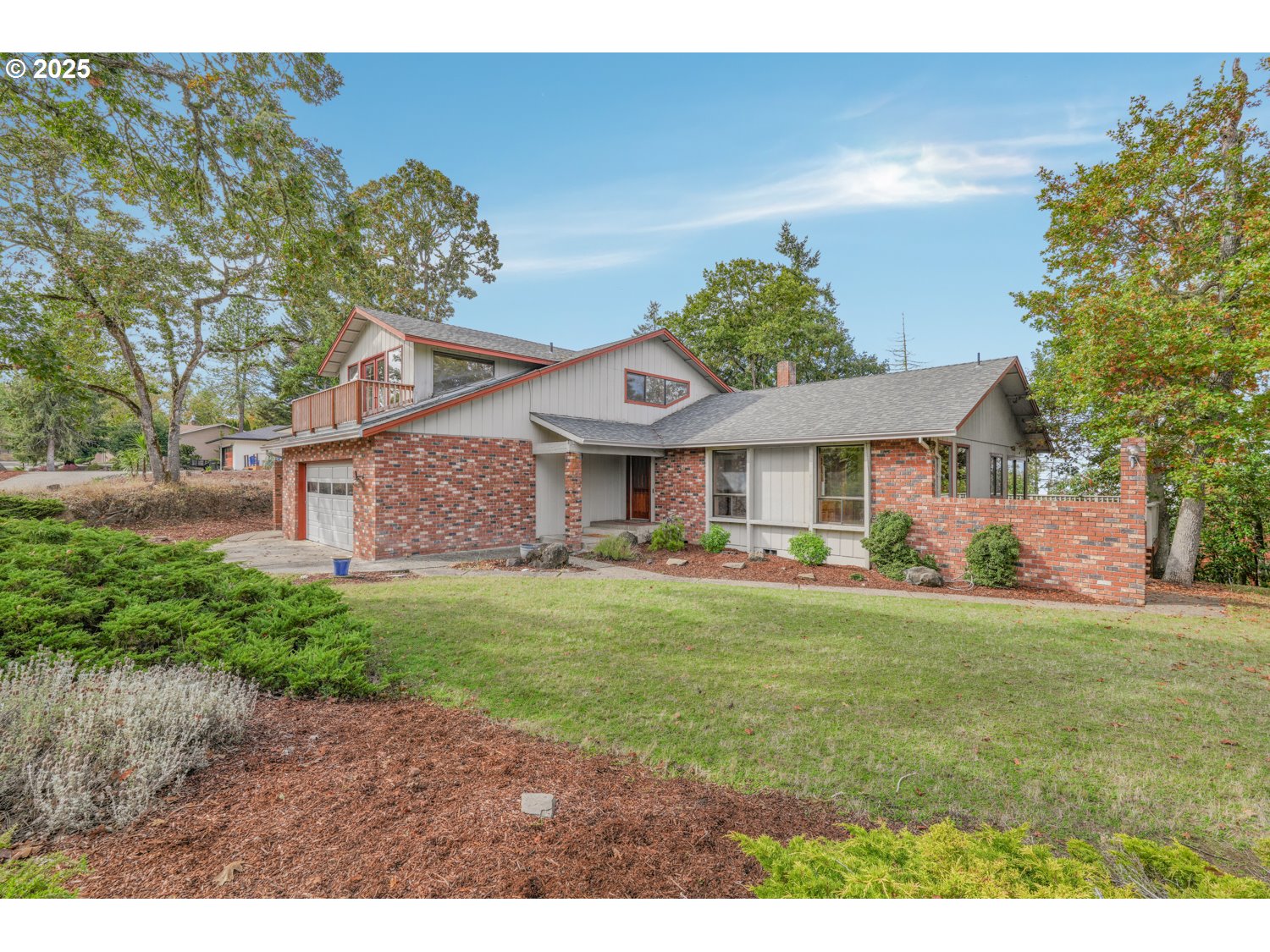 Contemporary-style home perched on a .49-acre view lot overlooking the city! Designed for entertaining, this spacious 3-bedroom, 2.5-bath residence features new Myrtlewood flooring throughout the expansive living room with vaulted wood ceilings, a cozy fireplace, and sliders leading to a deck with stunning city views. The kitchen offers Corian countertops, a large eating nook, and a convenient butler’s pantry, with an adjacent dining area opening to the deck making it perfect for indoor/outdoor gatherings. The primary suite on the main level is a true retreat with a 440 sq. ft. addition featuring a private bath with a built-in hot tub, large tiled shower, dual vanities, dry sauna, and two walk-in closets. Two additional bedrooms, a full bath, and laundry room complete the main floor. Upstairs is a fantastic great room with French doors to a balcony, a kitchenette, and a half bath providing endless options as a recreation room, media space, guest quarters, or home office. Additional highlights include a new roof, abundant natural light, and proximity to restaurants, parks, schools, and quick I-5 access. Enjoy exceptional views, privacy, and versatile living spaces in this one-of-a-kind city-view home!