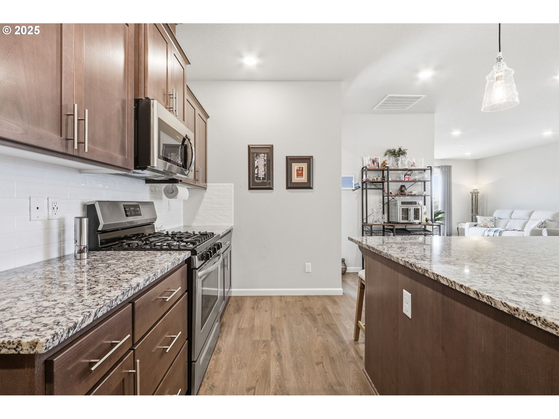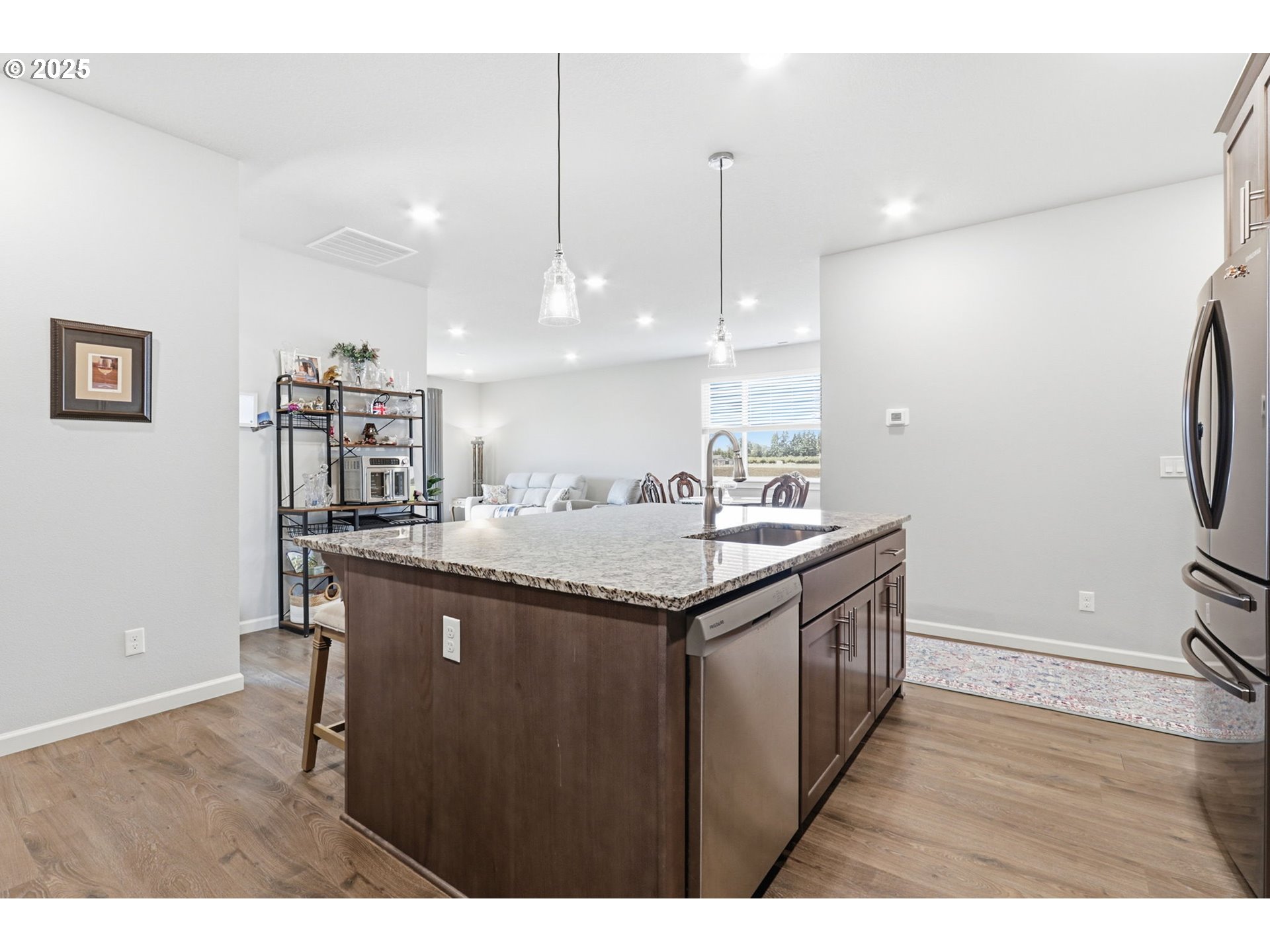 Perched on the edge of Beautiful Mount Angel sits this spacious 3 bed 2 bath home. The home has an elegant feel with a huge granite island for hosting and entertaining. The open floor plan flows graciously into a welcoming living room giving warmth from the glow of the fireplace. In the backyard, stand on a covered deck and admire a fully fenced and landscaped yard with plenty of room. This home also has a convenient 3 car garage, EV charger ready. Oh Ya!