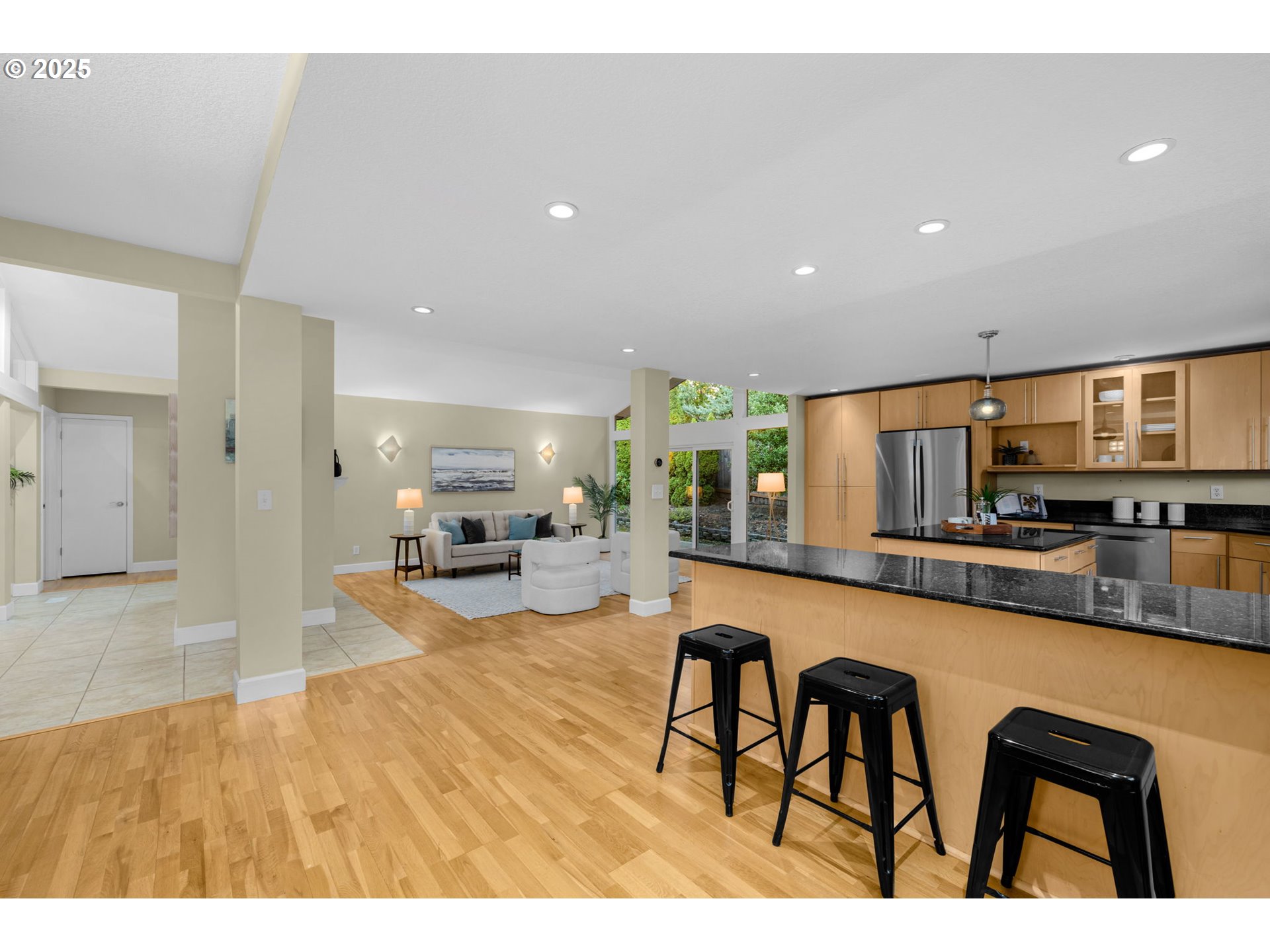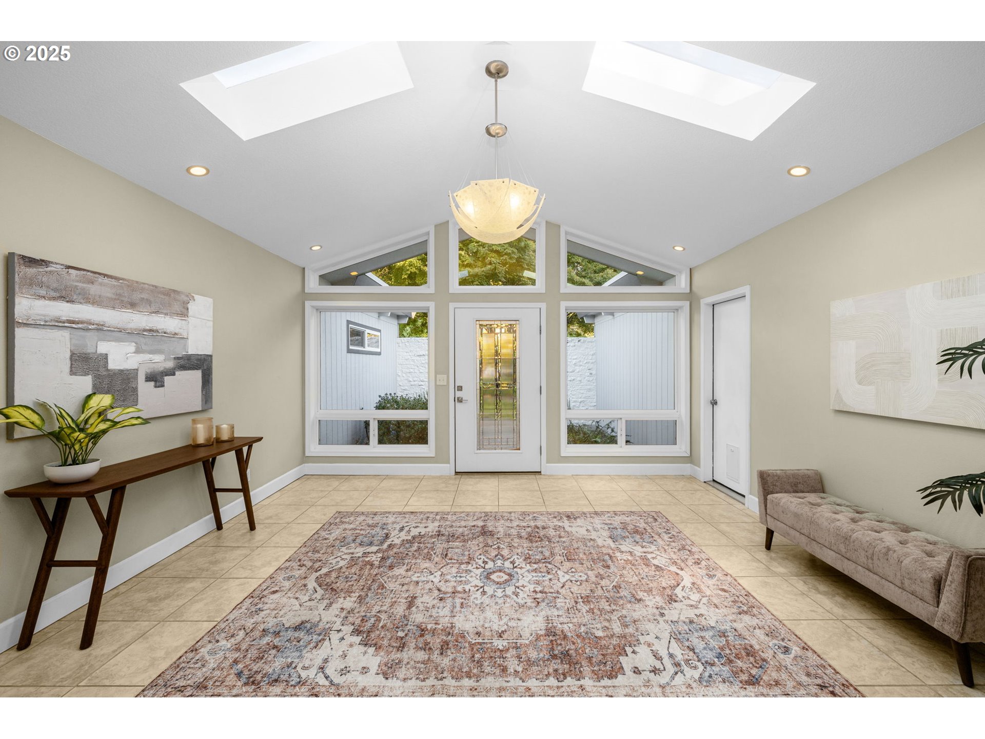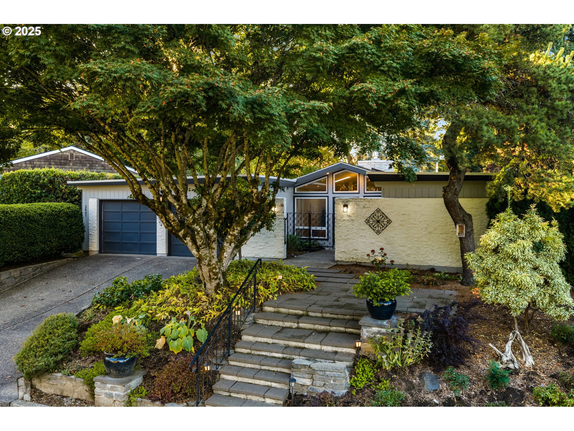 Midcentury Marvel! Serene living in quiet, established neighborhood dotted with kindred architecture. Rummer-reminiscent, grand central entry with clerestory windows. Vaulted, open floor plan with bedroom wings flanking each side and wall of windows to the rear. Retail & dining options abound in nearby, coveted Multnomah Village. Marshall Park's lush greenery and trails await in the opposite direction. Low maintenance landscaping along with enclosed miniature courtyard. Roof and drainage system replaced 2018, exterior paint 2019. Newer kitchen appliances, AC and water heater. All appliances included!