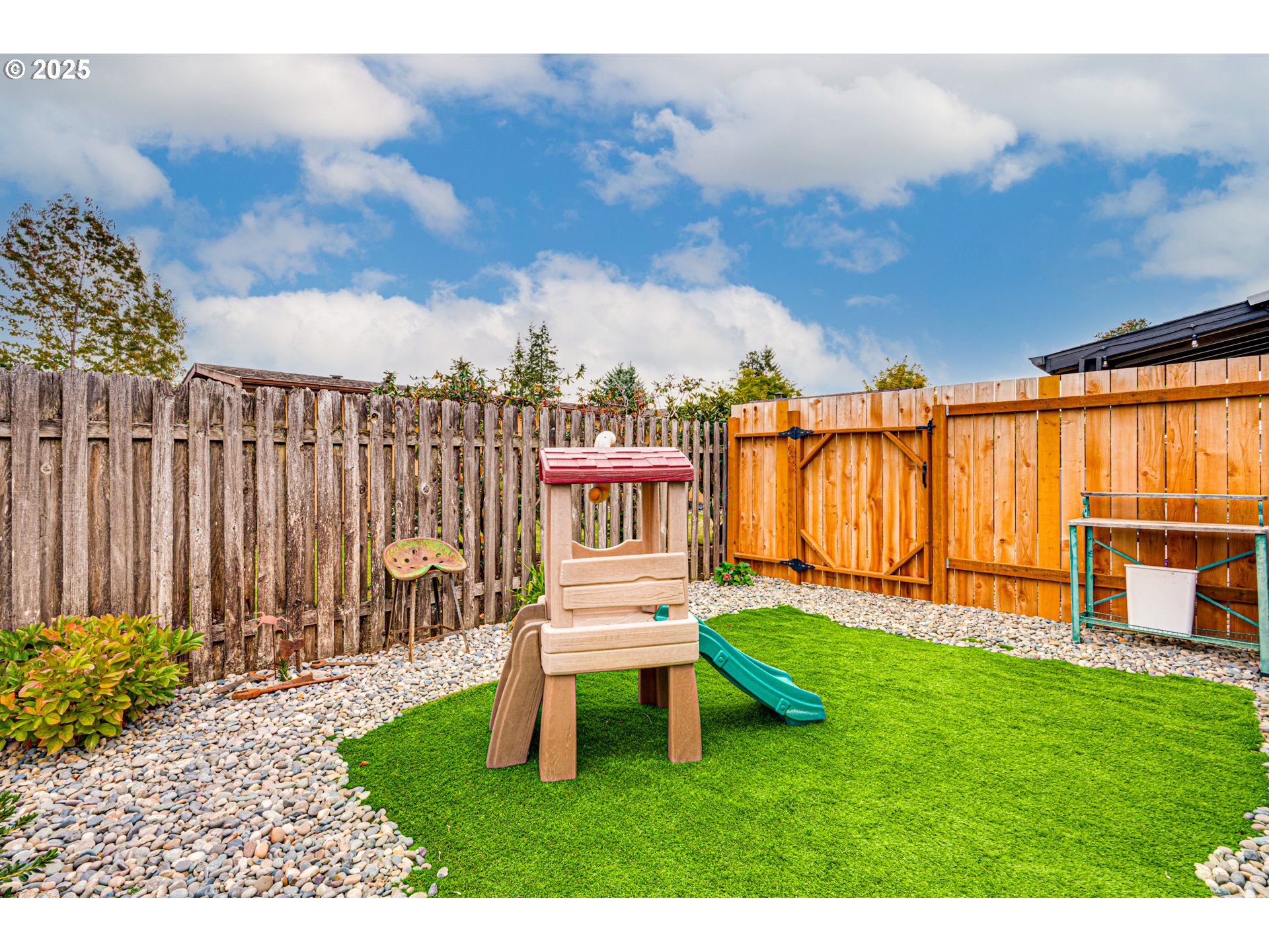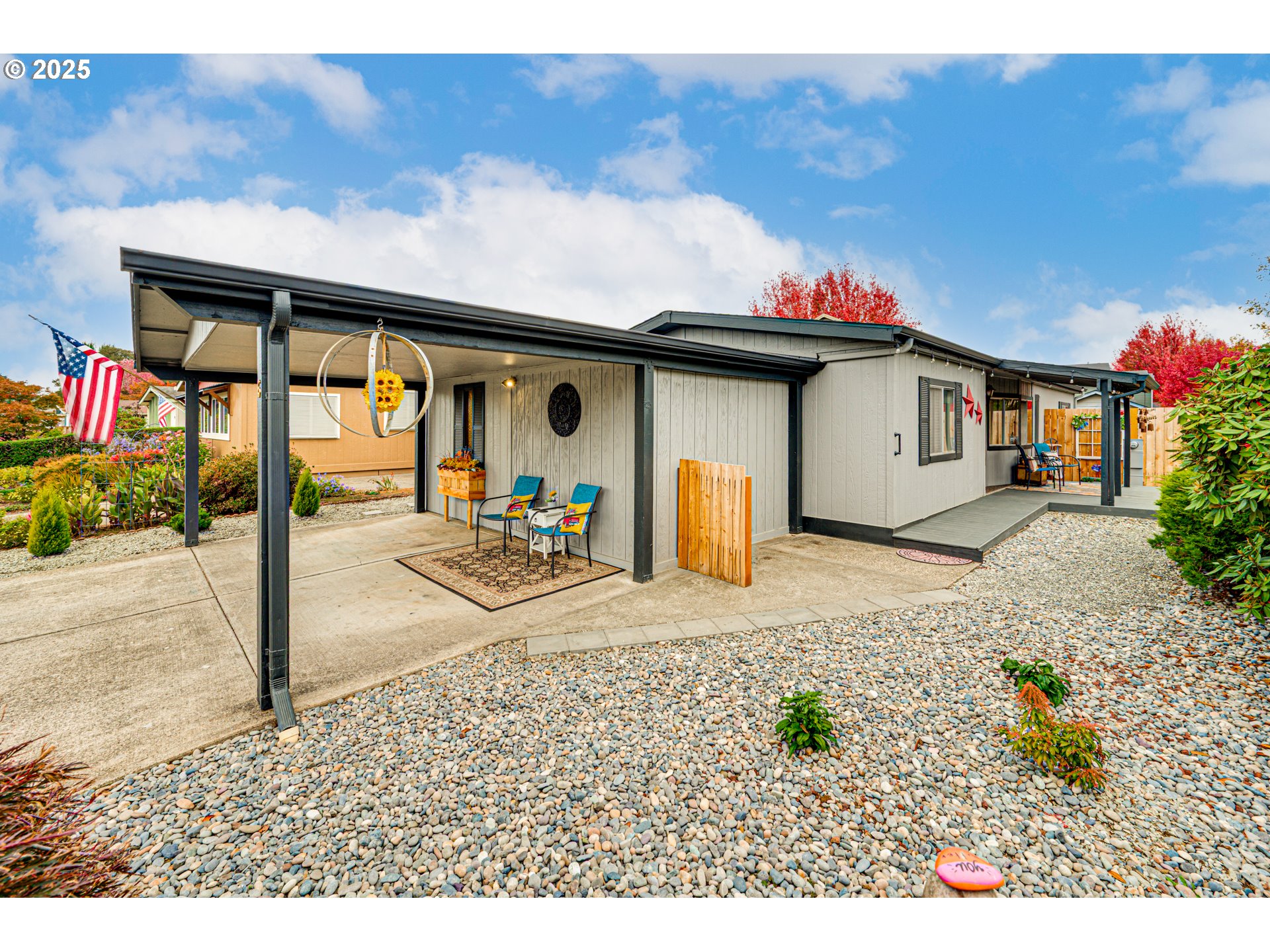Charming 2-bedroom, 2-bath home located in a well-maintained 55+ community. Features new LVP flooring throughout and a primary suite with a spacious walk-in closet. The carport has been converted into a functional storage shed. Enjoy a hardscaped yard with a backyard garden featuring blueberry and raspberry bushes. Conveniently located by shopping and grocery stores. Mini-split system provides efficient heating and cooling. All appliances stay—including refrigerator, washer, and dryer. Newer roof adds peace of mind.Community amenities include a clubhouse that hosts events and weekly activities. Lot space fee covers water and sewer, road maintenance, off-street driveway parking for each unit, storm drainage, pruning of park trees, park fence maintenance, and landscaping around the clubhouse.