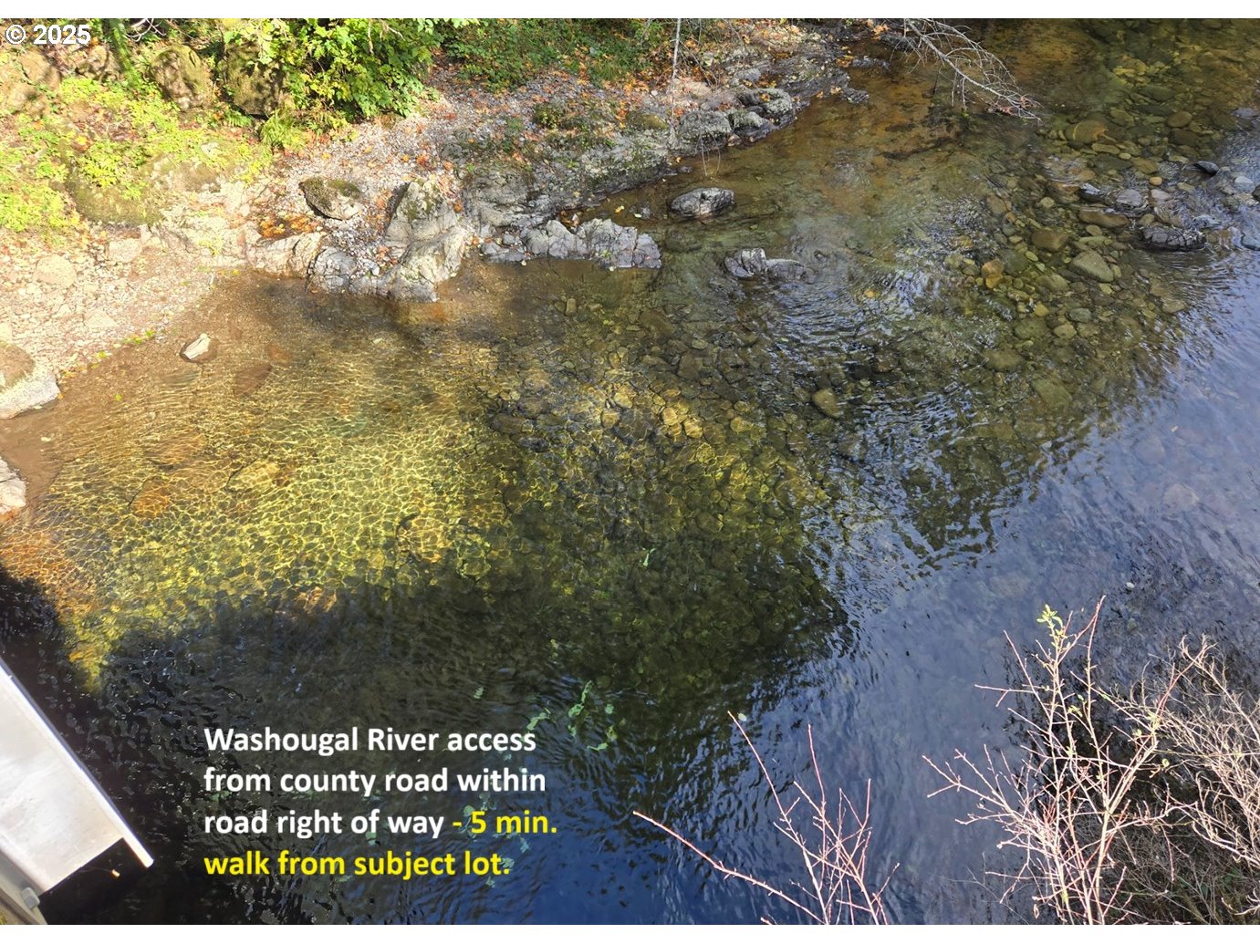 Drive down Skamania Mines Road 0.9 miles to the entrance to the lot on the right side of the road.