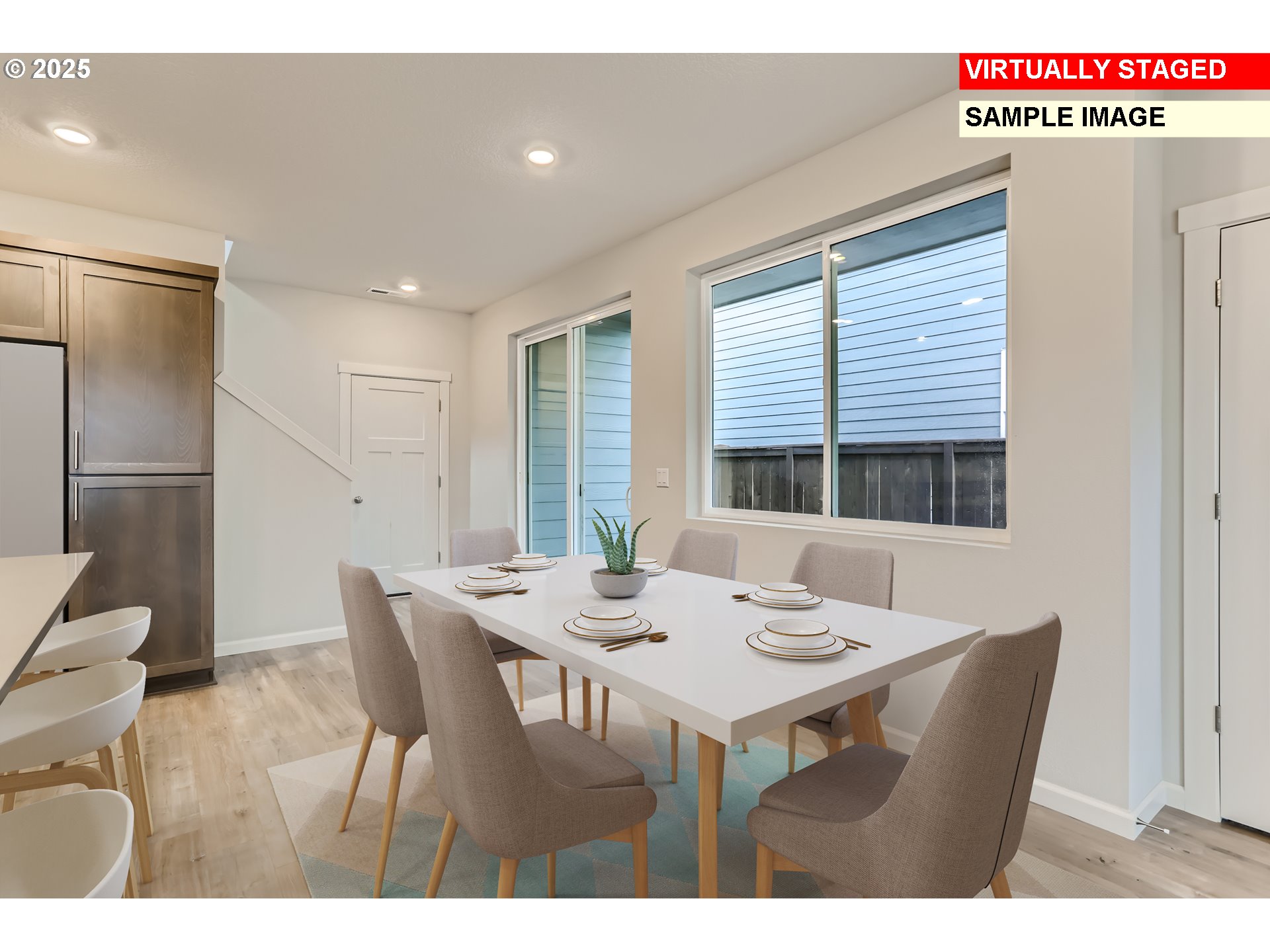 Welcome to Brynhill by Lennar and the Chambrey plan in beautiful North Plains. Multitasking and entertaining is made simple in this new move-in ready two-story 3 bedroom, 2.5 bath single-family home. An open floorplan is shared between the great room, kitchen and nook on the first level of the home. Sliding glass doors behind the nook lead to the outdoor space. All three bedrooms are located upstairs, including the primary suite with an en-suite bath featuring double vanities with separate bath and shower plus a spacious walk-in closet. The two secondary bedrooms share a convenient Jack-and-Jill style bathroom in between them. Interior highlights include quartz countertops, shaker-style cabinets, LVP flooring in kitchen/entry way, LVT flooring in baths, a cozy fireplace in the great room and much more. This home also includes central air conditioning, a refrigerator, washer and dryer, and blinds—all at no extra cost! This brand new community is loaded with amenities including multiple onsite parks featuring pickleball, basketball, a putting green, a cornhole area, playgrounds, and picnic areas. Homesite 442. *Below-market rate incentives available when financing with preferred lender.*