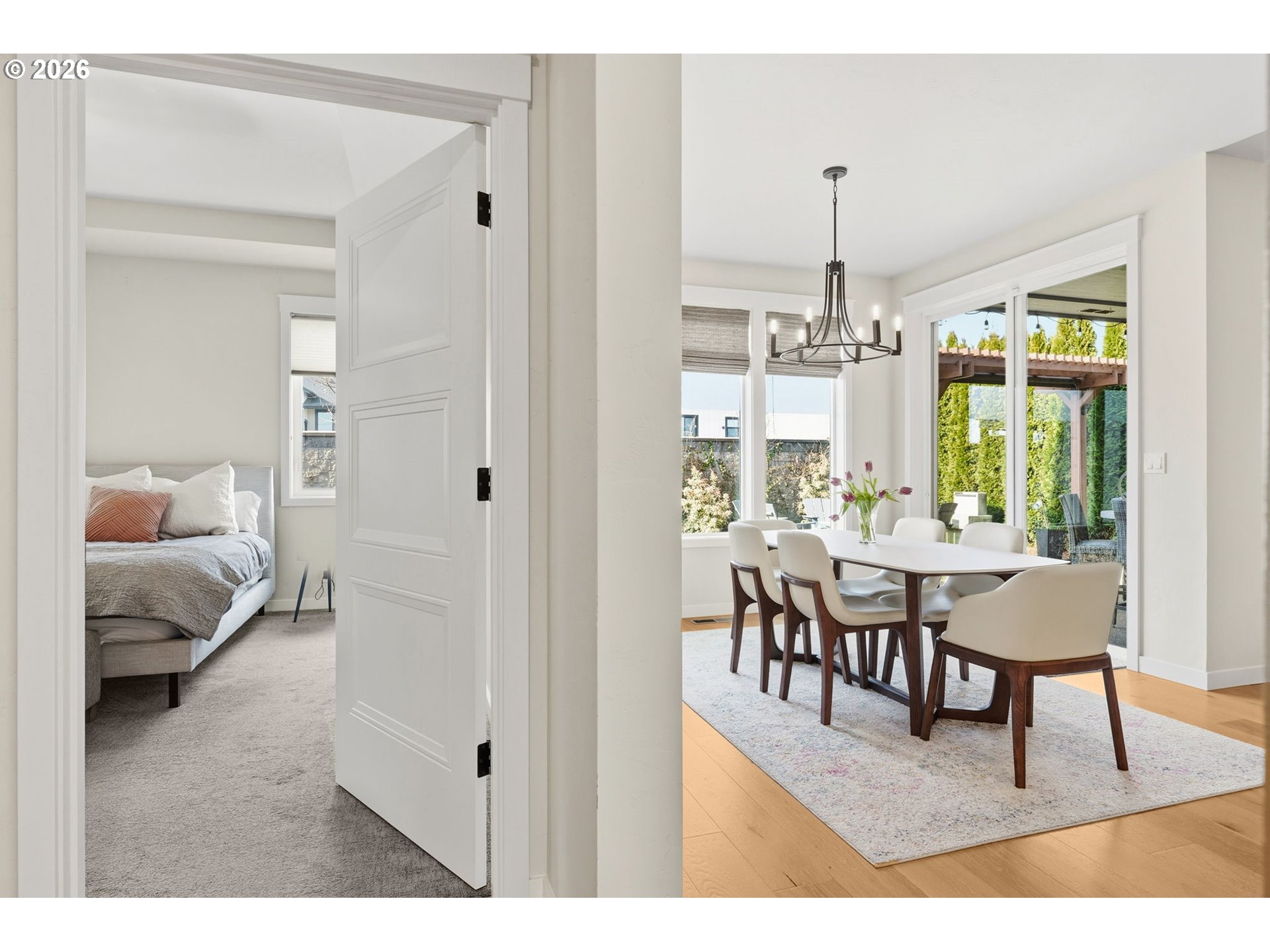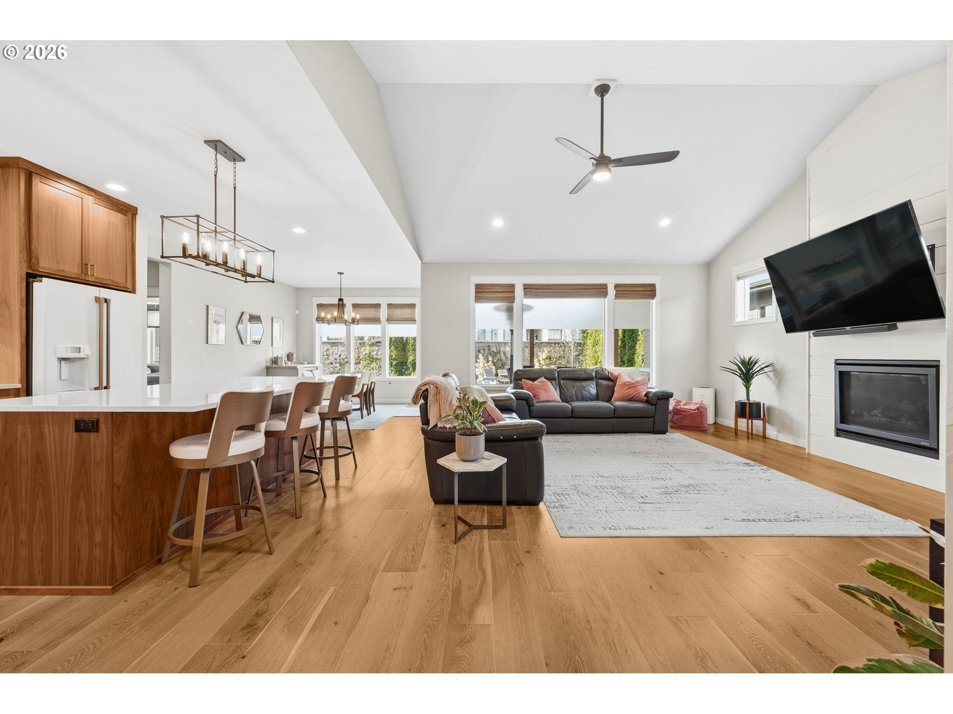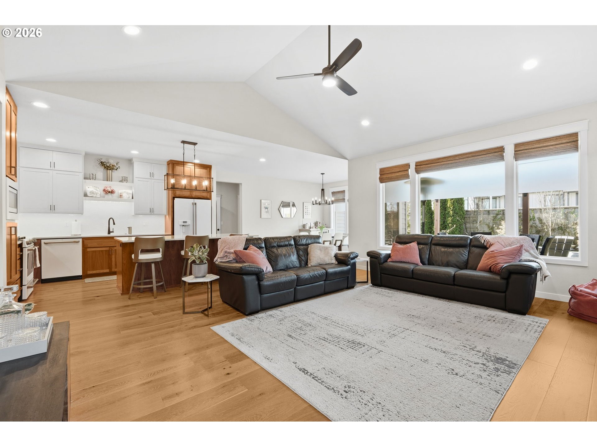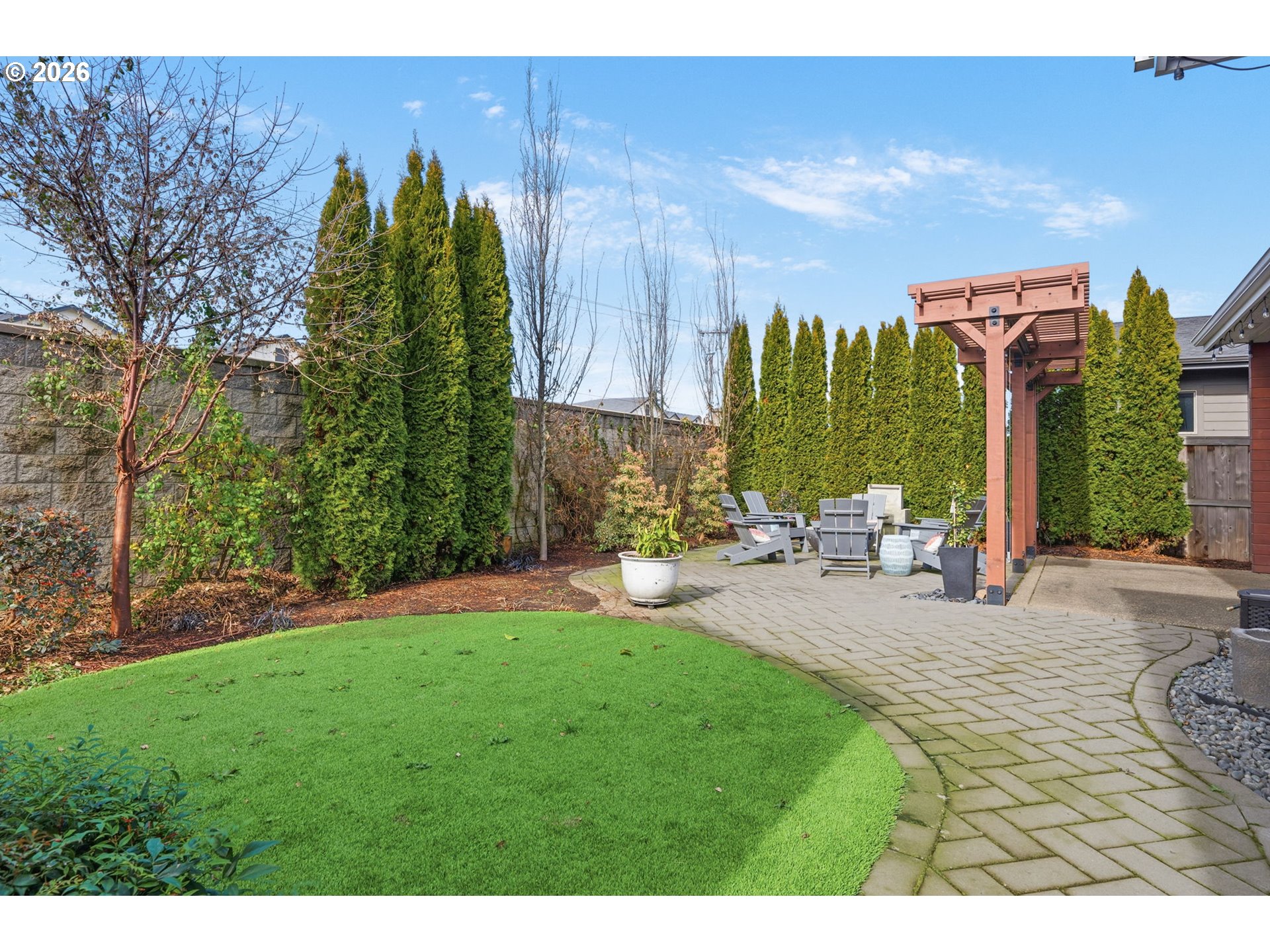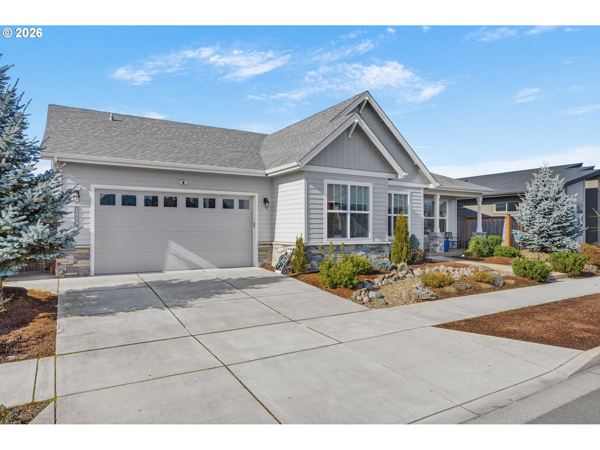 Beautiful Butler Built home (2019) located on 0.15 acres in the highly sought-after “The Nines” subdivision in North Gilham. Just a hop, skip, and jump to the community park and a quick drive to Gilham Elementary, Cal Young Middle School, Market of Choice, and Delta Oaks Shopping Center.The welcoming exterior features dry creek bed landscaping and elegant stone masonry accents. Inside, you’ll find modern design with custom touches throughout—hardwood, tile, and carpeted flooring, wide hallways, high ceilings, ceiling fans, and abundant natural light. Cozy up by the living room fireplace in the inviting great room layout.The luxurious kitchen is a showstopper with quartz countertops, a large island with eat bar, soft-close walnut cabinetry, and stunning GE Café Matte White gas appliances. The owner’s suite is filled with natural light and features a tray ceiling and spa-like bathroom with dual sinks and a beautifully tiled walk-in shower.Additional highlights include a convenient hallway storage nook, a separate laundry room with sink and cabinetry, and a versatile fifth room perfect for a playroom, office, art studio, or workout space.Step outside to a gorgeous backyard retreat complete with paver patio, firepit, pergola, and a large shed/workshop/she-shed—ideal for hobbies or extra storage. Artificial turf means your grass is always green and no mowing needed. A rare opportunity to own a thoughtfully designed home in one of North Gilham’s most desirable newer neighborhoods.