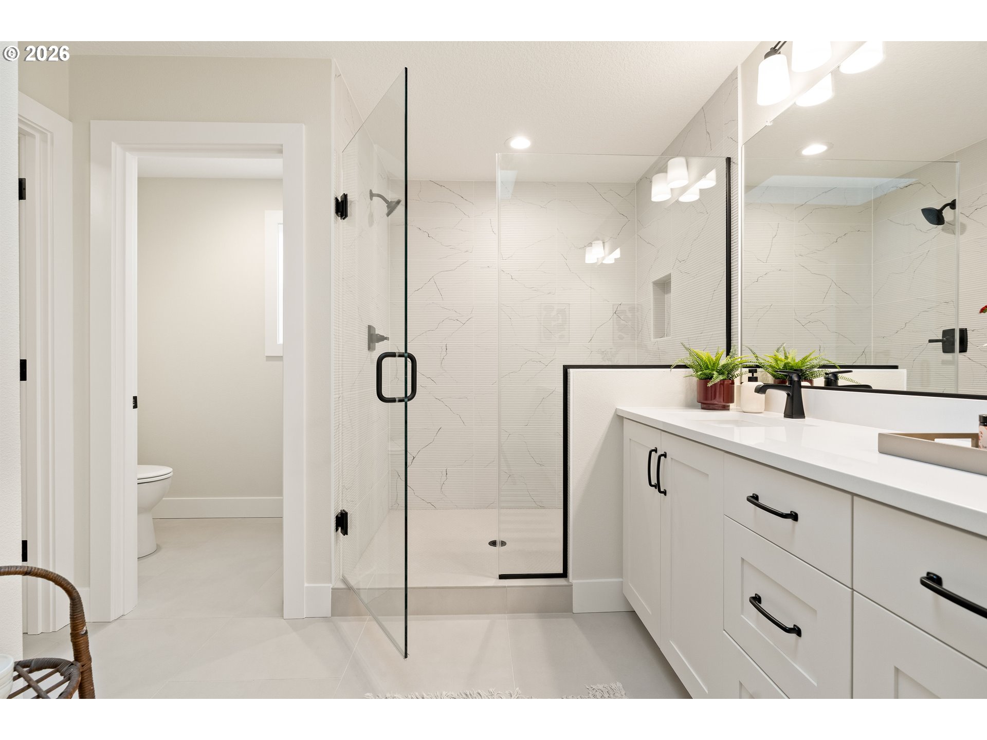 Welcome to Bonny Slope Estates by trusted local home builder Westwood Homes! OPEN SAT/SUN 12-4. 36 brand new homes priced from $849K - $975K in convenient Cedar Mill area just minutes from NIKE WHQ, outstanding schools and located in Washington County! This TWO-LEVEL home features a gourmet kitchen complete with THERMADOR 36" gas range, large island, pantry and great storage. Dining area opens to oversized, completely covered patio perfect for outdoor entertaining! Dramatic floor to ceiling tiled fireplace with built-in shelving is a beautiful focal point in the greatroom. Convenient den/bedroom on main level offers great flexibility. The vaulted primary suite is spacious enough for a comfortable sitting area + oversized furnishings. Stunning bath w/ luxury shower and massive walk-in closet is a DREAM come true! 4th upstairs bedroom is plenty large enough to serve as Bonus/Play Room. This home is move-in ready! No HOA.