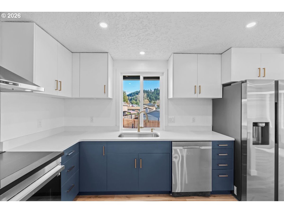 Fully renovated from top to bottom, this 1,980 SF home in Gresham’s Hollybrook neighborhood offers a clean, modern aesthetic with quality functional upgrades. The main floor features an open-concept kitchen with navy cabinetry, quartz countertops, gold hardware, and stainless appliances. New wood-plank flooring, recessed lighting, and fresh paint run throughout the main living areas. The finished basement adds a 4th bedroom and a brand-new full bathroom, along with a dedicated utility room. A separate ingress/egress door on the lower level provides private access, offering potential for a guest suite, multigenerational living or home office. Outside, the property features a large backyard (.21 acre lot) and sits within walking distance of Gradin Community Park and local elementary and middle schools. Completely turn-key and move-in ready!