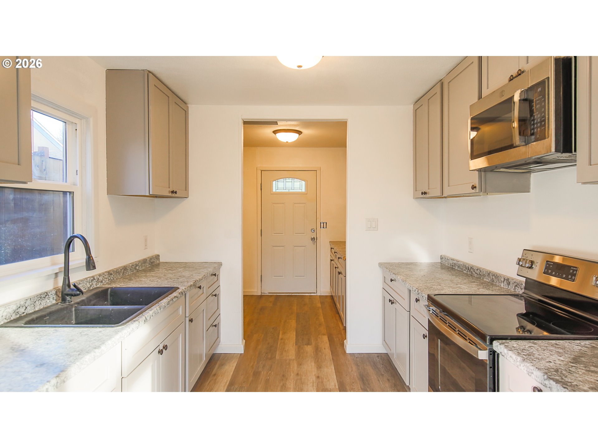 Fresh, bright, and move-in ready in the heart of Coquille. This inviting 2-bedroom, 1-bath home offers 960 sq ft of comfortable living with stylish updates throughout, including waterproof luxury vinyl plank flooring and updated light fixtures. The refreshed bathroom features new cabinetry and countertops, and the kitchen comes equipped with a newer oven and microwave. Enjoy added peace of mind with a newer roof (within the last five years). A great blend of charm and value, nearby everyday conveniences and all that Coquille has to offer.