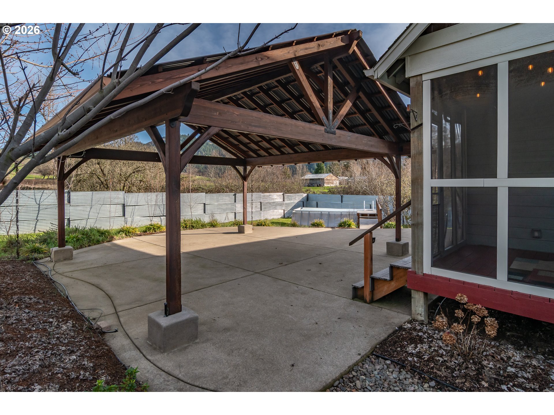This gorgeous well-designed home is located at the end of a quiet cul-de-sac, offering RV parking, privacy, a country feel, and green space surrounding the property. The setting is peaceful and open, making it a rare find for those who value space and quiet.With over 1,900 square feet, the home features 3 bedrooms plus an office and a spacious, well-planned layout. The primary suite includes a slider to the back patio, a walk-in closet, double sinks, a jetted tub, and walk-in shower. The large kitchen is highlighted by stunning granite countertops and dramatic vaulted ceilings that flow into the living room to create an open and airy feel. Upgrades throughout the home include engineered hardwood floors, luxury vinyl plank flooring, a custom front door, and updated custom lighting. Outdoor living is a standout feature with a screened-in porch, a generous patio, and a super-sized covered pavilion designed for gatherings and outdoor enjoyment. A thoughtfully upgraded home in a quiet setting with room to comfortably live, entertain, and enjoy the surroundings. See it today!