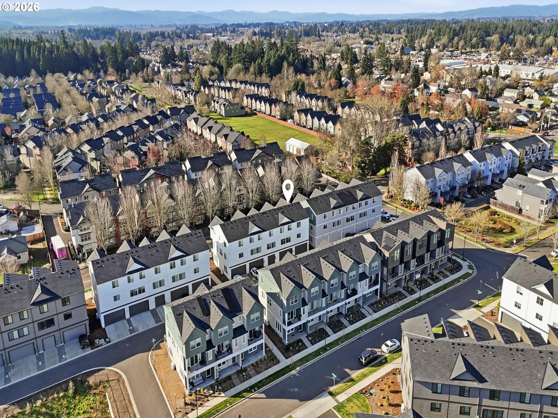 Nearly new South Hillsboro townhome with thoughtful upgrades throughout offers 4 bedrooms and 3.5 baths with 9’ ceilings on every level - creating a bright, open feel from top to bottom. The kitchen anchors the main level with a generous island, walk-in pantry, quartz countertops, under-mount sinks, stainless steel appliances, and soft-close cabinetry. Wide-plank laminate hardwood flooring spans the entire main floor, complemented by matte black hardware, lighting, and fixtures in both the kitchen and baths. An efficient electric heat pump provides year-round comfort. The primary suite features a vaulted ceiling, walk-in closet, dual sinks, and a spacious walk-in shower. Upstairs, a loft offers flexible space ideal for a home office or lounge area. The lower level includes a bedroom and full bath - perfect for guests or multigenerational living. Additional highlights include a double garage, two-car driveway, and a covered deck off the great room for easy indoor-outdoor living. Cute community with dog park and other amenities nearby! [Home Energy Score = 7. HES Report at https://rpt.greenbuildingregistry.com/hes/OR10226041]