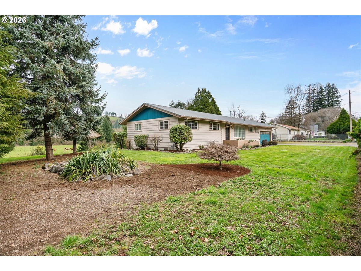 Recently updated & well-maintained ranch-style home offering 3 br, 2 ba on 0.58 acre. This property features a metal roof, RV parking with a covered area & shed. Updates including all new interior paint, new trim, newer laminate flooring & newer septic tank. The kitchen has been refreshed with a new motion activated faucet, drop-in sink, & new quartz countertops. Gas fireplace in living room. Enjoy serene views, fruit trees, grapes, & plenty of space for a garden, all while being conveniently close to town.
