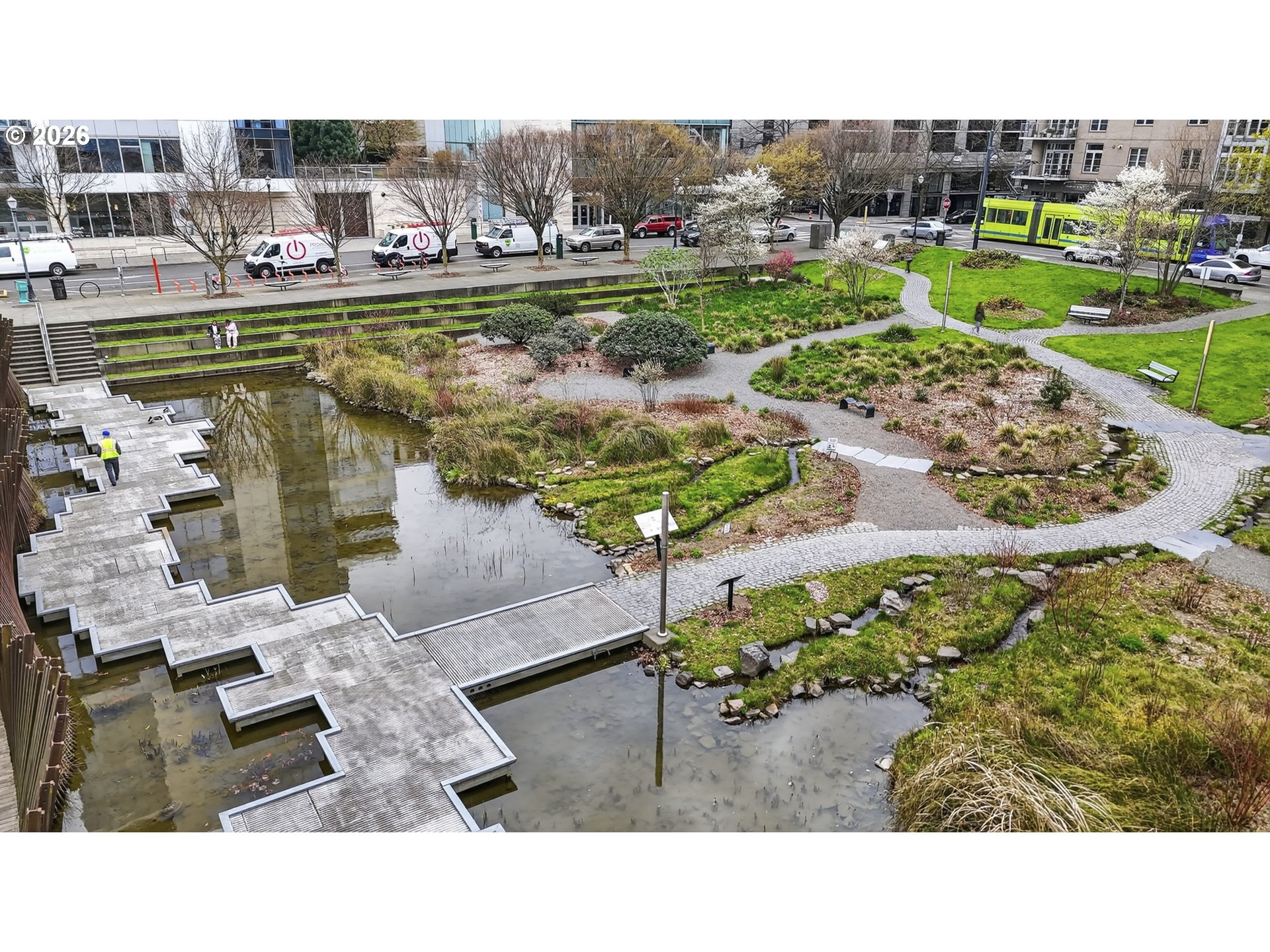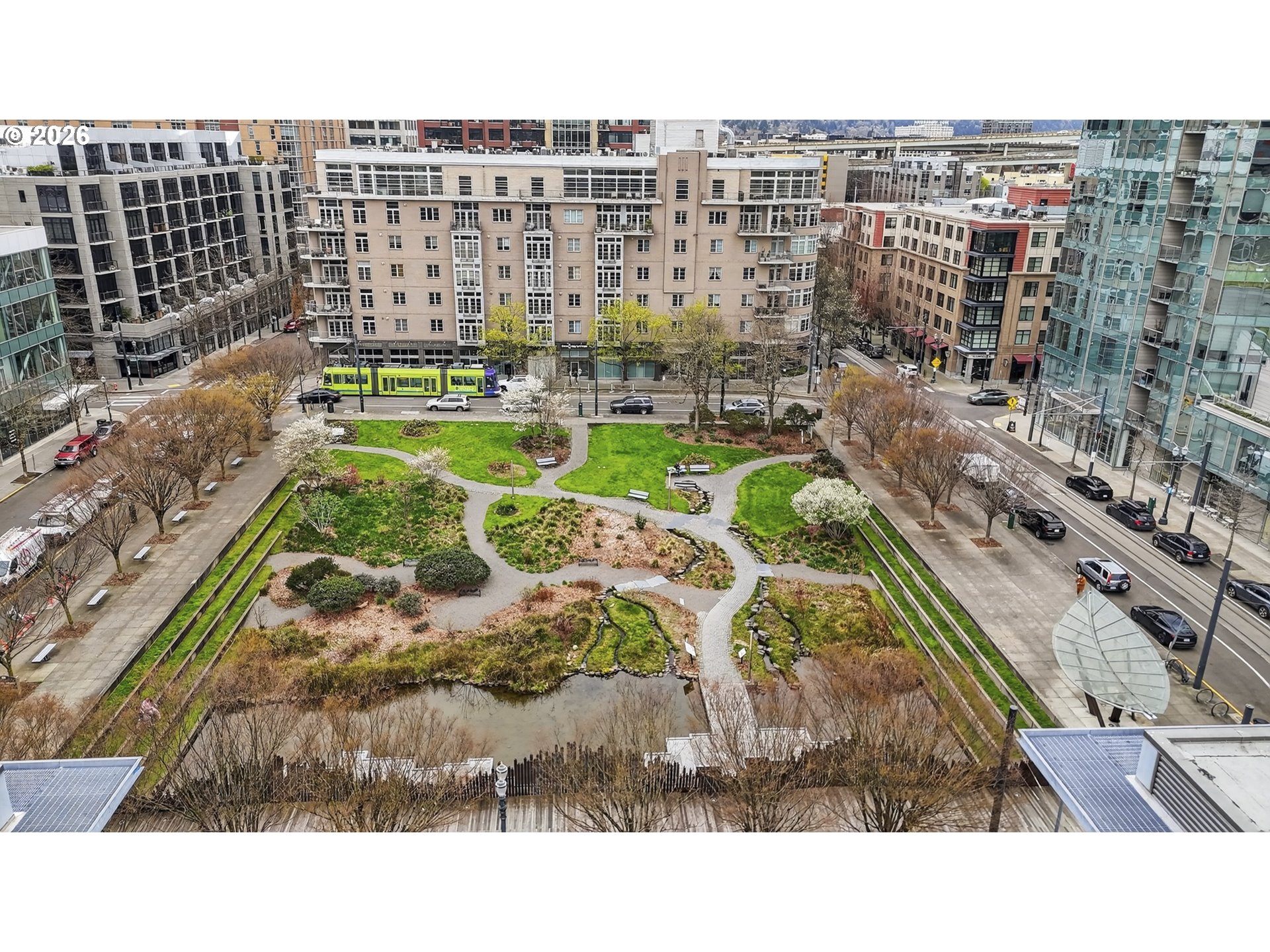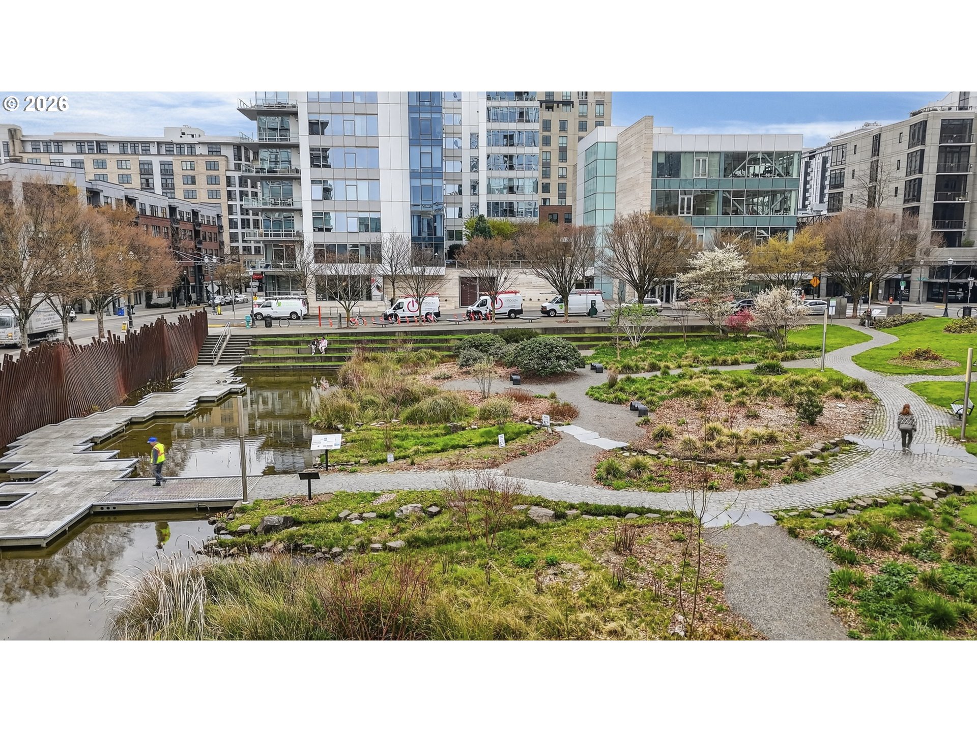 High style and effortless comfort come together in this beautifully customized Bridgeport Condo unit, ready for its next owner. Located on the 4th floor, this east-facing home enjoys peaceful views of Tanner Springs Park and even Mount Hood on clear mornings, filling the space with natural light. This 1 bedroom, 1 bath home has been thoughtfully updated with a modern European–inspired kitchen and engineered hardwood flooring throughout. The stunning kitchen renovation offers quartz slab countertops and full-height backsplash, an under-mount sink, soft-close cabinetry, floor-to-ceiling storage, and an eating bar. High-end appliances include a JennAir gas range, built-in microwave, and Fisher & Paykel refrigerator. The living area features a gas fireplace and Juliet balcony accentuating the park and mountain views. A dedicated dining space is illuminated by a sculptural Patricia Urquiola designer pendant. The bathroom showcases tile flooring, tiled shower surround, granite slab vanity with a partial floating sink and added storage. The spacious bedroom offers east-facing views and a walk-in closet. Additional highlights include a custom entry door, coat closet, in-unit washer/dryer, and a new $18K rooftop HVAC system for efficient comfort. This unit includes 1 secured parking space and storage cage. Building amenities feature secured entry and elevator, courtyard, and shared EV charging. HOA dues of $895/month cover water, sewer, trash, and gas. Ideally located in the Pearl District with easy access to parks, dining, and shopping — This is city living at its best!
