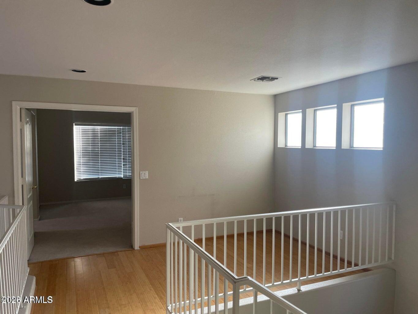 Gorgeous home with North/South exposure in Peoria! Close to shopping, dining, schools, and more! Light, bright, and airy throughout! Kitchen is complete with a plethora of cabinets, breakfast bar, and white appliances. Large loft upstairs! Master suite has plush carpet with ceiling fan and picture window. Full bathroom with dual sink vanity and private toilet room. Backyard features a covered patio with desert landscaping and plenty of room for entertaining.