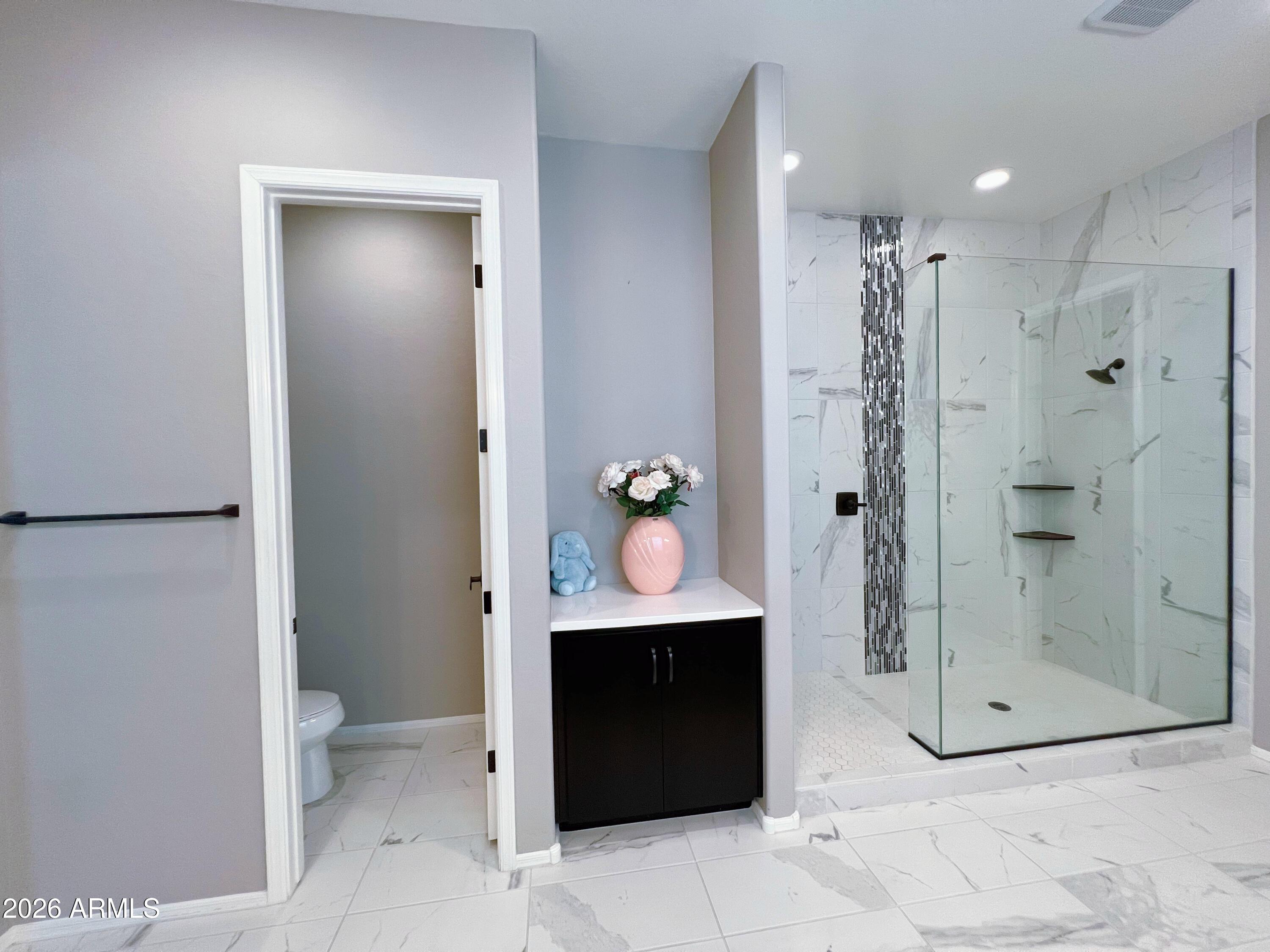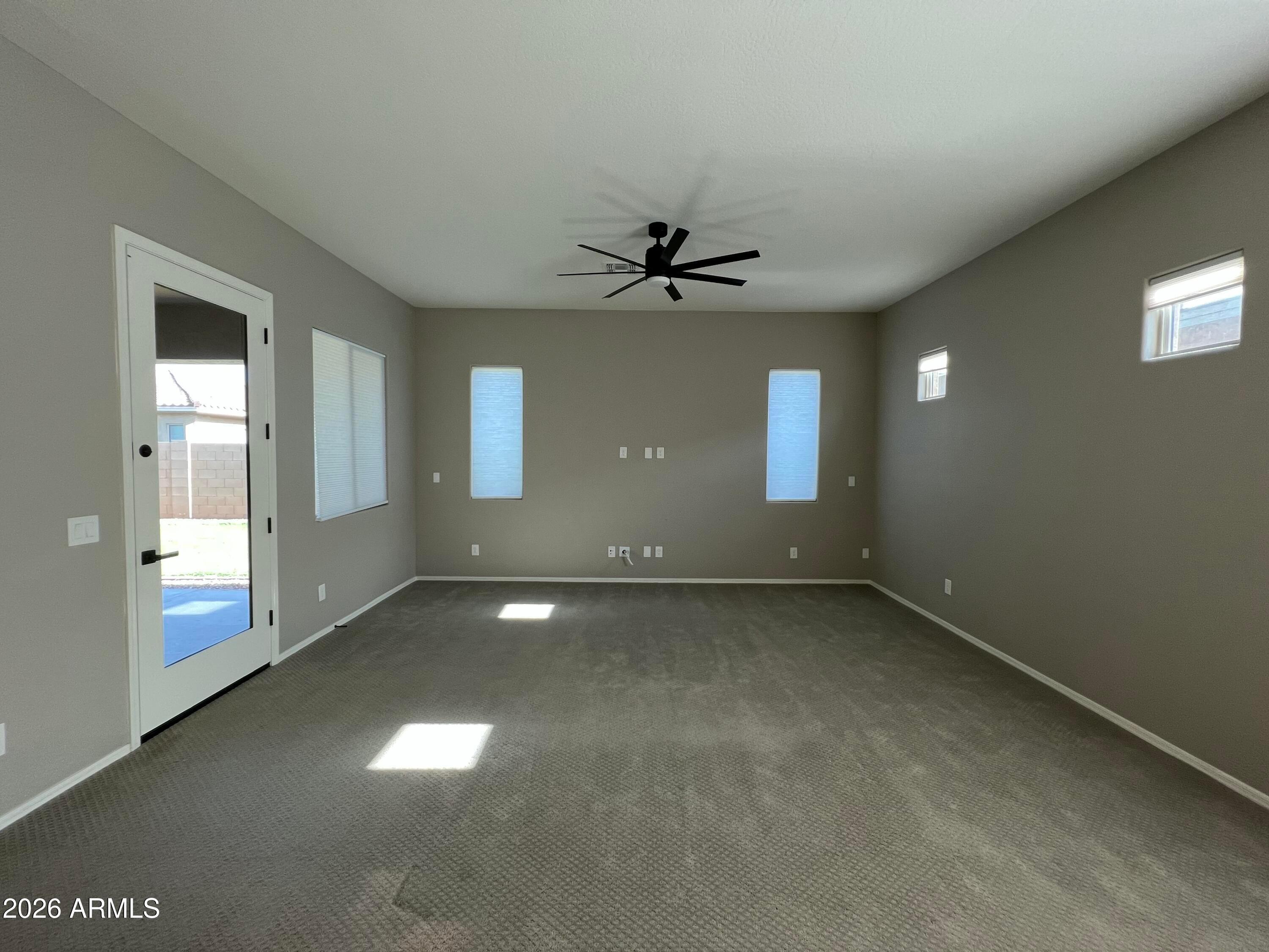 This move-in-ready 3-bedroom, 2.5-bath house in the Meridian Community has everything you need. Key Features:*Spacious layout* with a separate den/office.*Large primary bedroom* with a private bathroom (dual sinks, walk-in shower, tub) and direct patio access.*Open kitchen* with granite counters, stainless appliances, double oven, walk-in pantry, and bar seating.*Easy indoor/outdoor living* with patio access from multiple rooms and a grassy backyard. Great floors: easy-clean tile in main areas, carpet in bedrooms. Huge 3-car garage with extra storage. Access to community amenities: pool, splash pad, playgrounds, parks, and walking trails. Great Location: Minutes from Queen Creek Marketplace, schools, and parks.