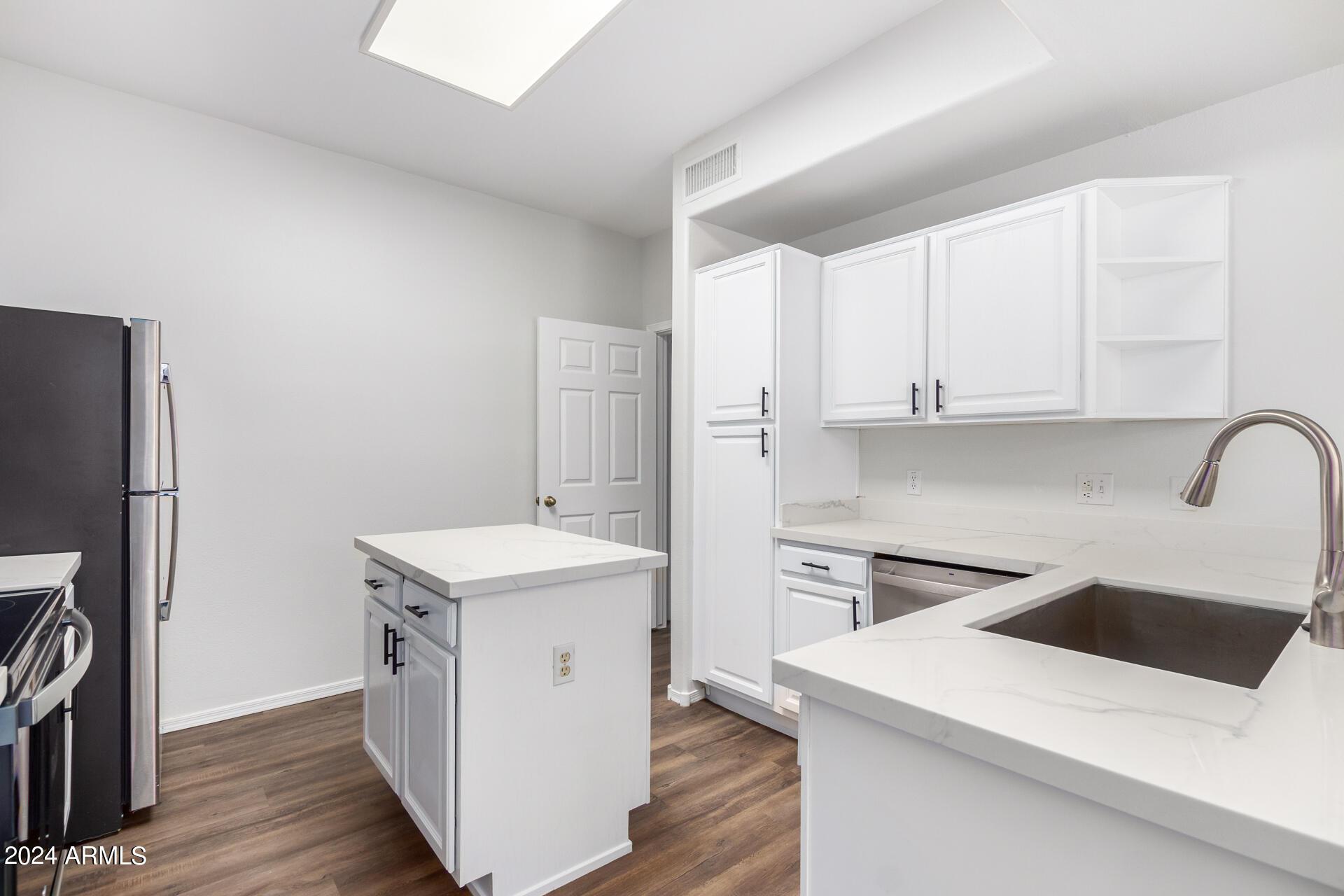 RARE remodeled large 3 bedroom condo with Attached 2 car garage and split floorplan all on the 1st floor! Lives like a house. Brand new plank floors throughout, fresh paint, new stove and microwave, all stainless appliances with brand new quartz countertops and fans. Full size washer/dryer, two car attached garage that enters right into the unit. (See floorplan) Bedrooms are spacious. Community pool and spa are heated, gym and office center on site. Close to shopping and other amenities in Northern Scottsdale! Unit is in the back of the complex with more privacy on your patio.