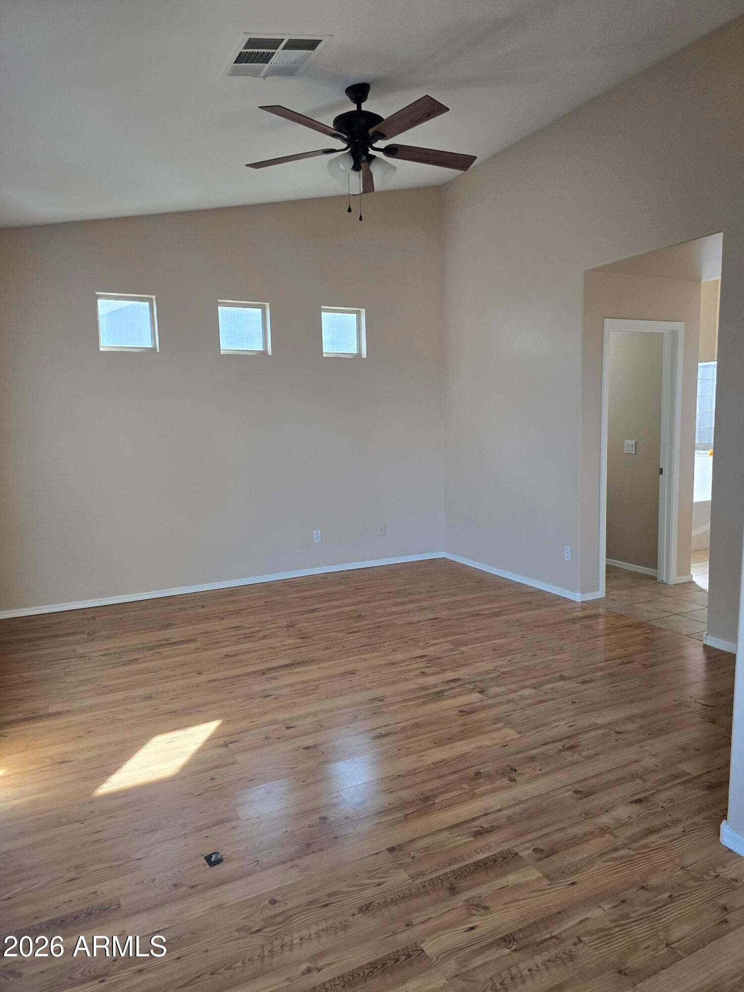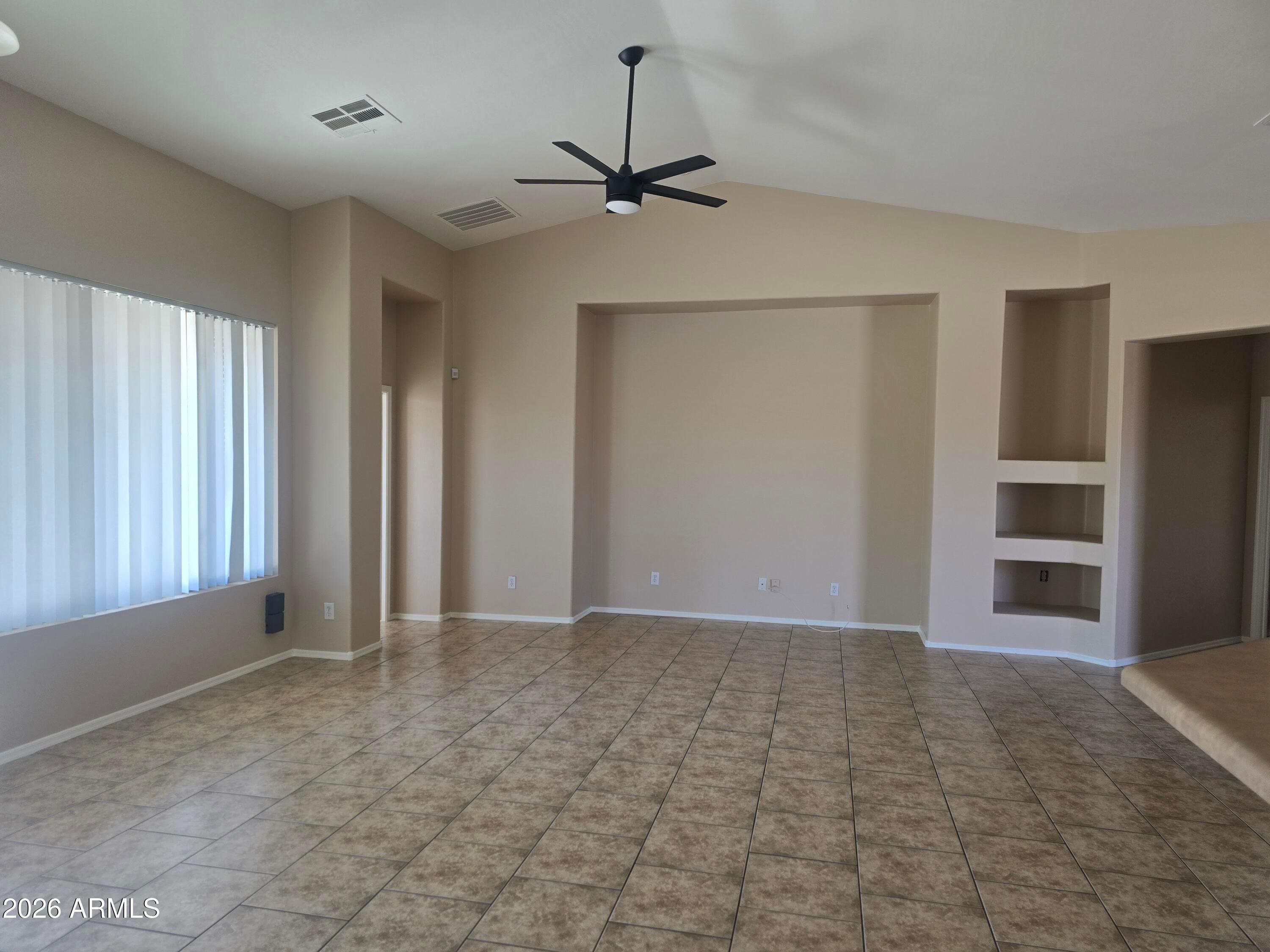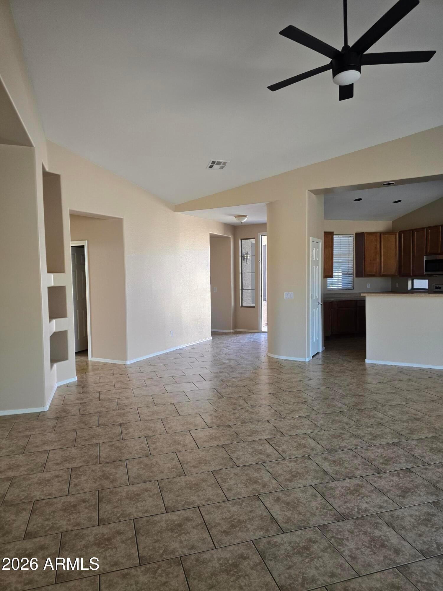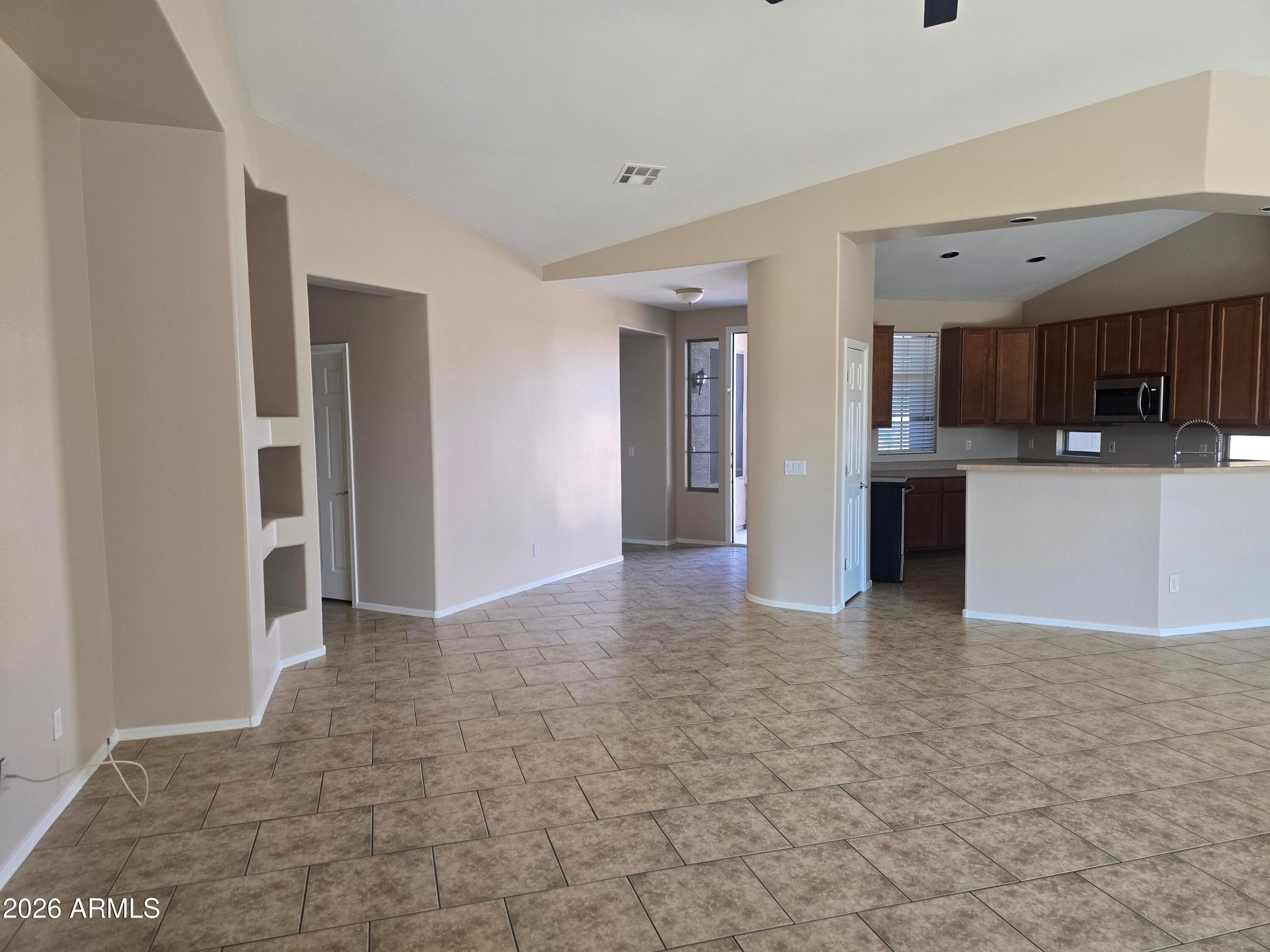 **New Paint Inside. Stainless Steel appliances! 4 BEDROOM. 2 Bath Single Story Home in Upscale Estrella Mountain. A Large Park is behind the property. Schools are close too. Greatroom Floorplan. No carpet except for the master closet! This house backs to a grassy common area with BBQ and no 2 story homes around the property. Vaulted Ceilings. Media Niches. Staggered Tile in Greatroom and Hall. Upgraded Cabinets. Master Bedroom has separate Tub and Shower, Double Sinks and a Walk in Closet.