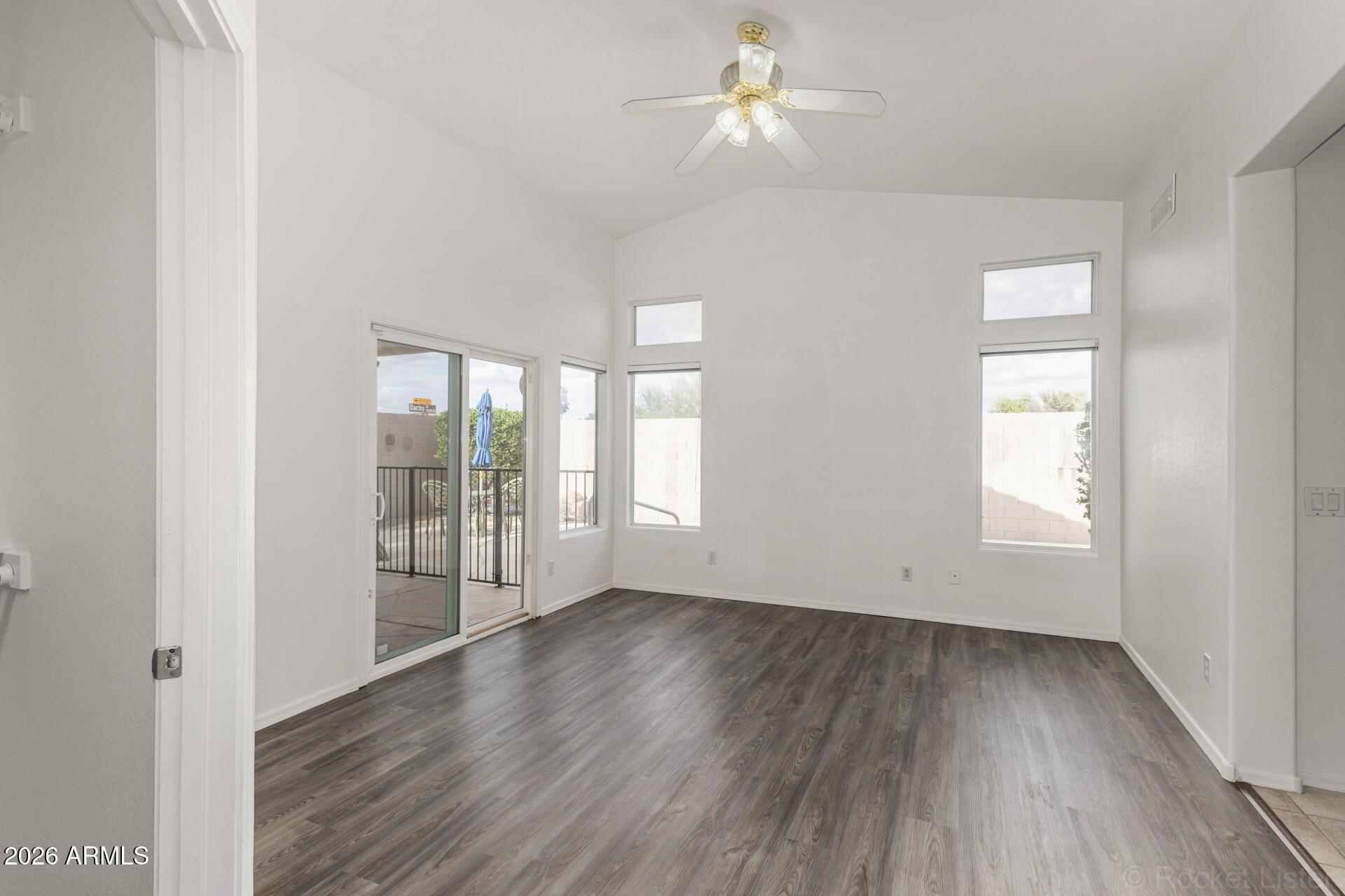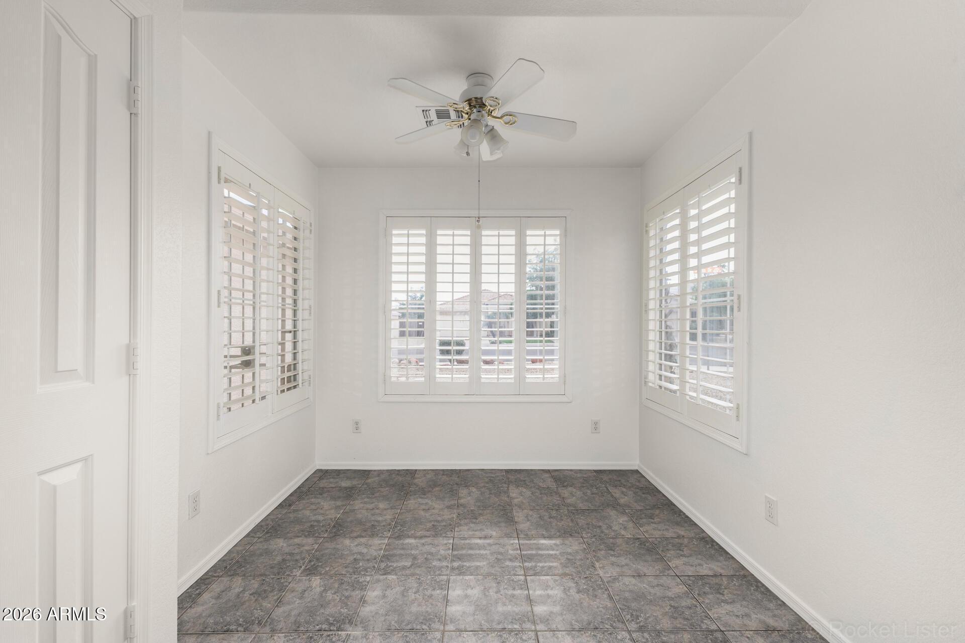 4 Bedroom Home with Pool! This charming rental sits on a corner cul-de-sac lot and features 4 bdrm, 2 baths, RV gate, and a 2-car garage with cabinetry. The inviting interior offers plantation shutters, vaulted ceilings, a neutral palette, abundant natural light, and tile flooring in the main living areas. Enjoy the open living and dining space that flows seamlessly into the kitchen. The fully equipped kitchen includes built-in appliances, a pantry, ample wood cabinetry, and a cozy breakfast nook. The spacious primary suite features a walk-in closet, sliding doors to the backyard, and an ensuite with dual sinks. Step outside to your private backyard oasis with a covered patio, storage shed, and a fenced sparkling pool with flagstone decking, perfect for enjoying Arizona living year-round