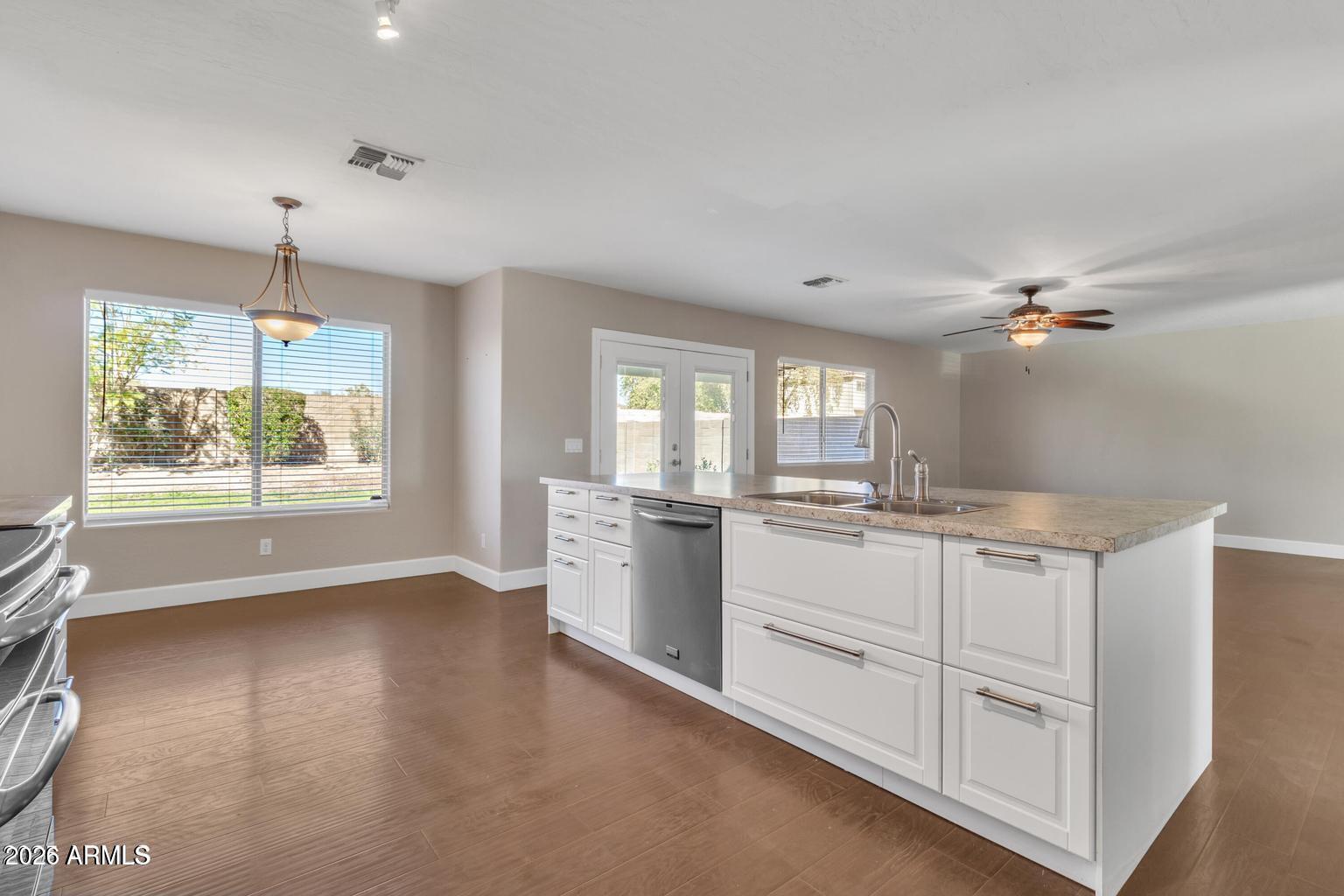 Welcome to your dream home! This stunning 4-bedroom, 2.5-bath residence offers the perfect blend of modern updates and comfortable living. The heart of this home is the beautifully updated kitchen, featuring an abundance of crisp white cabinets, a massive island perfect for gathering and meal prep, and sleek stainless steel appliances. Entertaining is a breeze with the adjacent formal dining area. Relax and unwind in the spacious living areas and retreat to the generously sized bedrooms. Three of the bedrooms boast desirable walk-in closets, providing ample storage space. The bathrooms have also been tastefully updated, adding a touch of elegance. Benefit from energy savings with the installed solar panels and enjoy year-round comfort with dual pane windows. Step outside and enjoy the private backyard, ideal for outdoor activities and relaxation. A two-car garage provides convenient parking and storage. This home is located in a desirable community with a park and children's playground. This fantastic home is a short drive from the Superstition Gateway West, Apache Creek Golf Club, and many more outdoor recreational areas! Don't miss out on this fantastic opportunity!