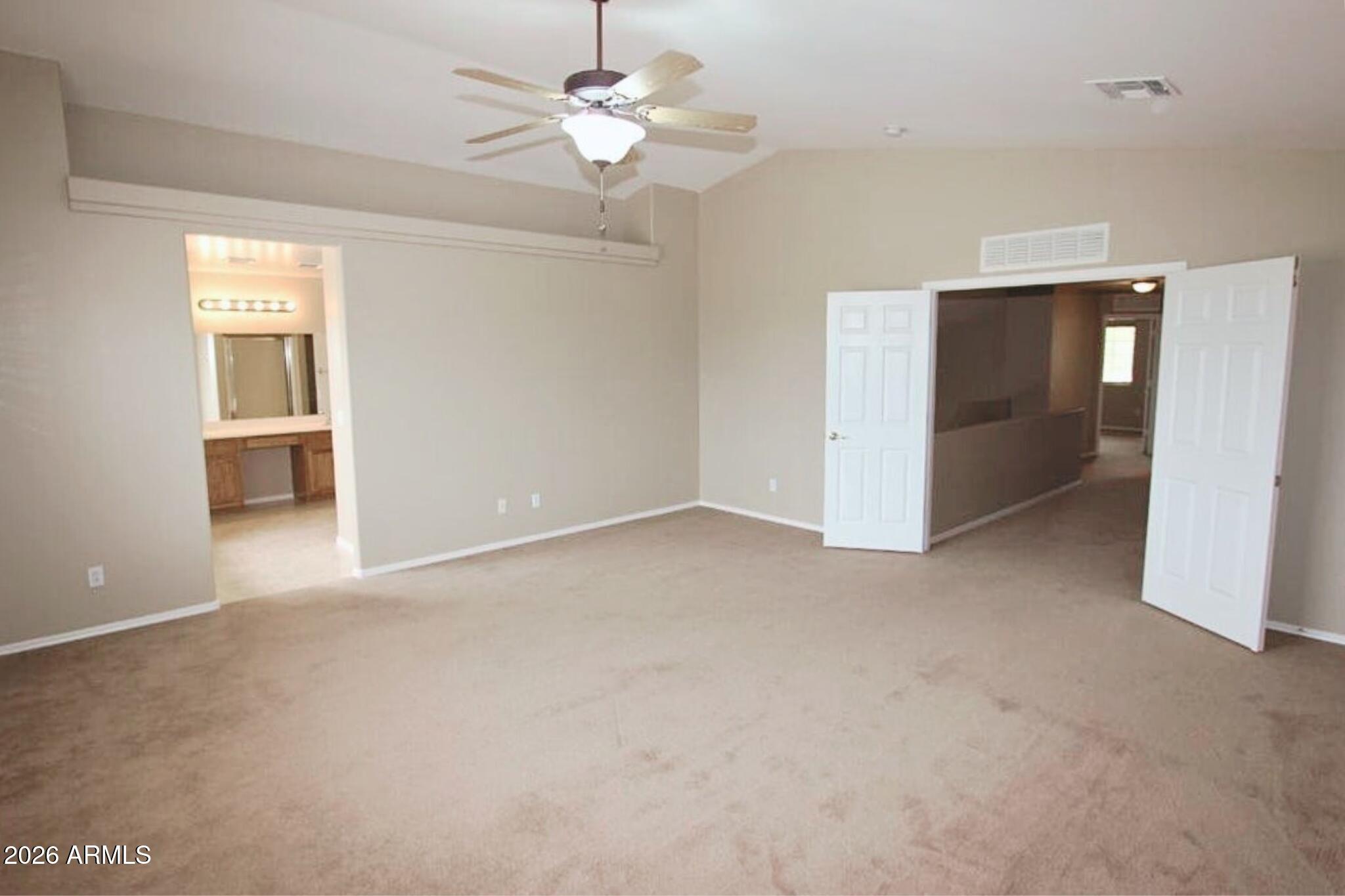 Gorgeous 3-bedrooms, 3-baths home in the highly sought-after San Tan Heights community! Step inside to discover an abundance of open space downstairs, accentuated by a versatile den area, perfect for your home office or entertainment haven. The kitchen is a culinary enthusiast's dream, featuring a spacious island with a breakfast bar, ideal for casual dining and gatherings. Retreat to the large primary room boasting a luxurious walk-in closet and a private en-suite bath, complete with double sinks, a separate shower, and a relaxing tub, offering the ultimate sanctuary for relaxation. Convenience is key with convenient washer and dryer hookups, ensuring laundry chores are a breeze. Step outside to unwind in the expansive private yard, complemented by a covered patio, providing the perfect setting for outdoor leisure and entertaining.