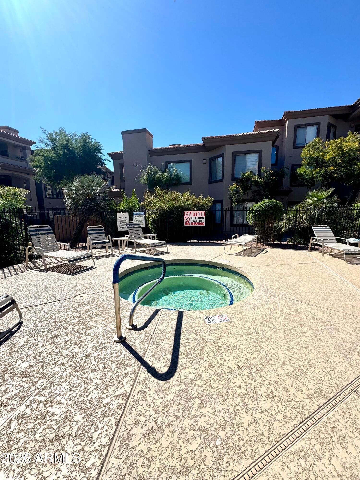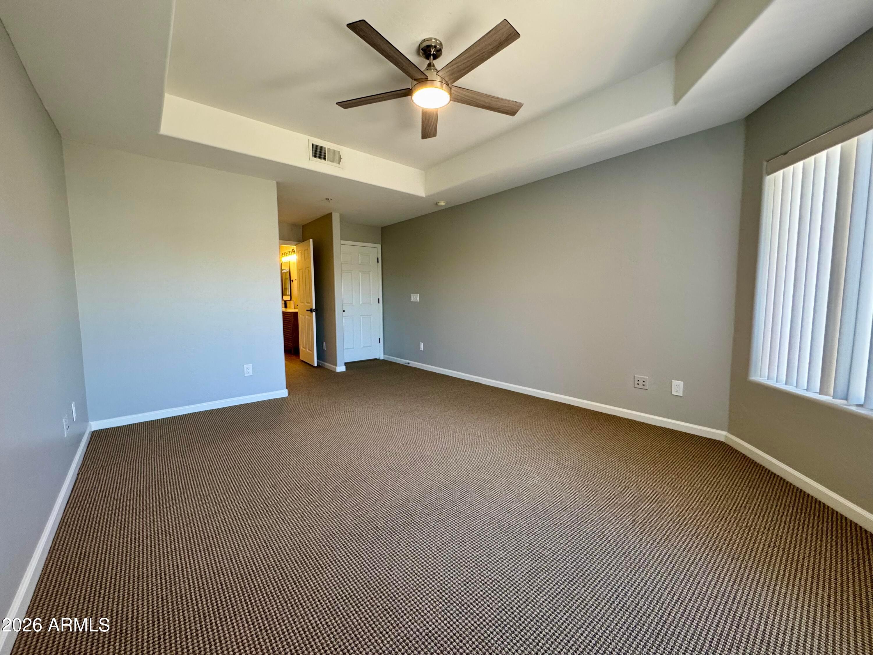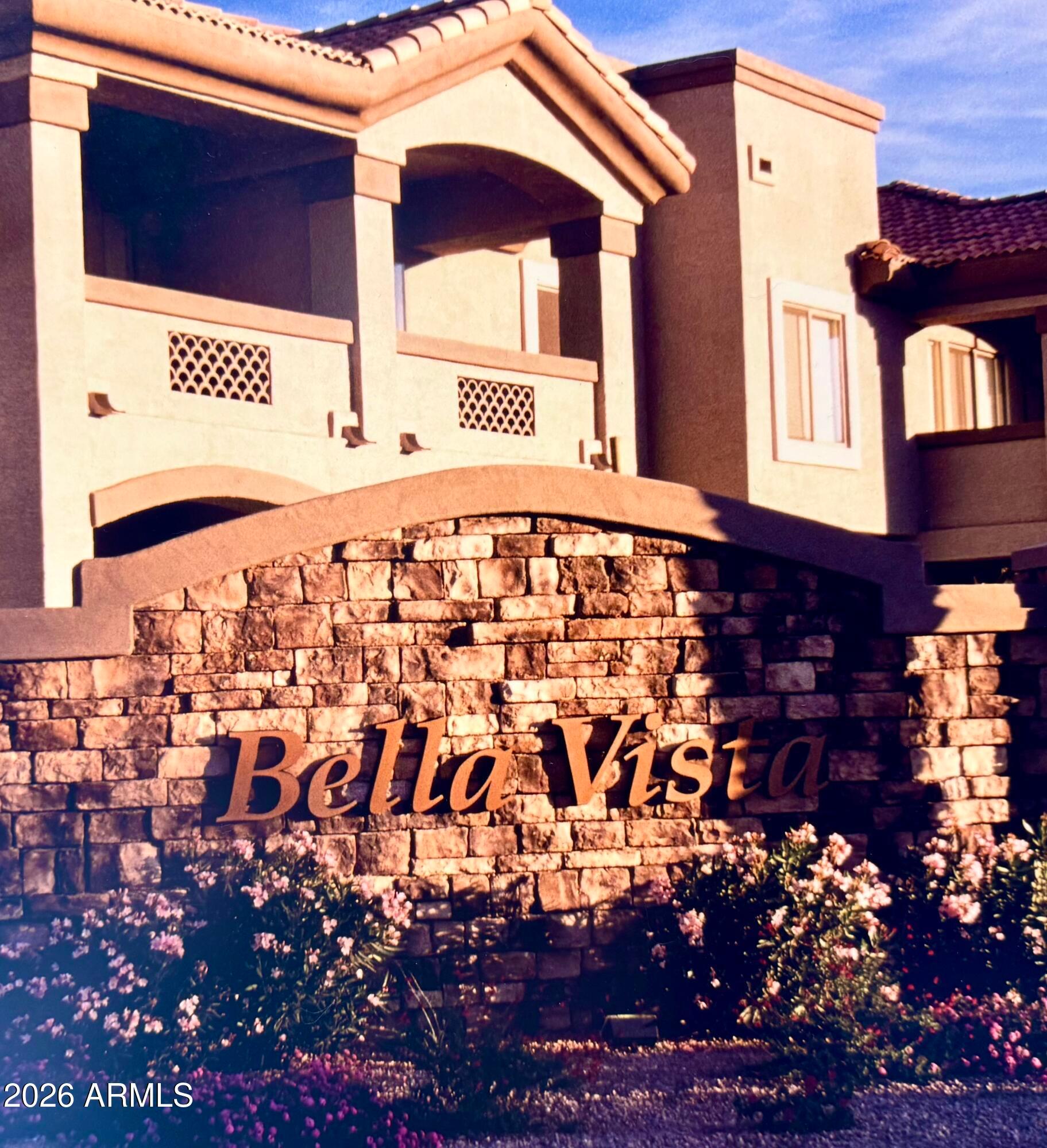 Beautiful 3-bedroom, 2-bath penthouse condo located in the gated community of Bella Vista in Scottsdale. This spacious corner unit features an open floor plan with vaulted ceilings, abundant natural light, and a private balcony with views of the McDowell Mountains. The kitchen offers ample cabinetry, a breakfast bar, and modern new appliances, while the split floor plan provides privacy with a large primary suite, walk-in closet, and en-suite bath. Additional features include in-unit laundry and one assigned underground parking spaces near the elevator. Residents enjoy resort-style amenities including 3 pools, spa, and fitness center, all conveniently located near shopping, dining, and easy access to Loop 101.