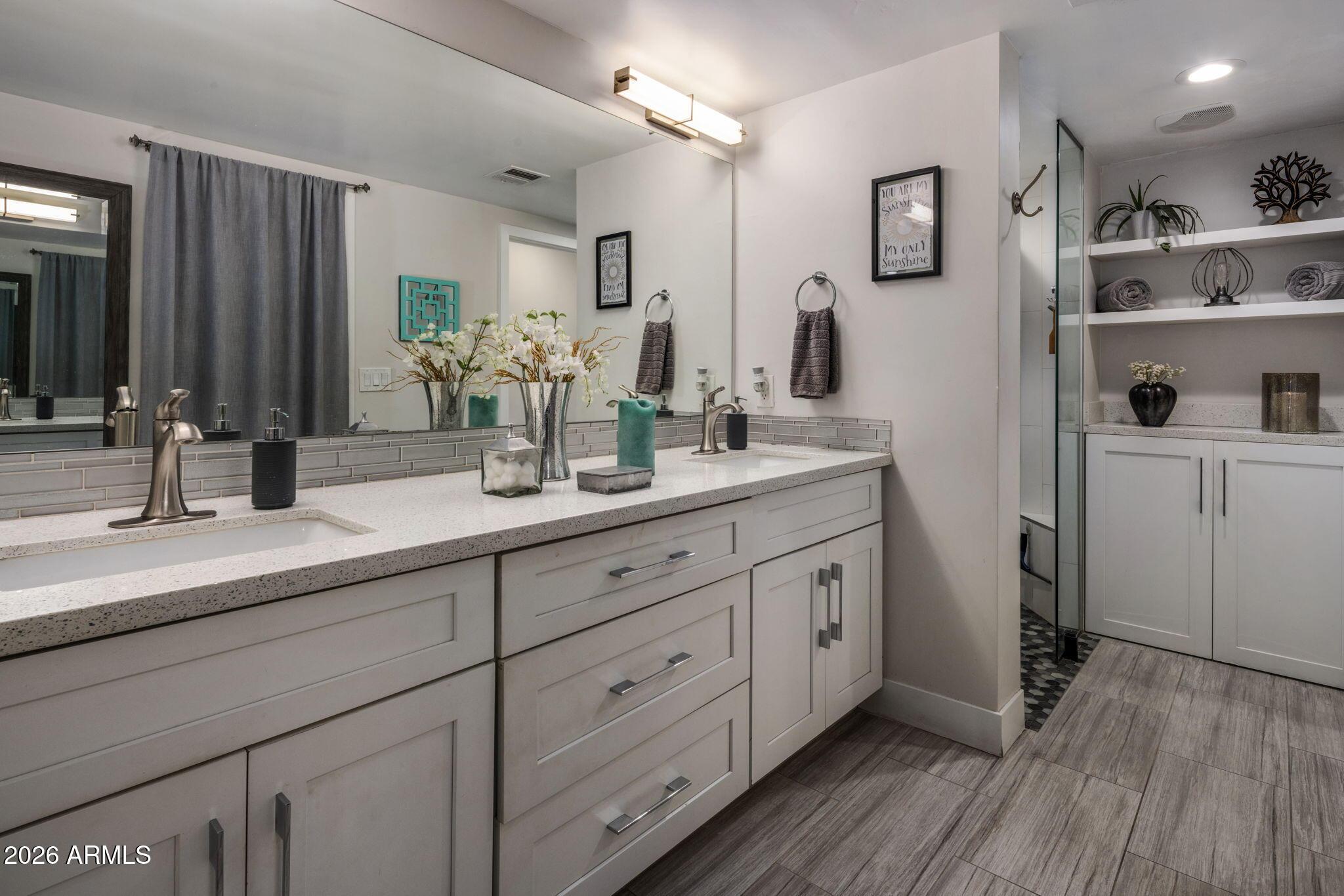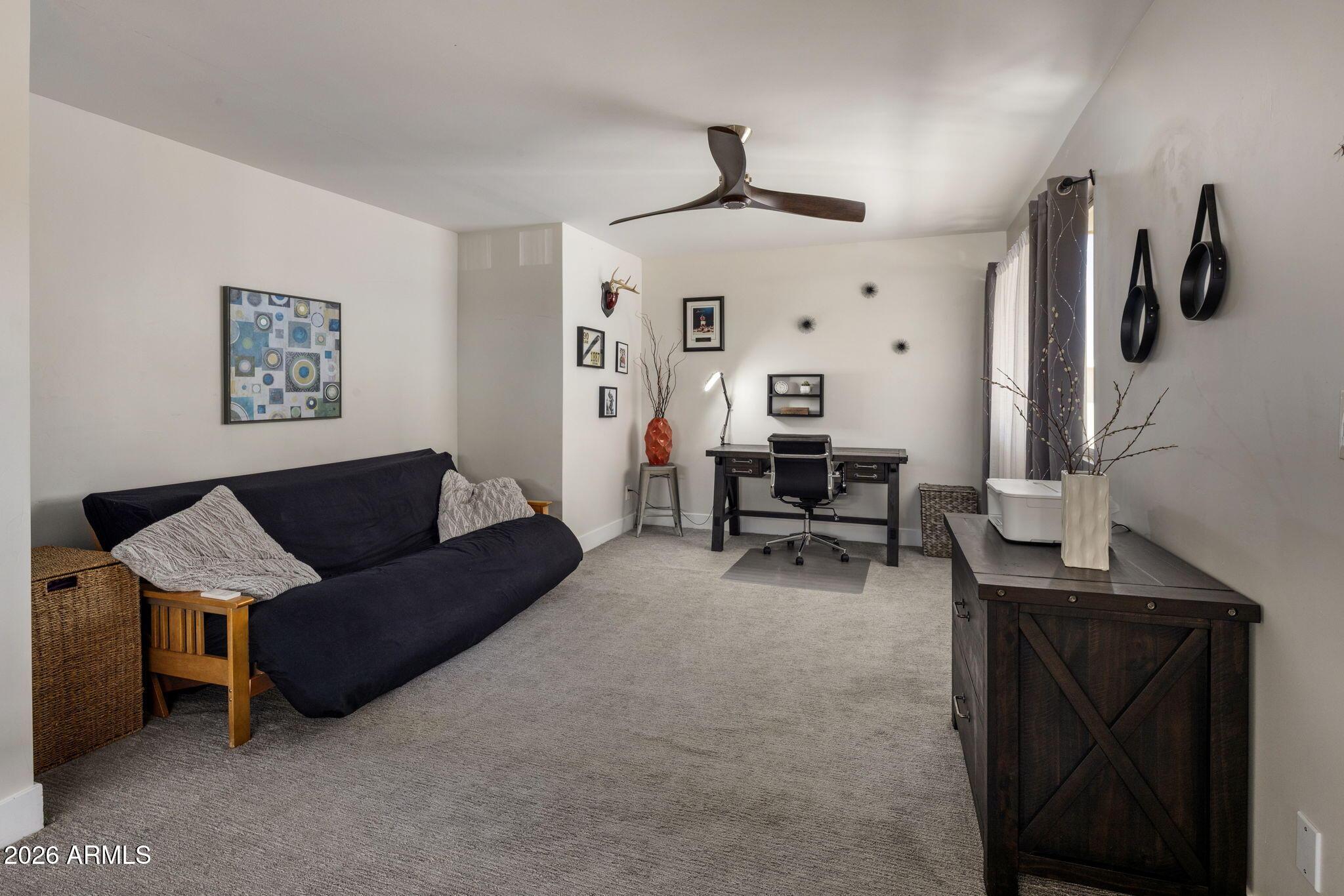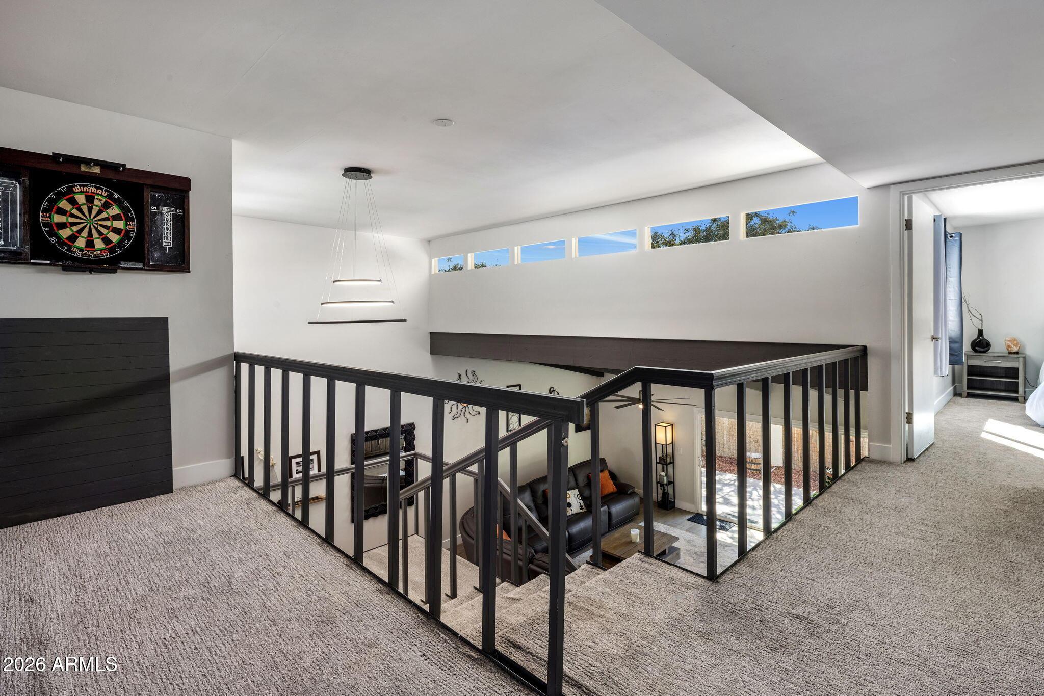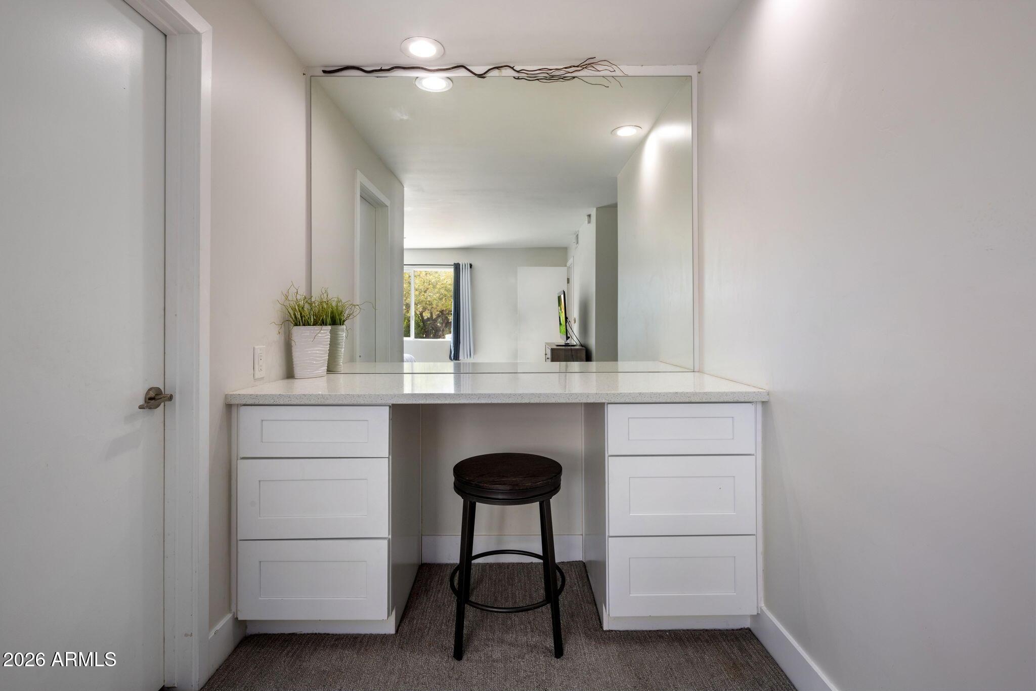 Architectural living meets effortless Scottsdale lifestyle in this rare fully furnished home designed by renowned architect E. T. Wright. This 3-bed, 2.5-bath home offers 3,010 sq ft of bright, open living with vaulted ceilings, hardwood floors, concrete-look ceramic tile, recessed lighting, & modern fixtures. The living space features a large sectional and lift-top coffee table, while the kitchen includes shaker cabinetry, subway tile, wine fridge, & island seating. The primary suite offers a walk-in closet and a spa like shower and private access to the patio. Sip morning coffee from the upstairs porch with mountain views or unwind in the roomy backyard. 2-car garage, storage sheds, Nuvo H2O system, and community pool & spa. Minutes to Old Town Scottsdale dining, shops & entertainment.