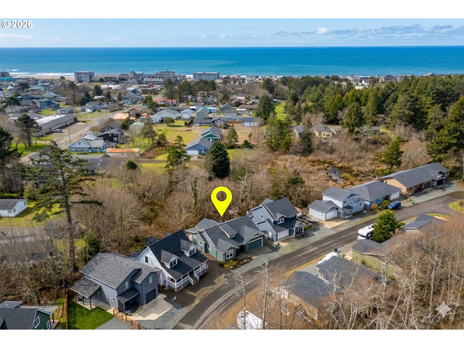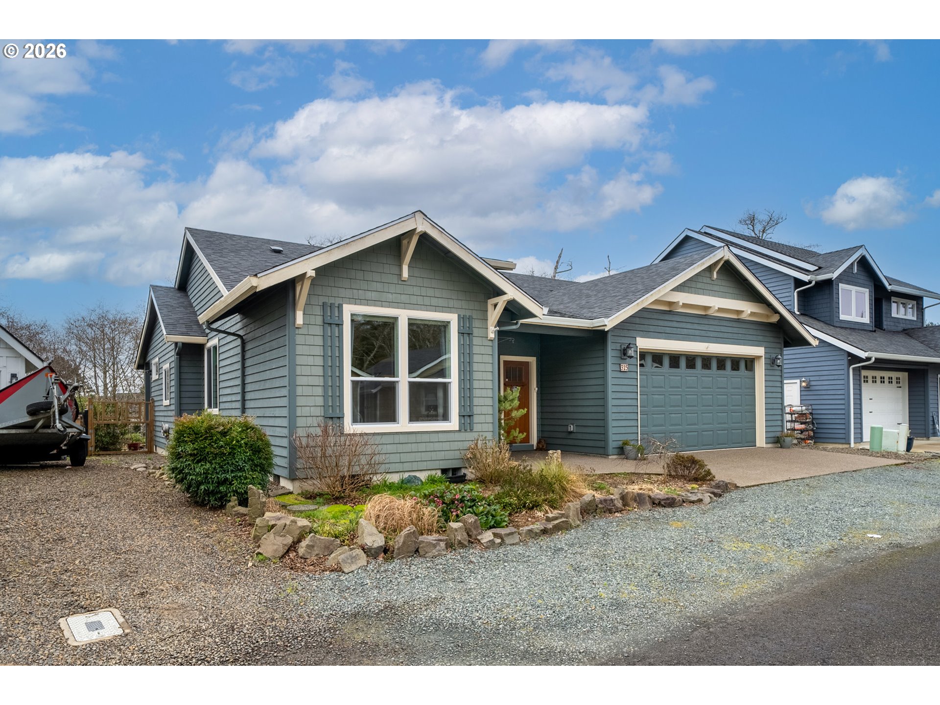 Enjoy the best of Rockaway Beach living in this beautifully maintained home tucked into a quiet newer neighborhood with a straight shot to the beach and a serene creekside setting. The inviting open-concept kitchen, dining, and living area features raised and vaulted ceilings that create a bright, spacious feel. The kitchen offers granite countertops and a large island, ideal for cooking, gathering, and entertaining. Laminate flooring runs through the main living areas, while the bedrooms feature comfortable carpet. The bathrooms and laundry room include quartz countertops for both durability and style. The spacious primary suite offers a walk-in closet, tile shower, and dual above-counter sinks. An oversized sliding glass door off the dining room opens to the backyard patio, where the home backs up to a peaceful creek. The low-maintenance yard features established dahlias and perennials that provide beautiful seasonal color throughout the seasons. A brand-new roof installed in December 2025 adds peace of mind and long-term value. Conveniently located close to the beach and local amenities, this well-cared-for home offers comfort, quality finishes, and easy coastal living.