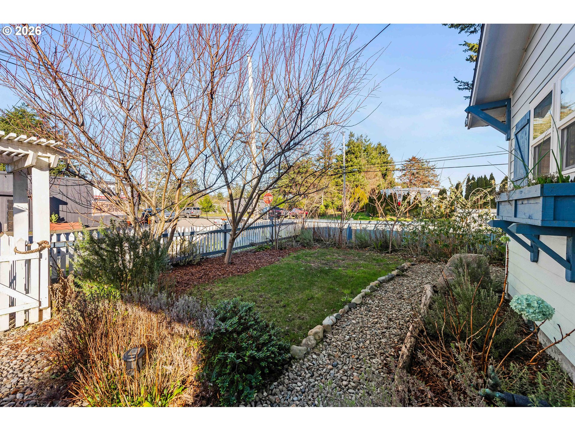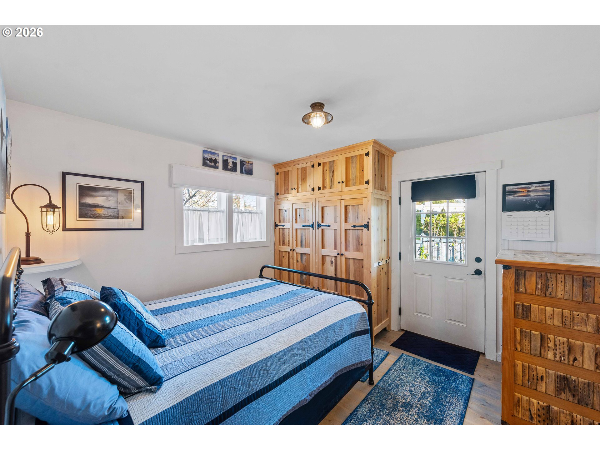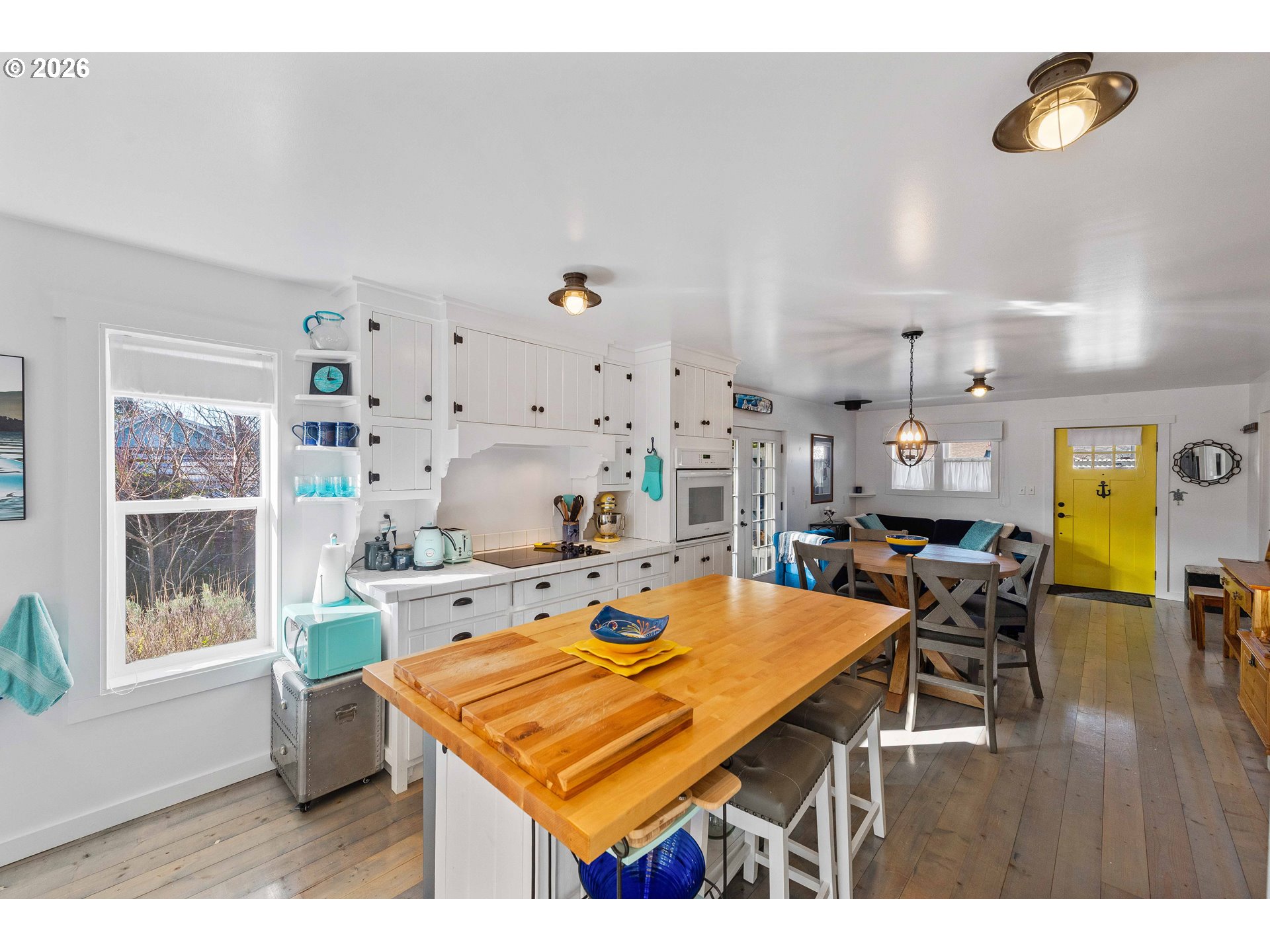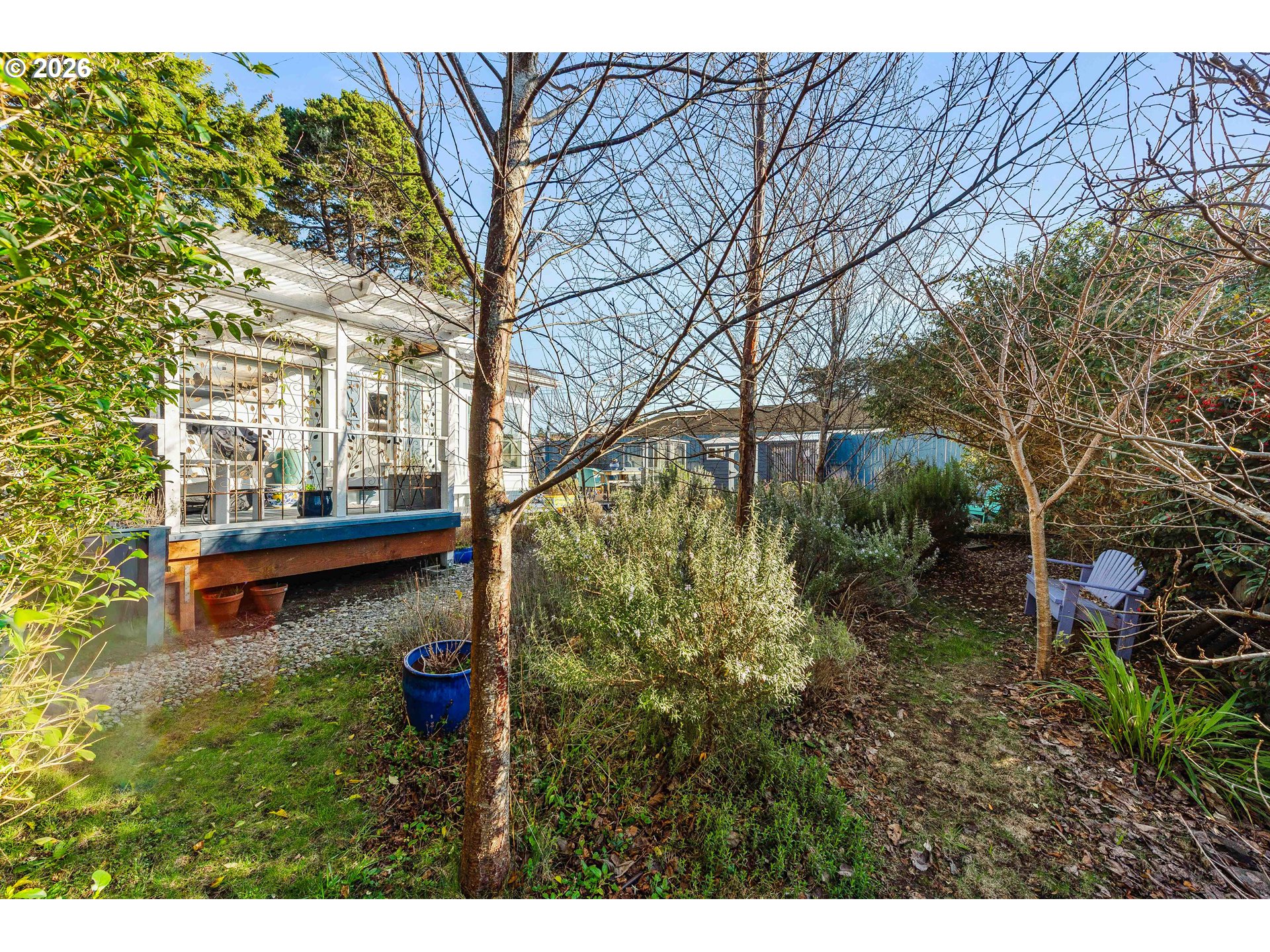 Cottage-style charm meets newer construction in Bandon Heights. Built in 2020, this 2-bedroom, 2-bath home offers two ensuite bedrooms—each with its own private deck—plus a bright sunroom and three decks total for easy indoor/outdoor living. The living room opens through French doors to a wraparound deck that continues along the side and into the backyard, while the primary suite features French doors to its own deck retreat.Inside, you’ll find warm tongue-and-groove stained pine details, a kitchen with a detached butcher-block island (included), built-in oven, cooktop with hood, and plumbing/wiring in place for a dishwasher. A handy utility room includes a sink and stackable washer/dryer (included). Both bathrooms feature radiant-heated tile floors and tiled tub surrounds. Bedrooms include built-ins for efficient closet/storage space.Outside is a sunny, fenced yard with alley access and gate, a newer sprinkler system, covered front porch, garden shed/outbuilding, and mature plantings that add serious curb appeal—flowering Japanese cherry trees along the front, climbing “Tropical Lightning” roses over the arbor, and three pear trees (including two Asian pears). New gutters installed in 2022.Enjoy coastal living in Bandon, Oregon—just up the road from Old Town Bandon shops, dining, and the boat marina, with nearby sandy beaches and all the best of the Southern Oregon Coast.