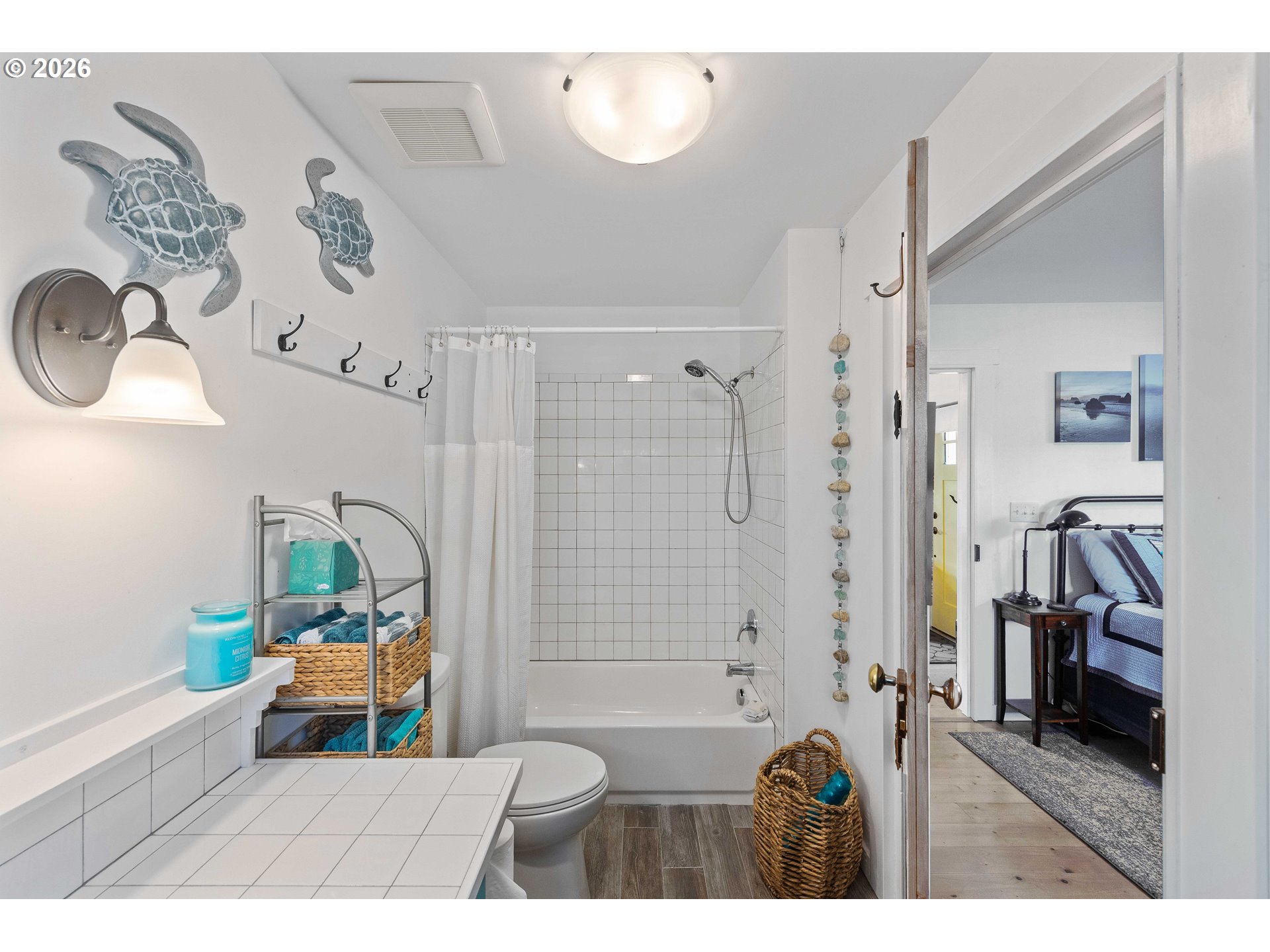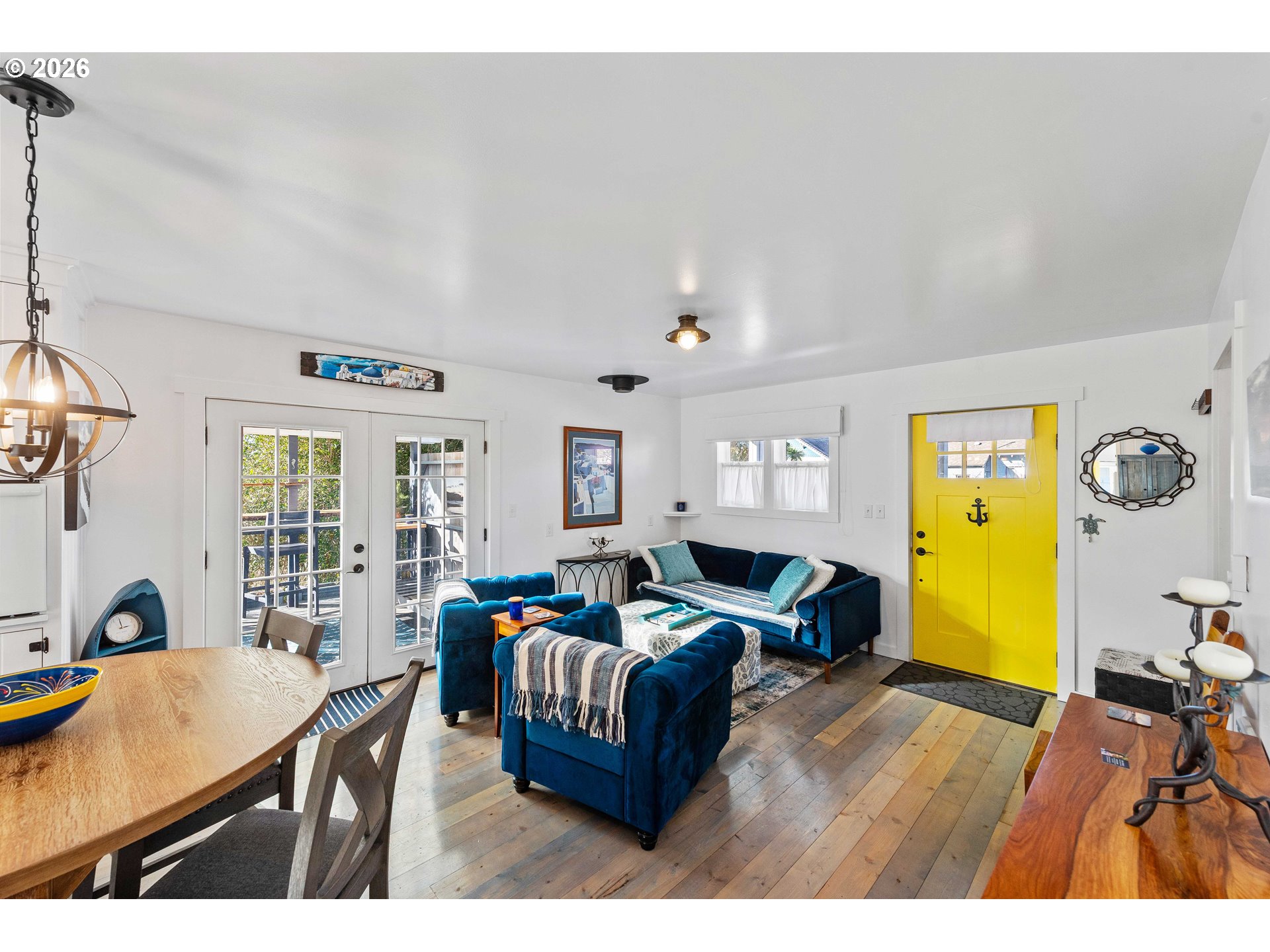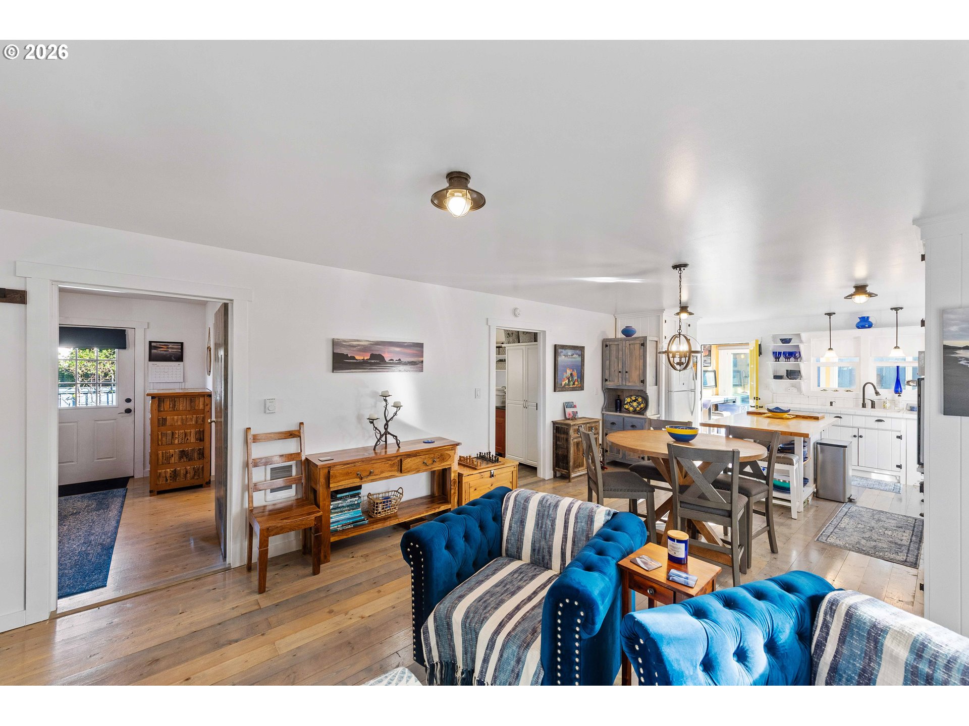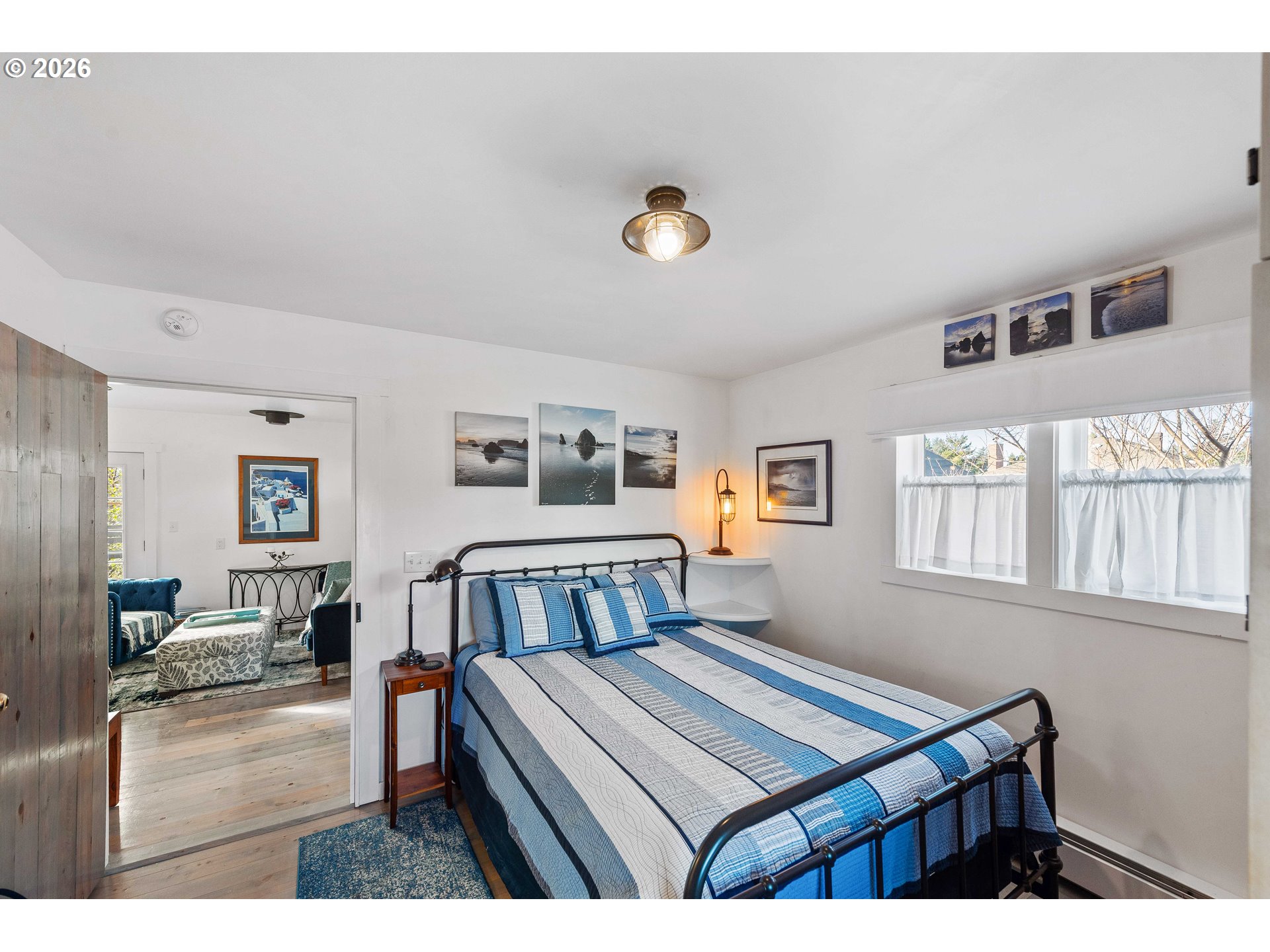 Cottage-style charm meets newer construction in Bandon Heights. Built in 2020, this 2-bedroom, 2-bath home offers two ensuite bedrooms—each with its own private deck—plus a bright sunroom and three decks total for easy indoor/outdoor living. The living room opens through French doors to a wraparound deck that continues along the side and into the backyard, while the primary suite features French doors to its own deck retreat.Inside, you’ll find warm tongue-and-groove stained pine details, a kitchen with a detached butcher-block island (included), built-in oven, cooktop with hood, and plumbing/wiring in place for a dishwasher. A handy utility room includes a sink and stackable washer/dryer (included). Both bathrooms feature radiant-heated tile floors and tiled tub surrounds. Bedrooms include built-ins for efficient closet/storage space.Outside is a sunny, fenced yard with alley access and gate, a newer sprinkler system, covered front porch, garden shed/outbuilding, and mature plantings that add serious curb appeal—flowering Japanese cherry trees along the front, climbing “Tropical Lightning” roses over the arbor, and three pear trees (including two Asian pears). New gutters installed in 2022.Enjoy coastal living in Bandon, Oregon—just up the road from Old Town Bandon shops, dining, and the boat marina, with nearby sandy beaches and all the best of the Southern Oregon Coast.
