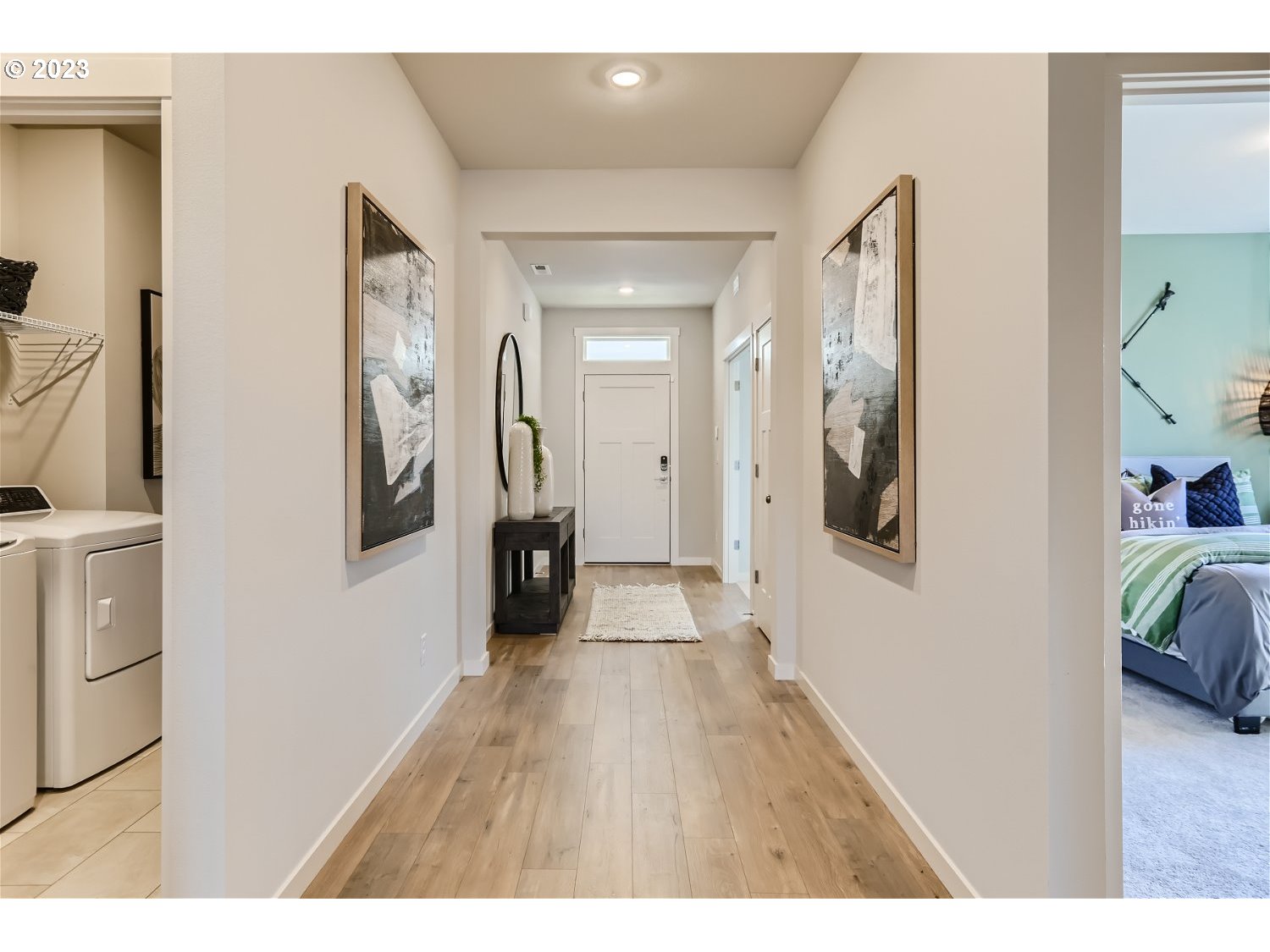 The popular 4 bedroom Endicott floor plan comes with A/C, all appliances including washer and dryer. Blinds, quartz counters, modern gas fireplace, has LVP flooring in entry, kitchen, and dining room comes with Tankless hot water heater. Owners suite offers a soaking tub and sizable walk in closet. Full landscaping front/rear yard with UG sprinklers as well as back yard fencing is also included. This 3 car garage home that backs to tall trees and wooded area. This homesite 223 photos are samples of a staged Endicott. Ask about our flex credit to buy down your rate with the use of preferred lender! Completion in February 2026
