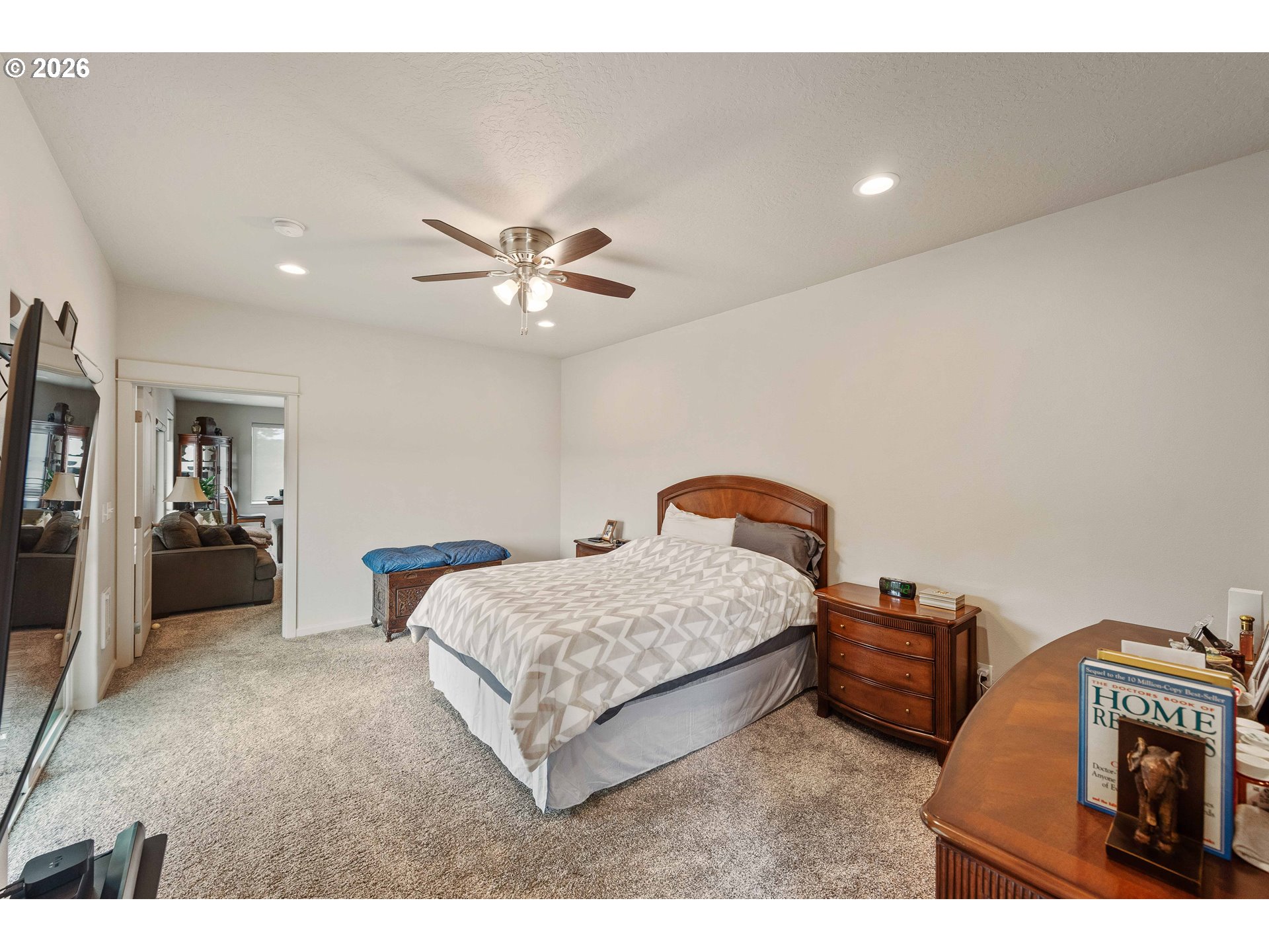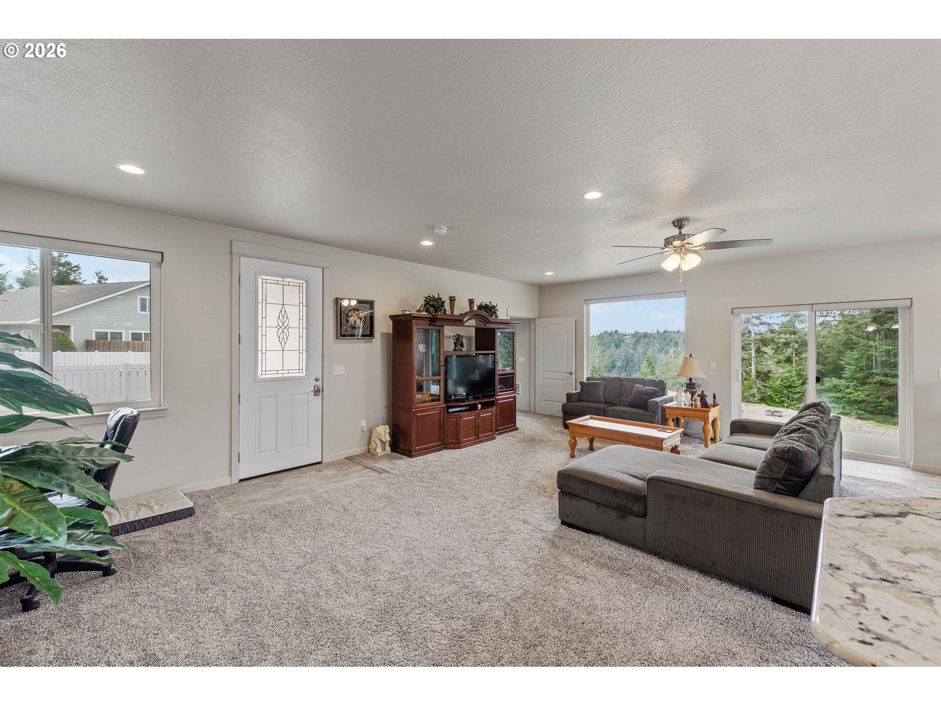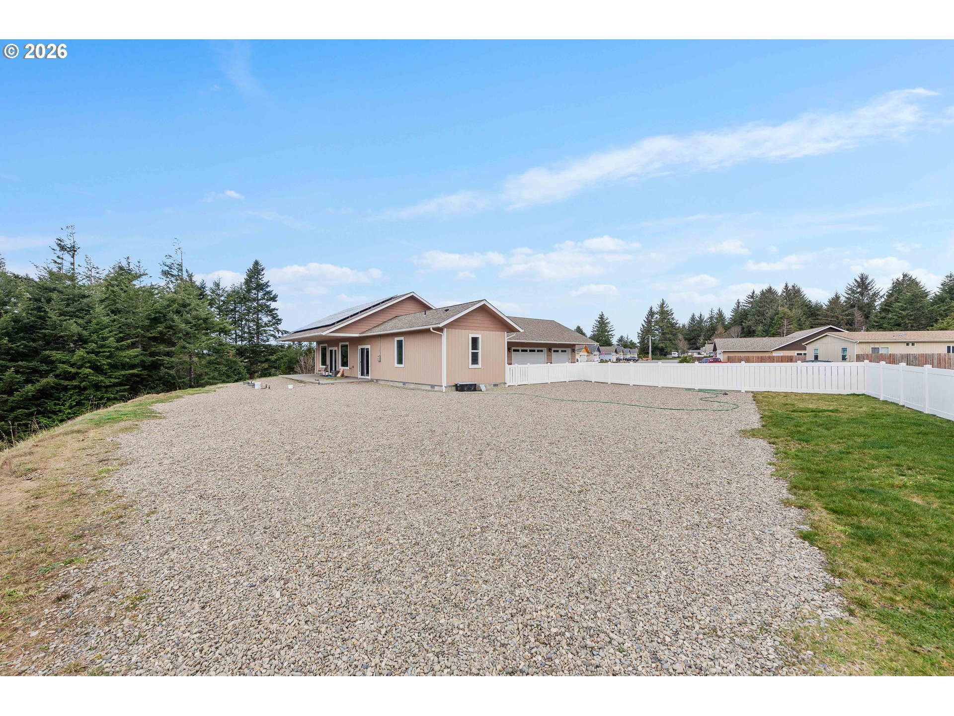 Must See Stunning 2,026 Sq. Ft. Home on Over Half an Acre with Beautiful Views and PrivacyWelcome to this exceptional 2,026 square foot home, perfectly positioned on just over half an acre at the end of a quiet cul de sac. Surrounded by scenic views of the Joe Ney Valley water and mature trees, this property offers a rare blend of natural beauty, privacy, and peaceful living.The thoughtfully designed open concept floor plan creates an inviting and spacious atmosphere, ideal for both entertaining and everyday comfort. Large sliding glass doors open to a fully fenced yard from both the main living room and the luxurious primary en suite, providing seamless indoor outdoor living and enhanced privacy.Inside, the home showcases LVP flooring and plush carpet throughout, all meticulously maintained and reflecting true pride of ownership.The primary suite is a relaxing retreat featuring a generous walk in closet and a beautifully appointed bathroom designed with comfort and style in mind. The second bedroom also includes a full walk in closet, and the third bedroom easily accommodates a queen size bed. The gourmet kitchen is the heart of the home, complete with granite countertops, a large island with built in pop up outlets, eat bar, island& undercabinet lighting, and modern finishes that elevate both form and function. An impressive 8 foot front door creates an elegant first impression. The durable SmartSide lap siding is engineered to resist mildew and help deter insects, offering long term, low maintenance performance.Energy efficiency is a standout feature with solar panels in place, and the seller paid only 17 dollars for electricity in 2025. The property also includes a little over 1,000 square foot garage with an installed EV charger, providing ample space for vehicles, storage, and hobbies.With its beautiful views, privacy, quality upgrades, and meticulous care, this home truly has so much to offer. A must see opportunity.