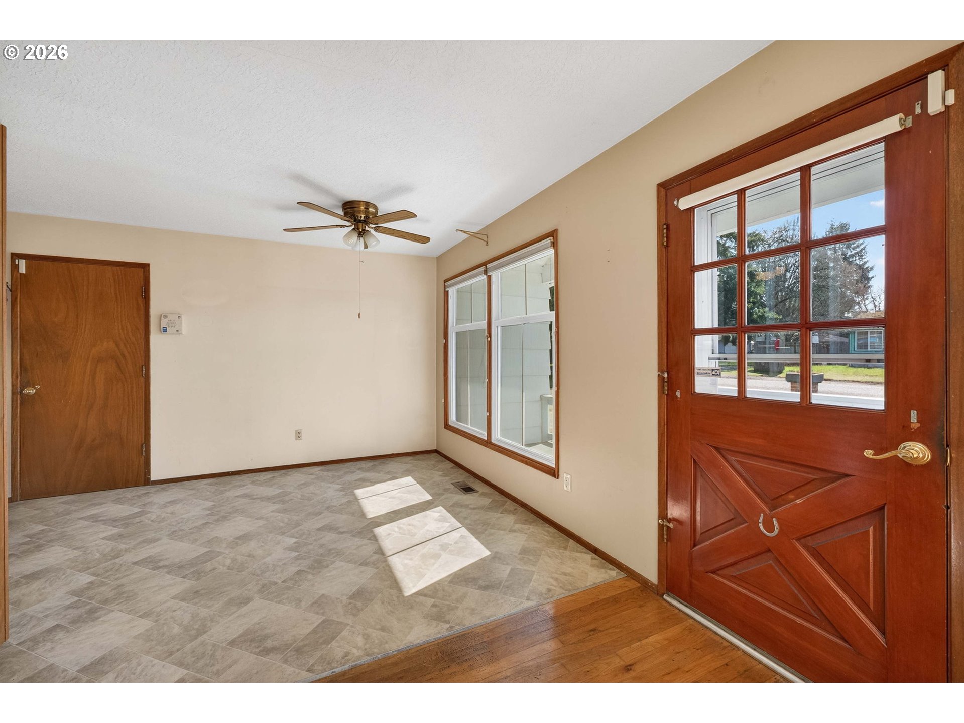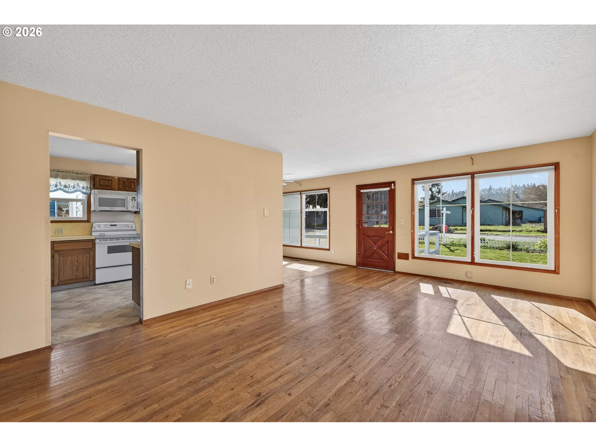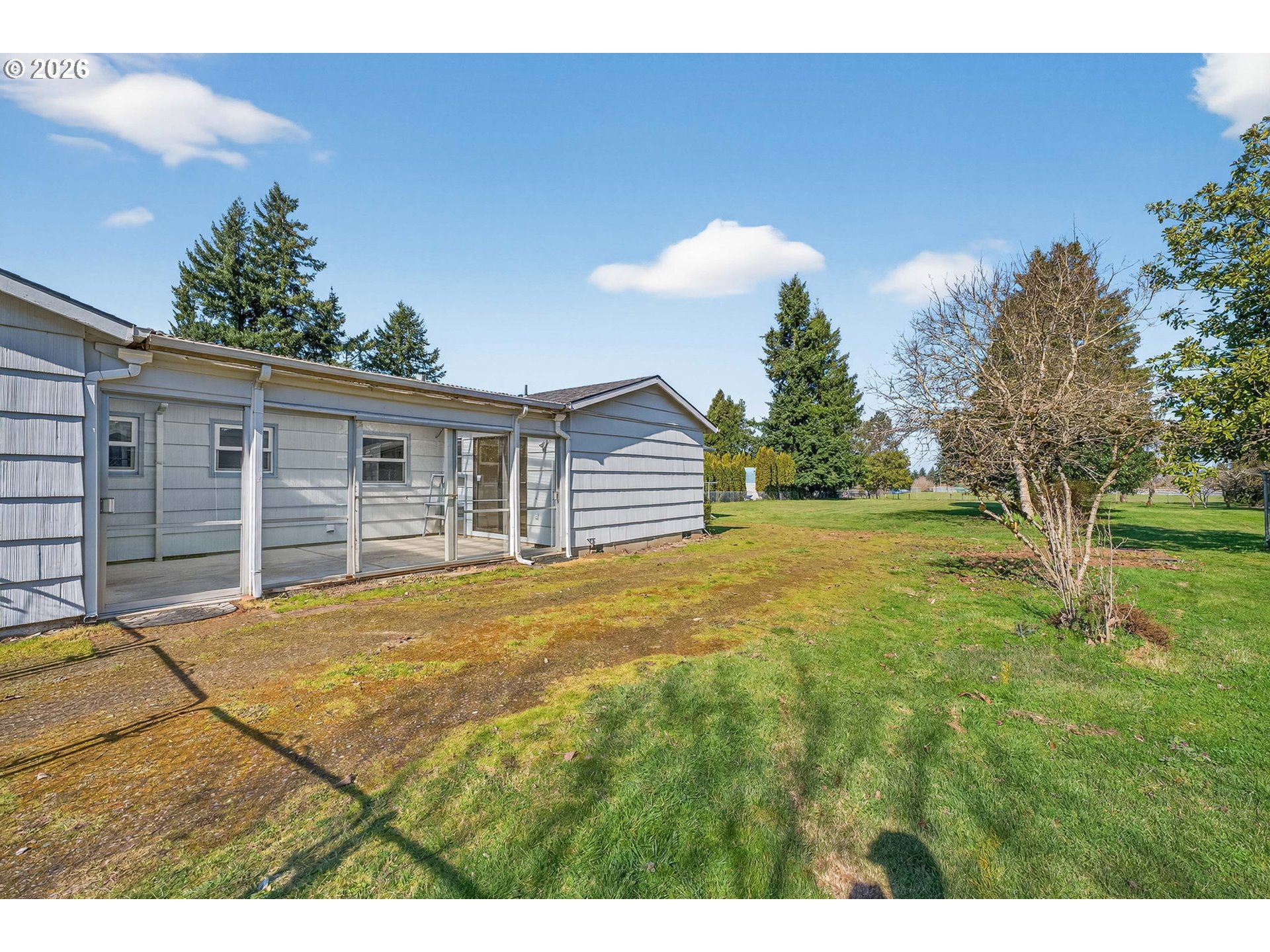 Same owner since 1976! This home sits on a quiet street and has had excellent care! Pride of ownership shows! Situated on a .50 acre lot with a huge 205' deep x 70' wide backyard that backs up to Centennial High School's softball field. Many upgrades in this home. Kitchen cabinets have been replaced with lots of pantry pull outs and details. Large primary bath remodeled with a 5' X 3' roll-in shower. Home is set up for easy wheelchair access and use by its current owner. 4th bedroom has been converted to laundry room, but could be changed back. Complete roof tear off and replacement in 2021. New high-efficiency furnace and A/C in 2024. Enjoy a relaxing indoor/outdoor retreat in the completely enclosed sun porch, measuring 20 X 13. Attached workshop in rear of home is 24 X 23 inside measure and has garage door with opener, outside entrance door, many windows, lots of built-in shelving, work benches, and a pull down ladder up to lighted attic storage. Whole house has extensive hardwoods and laminate floors. Close to shopping, restaurants, schools, and Lynchwood Park. Unobstructed Mt. St. Helen’s views! Lot for sale next door (.47 acres) $199,900 RMLS# 284933270. [Home Energy Score = 6. HES Report at https://rpt.greenbuildingregistry.com/hes/OR10242809]