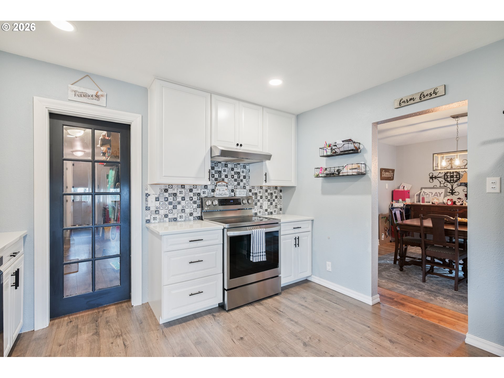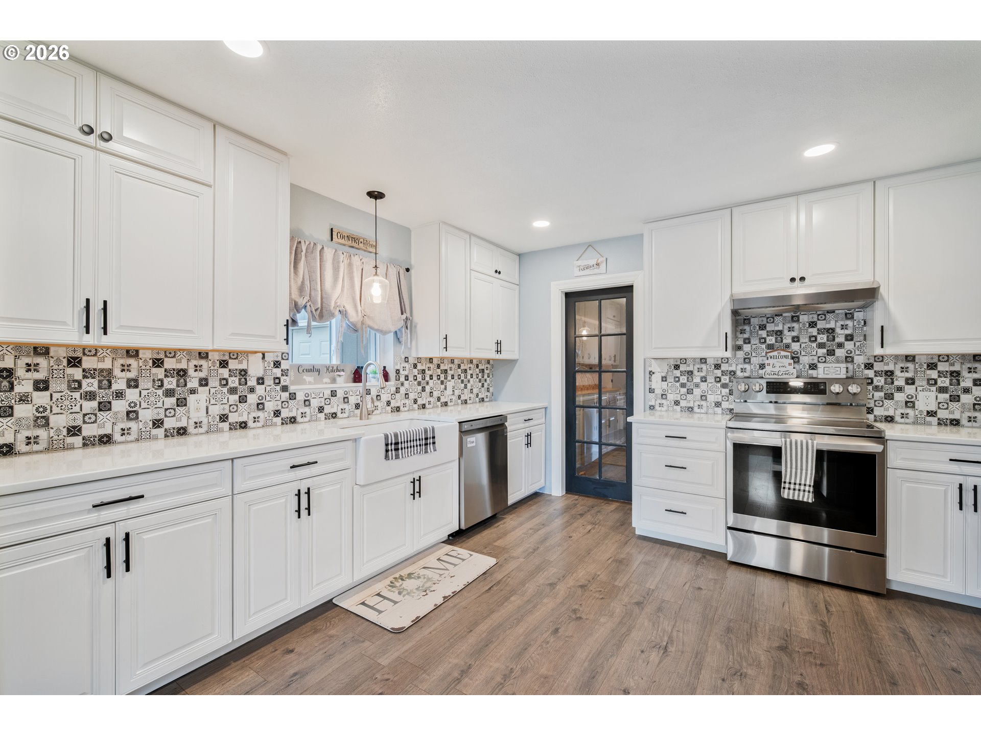 Rare opportunity to own a beautifully upgraded 2,800+ sq ft home on nearly an acre in town with stunning city views. This expansive home has been extensively renovated with a NEW roof with solar panels, updated windows, fresh interior and exterior paint, new flooring, electrical, and plumbing, offering modern comfort and peace of mind. The home features a completely remodeled kitchen with new stainless-steel appliances and a HUGE walk-in pantry, flowing seamlessly into spacious living areas perfect for entertaining. Retreat to the oversized primary suite with walk-in closet, creating a comfortable private sanctuary. Stay cozy with a charming woodstove and enjoy year-round efficiency with new ductless heat pumps. The property offers exceptional versatility with an oversized attached 2-car garage, detached shop, and large outbuilding ideal for a home office, studio, or hobby space. An attached 1 bed / 1 bath ADU with kitchen and private entrance through the garage provides outstanding flexibility for multi-generational living, guests, or rental income. Set behind a gated entry and fully fenced for privacy, the grounds feature fruit trees and expansive outdoor space—all while being conveniently located right in town. A rare combination of space, upgrades, versatility, and views.