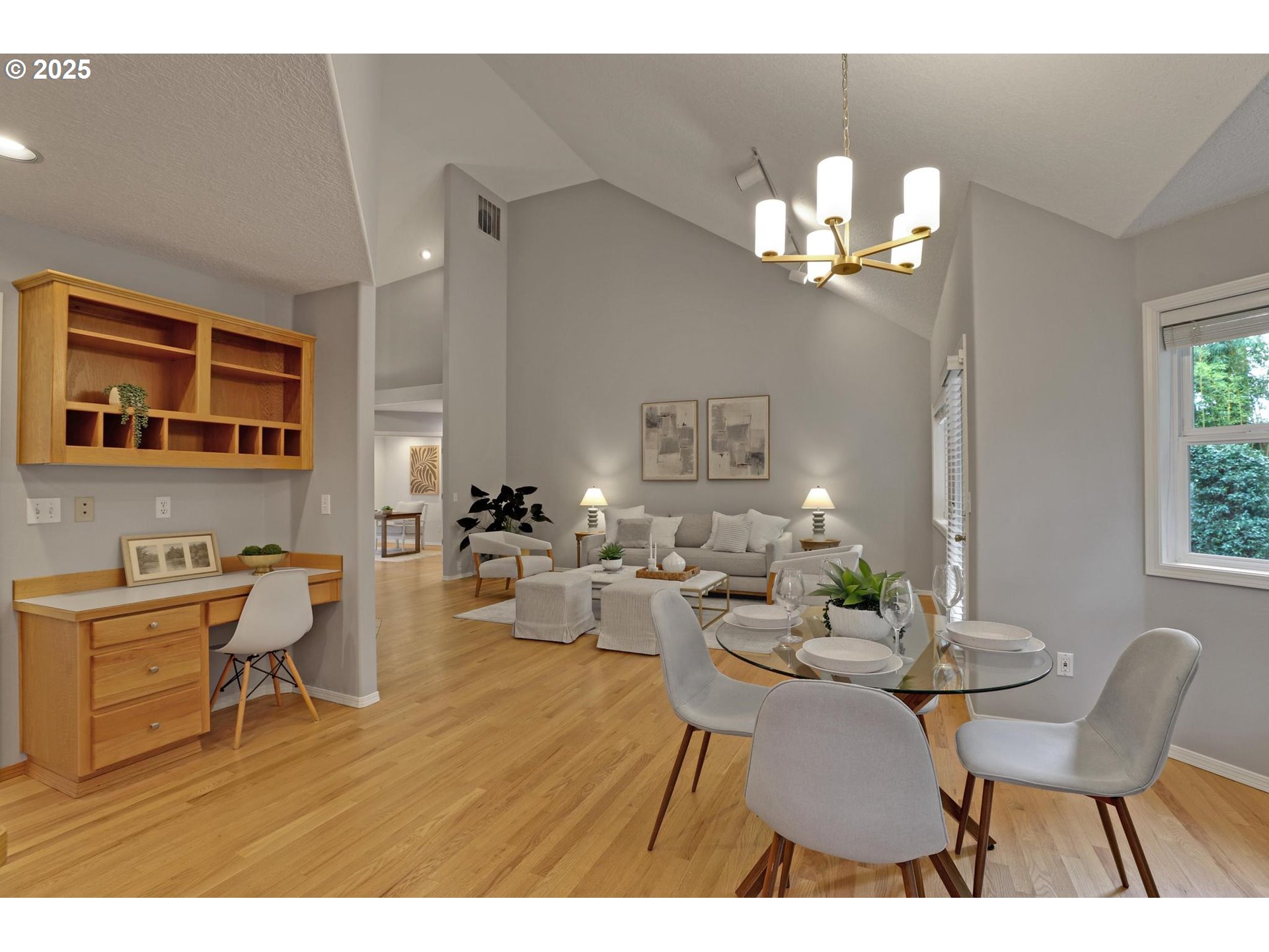 Sought-after one-level home in desirable Trenton Woods on gorgeous 0.30 acre lot with 2,243 Sq.Ft. of living space. Great room floor plan features vaulted ceilings and pristine hardwoods throughout. Living Room with gas fireplace and bay windows. Spacious Kitchen opens to the Great Room, complete w/ soaring vaulted ceilings and cozy wood-burning fireplace. The Primary Suite retreat offers double door entry, vaulted ceilings, slider to backyard and large walk-in closet. Outside, enjoy lush lawns, meandering flagstone pathways, an expansive patio and raised garden beds. NEW Roof, Furnace & Water Heater installed 2018, NEW AC installed 2022. Oversized, extra-deep 3-Car Garage. Ideally situated to Cedar Hills Crossing shopping & dining, Nike / Intel. Convenient neighborhood pathway leads to THPRD complex w/ tennis, aquatics & more. Incredible!