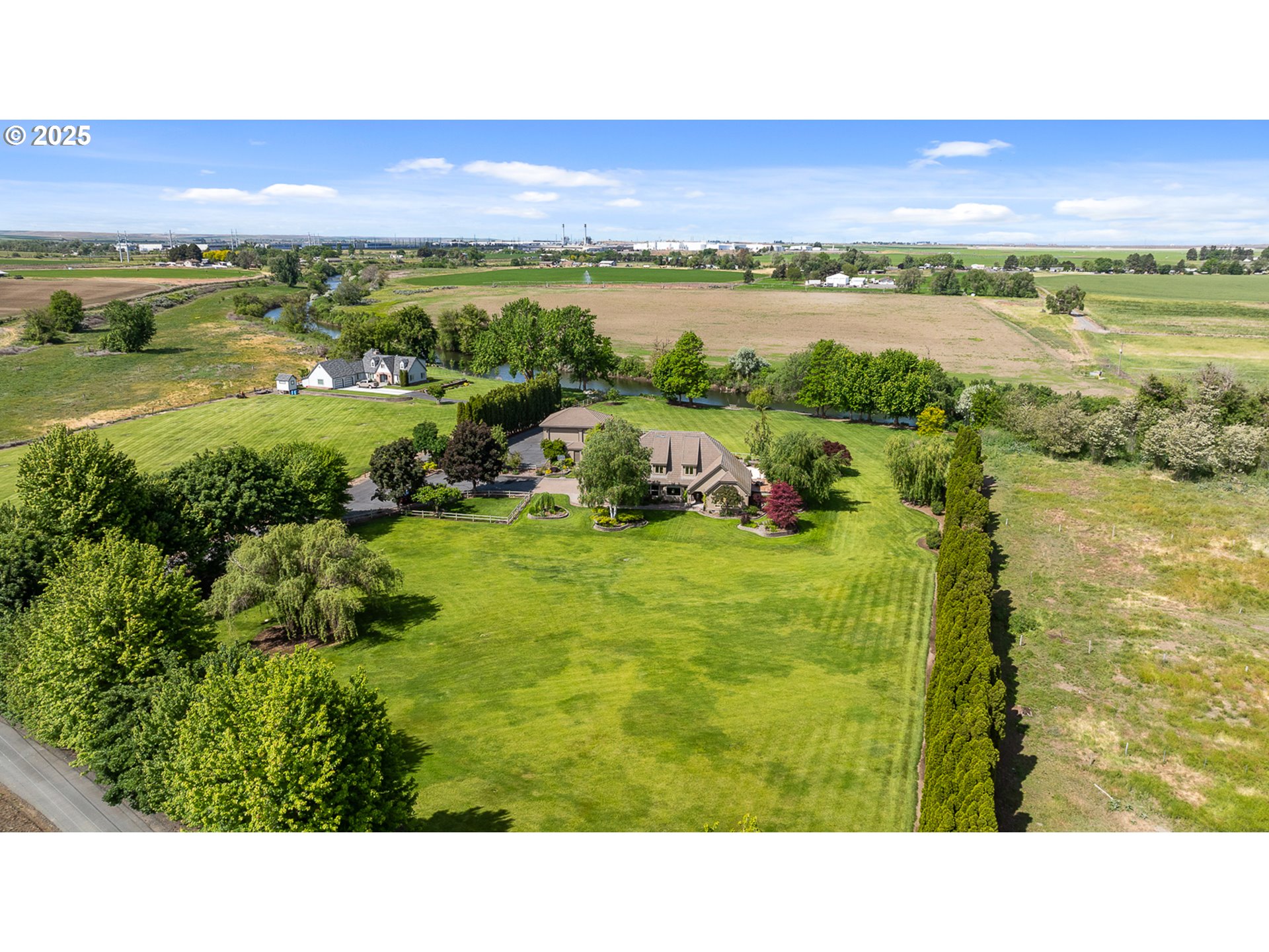 Escape to a refined haven of luxury and serenity on over four acres of pristine landscape tucked quietly within the natural beauty of Hermiston. This extraordinary 3-bedroom, 2.5-bath estate offers more than 3,200 square feet of impeccably crafted interiors, seamlessly blending thoughtful design with enduring quality.From the moment you step inside, the spacious floor plan invites comfort and elegance. The chef’s kitchen is a culinary dream, outfitted with granite countertops, premium appliances, double convection ovens, and generous workspace, making it equally suited for weeknight dinners or five-course feasts. Adjoining living spaces showcase exquisite attention to detail, including custom finishes and natural light pouring through expansive windows.An indulgent primary bedroom offers a quiet respite, complete with a spa-inspired bathroom featuring a soaking tub, double vanity, and walk-in tile shower. Formerly a fourth bedroom and bonus area, part of the home has been expertly transformed into a private wellness retreat—ideal for fitness pursuits—with its own full kitchenette and tasteful tile bar.For outdoor enthusiasts, private river access invites tranquil mornings with a fishing pole or peaceful afternoons by the water’s edge. A detached shop with vehicle storage ensures room for projects, toys, or hobbies. Descend into the finished basement and discover dedicated wine storage ready to accommodate tastings, anniversaries, or post-dinner debates about who finished the last bottle. Outside, the amenities expand. An in-ground saltwater pool offers a crystal-clear summer escape, while the private sauna beckons with promises of deep relaxation. The custom deck is perfect for al fresco dining or stargazing well into the evening. Wrap up the evening of entertainment by the fire pit. This home has many luxurious accommodations, as well as giving you the opportunity to come home to a relaxing country setting.