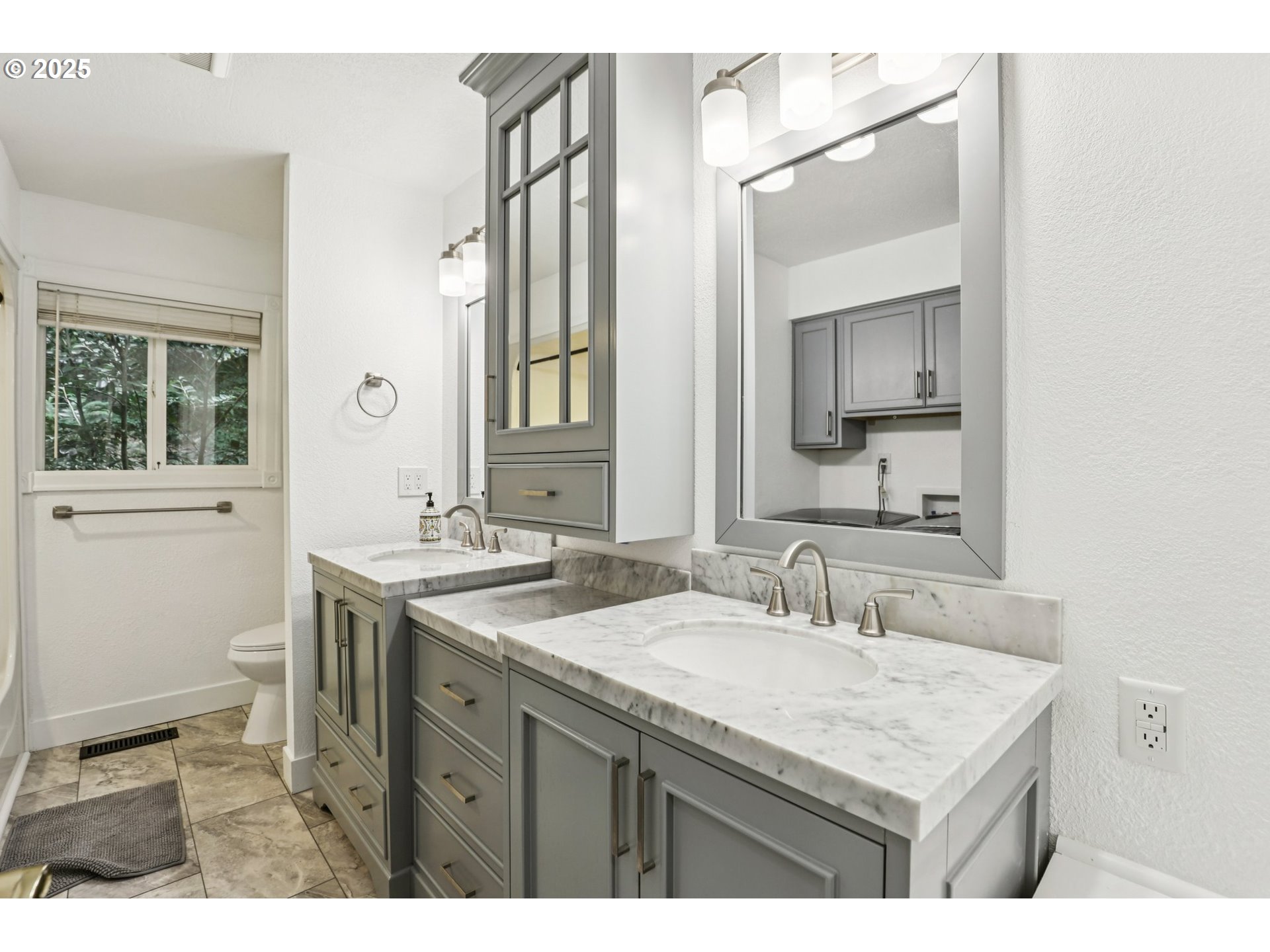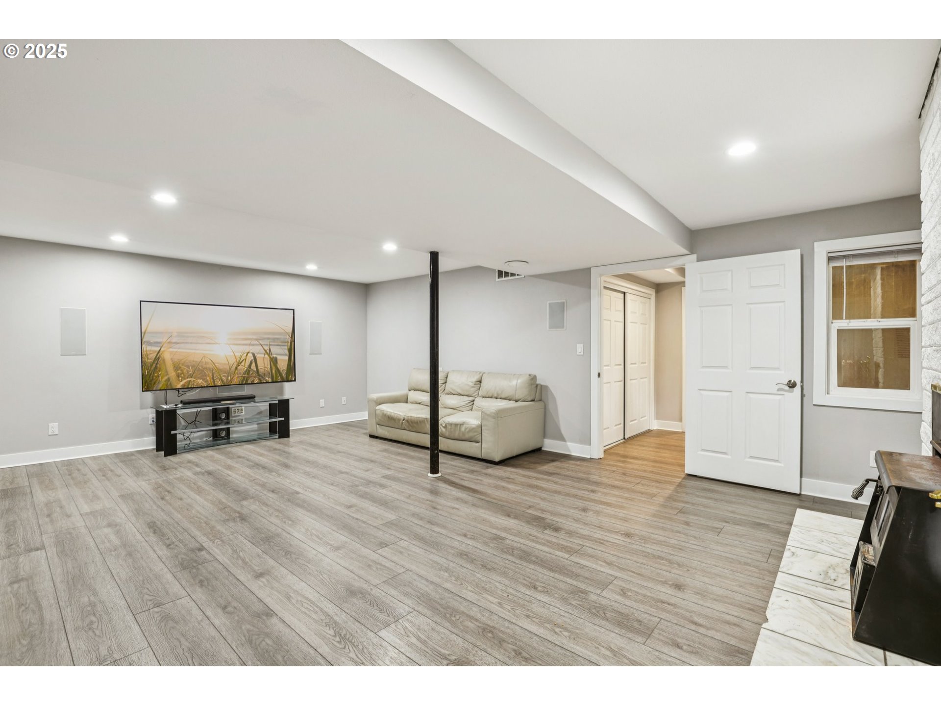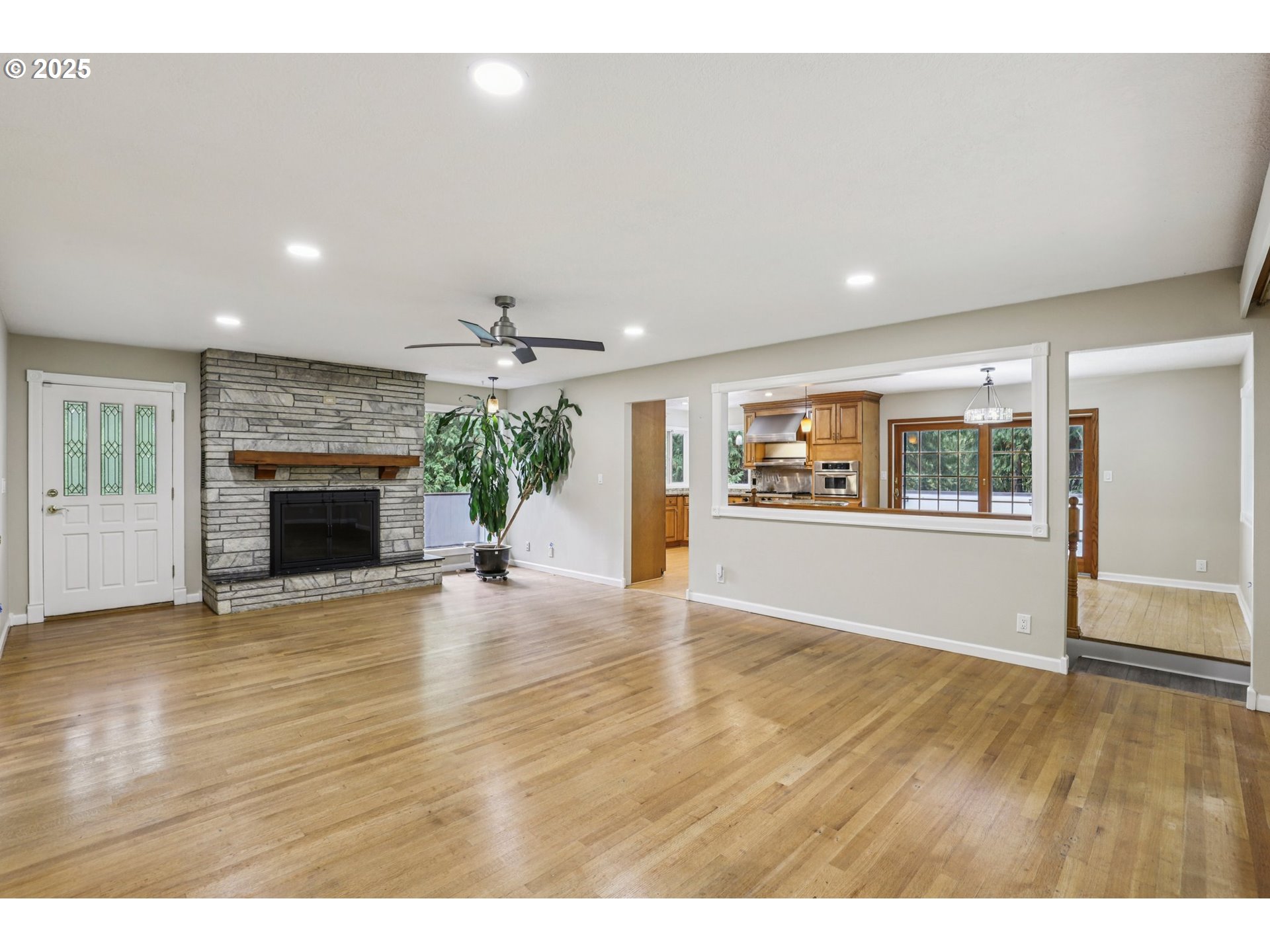 Offer in hand. Deadline is Wed. 10/29 @ 12 pm. Stunning modern retreat surrounded by nature and peaceful privacy. This beautifully maintained, move-in ready home backs to eight acres of forest with a pond and waterfall, offering a rare blend of tranquility and convenience. Inside, the spacious open layout invites both comfort and entertaining. The living room features a large fireplace, gleaming hardwood floors, and recessed lighting, flowing effortlessly into the gorgeous kitchen with a 6-burner professional gas Viking stove and hood, granite counters, and island. The adjacent dining area opens onto the patio—perfect for gatherings and outdoor dining.The primary en suite bedroom offers direct access to a private forest-view deck, creating a serene space to relax. Downstairs, a full ADU with its own entrance includes a second fireplace, kitchen, beautifully tiled bath, and laundry—ideal for extended family, guests, or rental income. The home also features a dedicated theater area with a top-of-the-line 85” 8K HDTV and built-in surround sound, plus high-speed fiber-optic internet for seamless streaming, gaming, and work-from-home connectivity.Outdoor living spaces abound: a large composite deck off the primary suite, a redwood-covered front deck, and a terrace off the kitchen perfect for morning coffee or evening entertaining. The oversized garage offers exceptional storage with a loft and stairs at the rear, while a new 400-amp electrical service provides abundant capacity for future upgrades. Recent updates include a newer gas water heater, upgraded electrical, and thoughtful improvements that reflect pride of ownership.Located in a quiet, well-established neighborhood just 1.2 miles from the MAX Orange Line Park & Ride and half a mile from North Clackamas Park—with the beauty of Kellogg Creek right across the street—this home offers the perfect balance of peace, privacy, and modern convenience.
