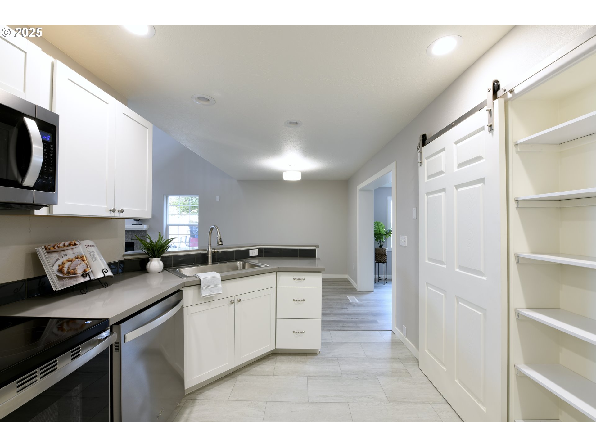 This is a winner! This freshly updated home is located on a convenient, dead-end street. Step inside to a light and bright interior featuring vaulted ceilings and abundant windows. The primary bedroom and laundry room are both conveniently located on the main floor. The functional kitchen boasts a charming barn door to the pantry. Enjoy all new kitchen and bathrooms, flooring, interior paint, and updated light & plumbing fixtures. Additional features include covered RV parking, spacious backyard, an attached workshop and a separate storage shed. The garage also offers attic storage with a pull-down step ladder. This home offers the convenience of being just a short distance from the elementary school, local shops and restaurants.